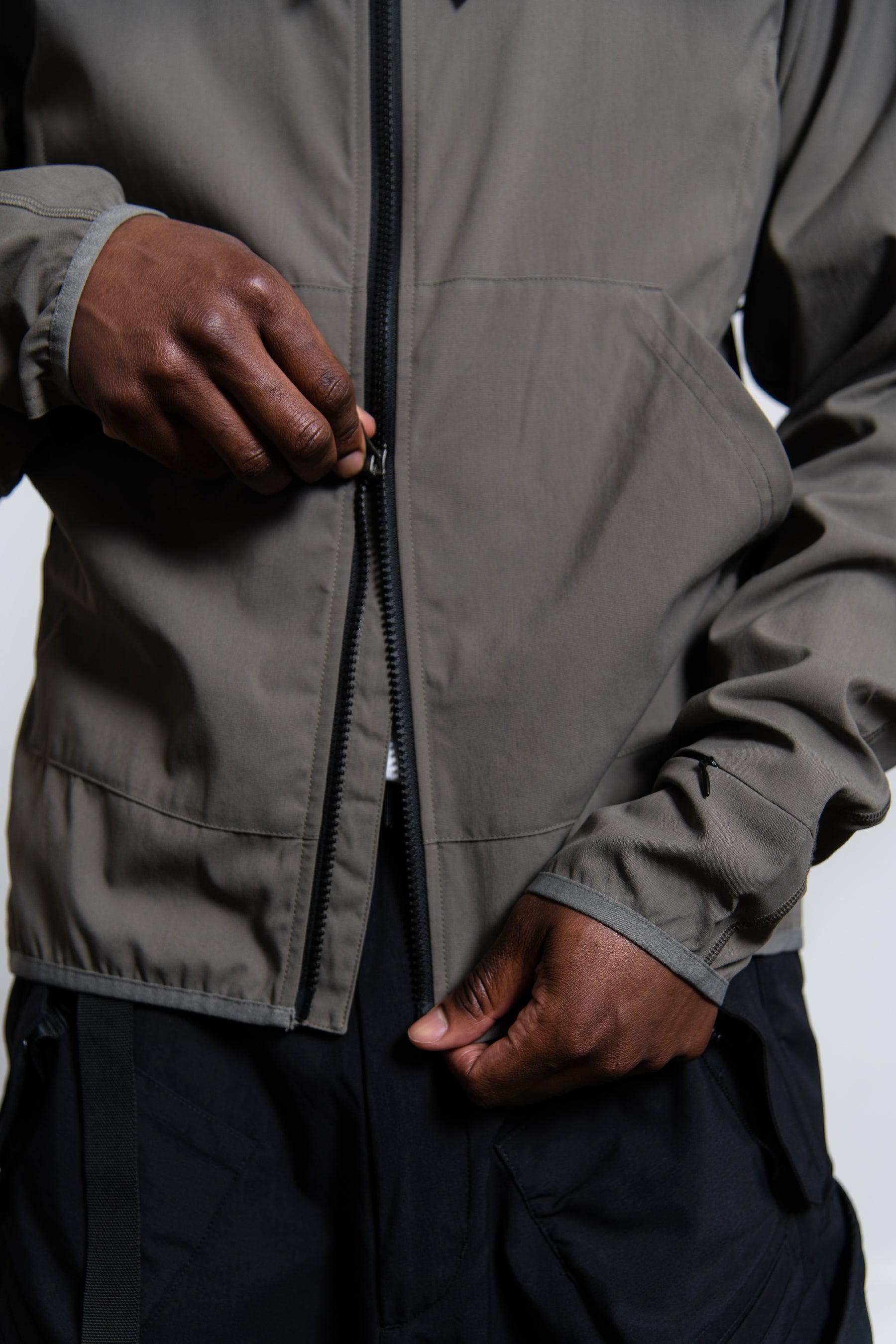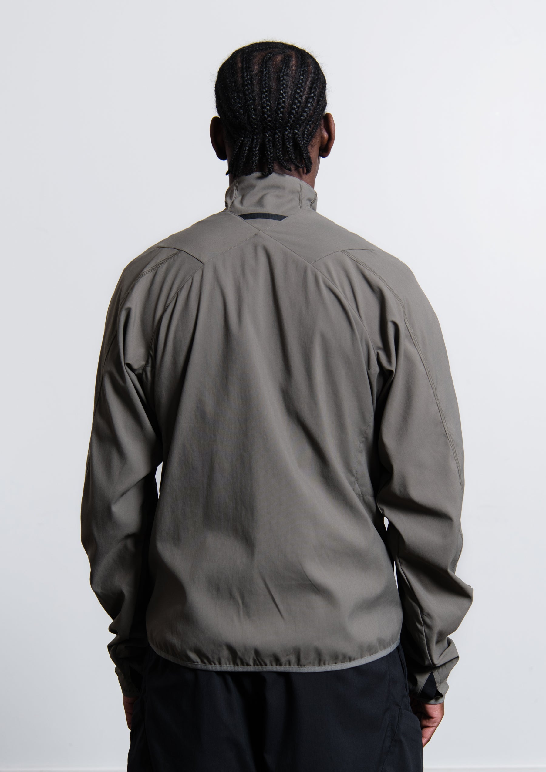 - Long sleeve lightweight, water repellent, ergonomic jacket in Grey
