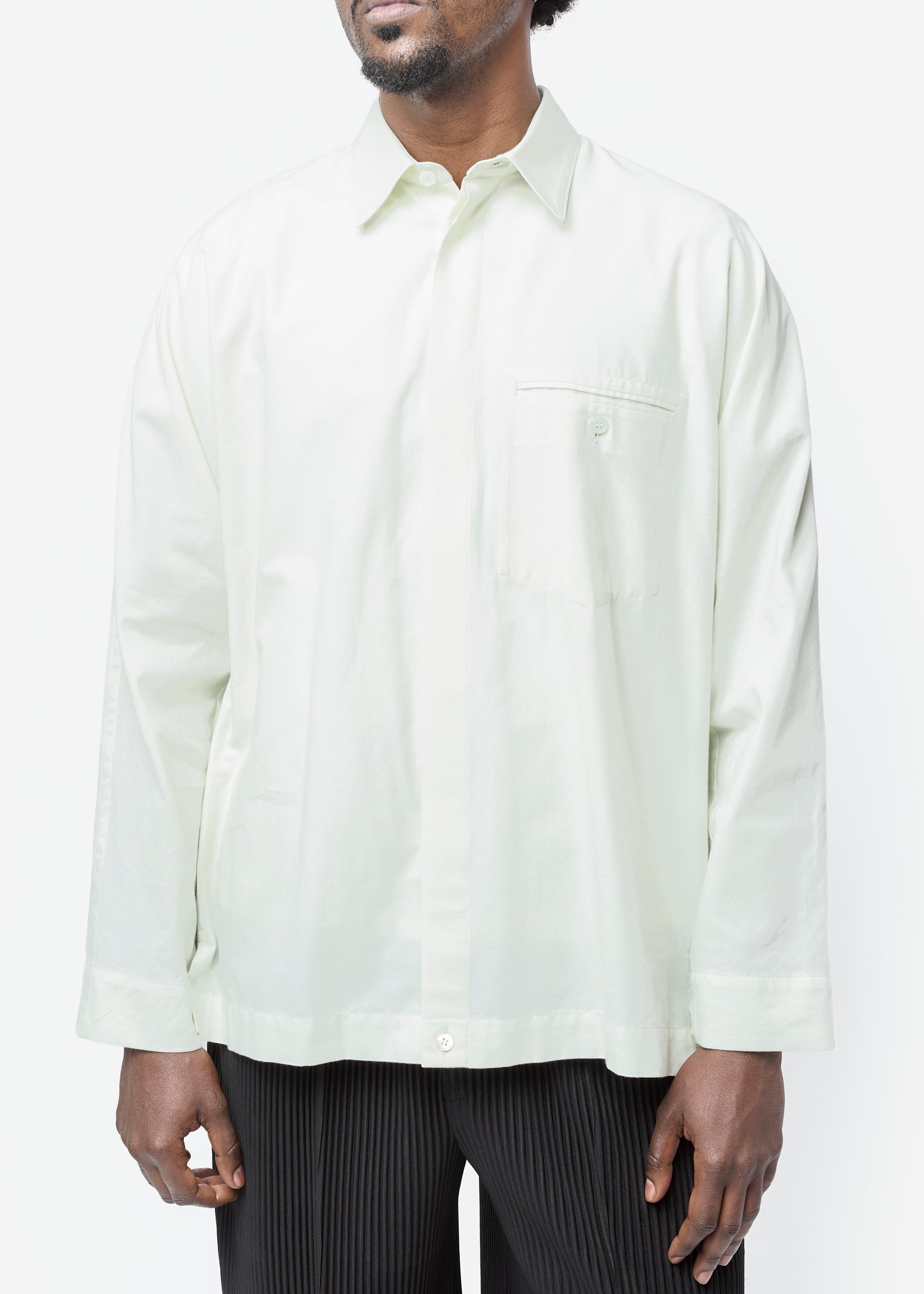 Panelled Flap Long Sleeve Button-Up Shirt White PO-B024