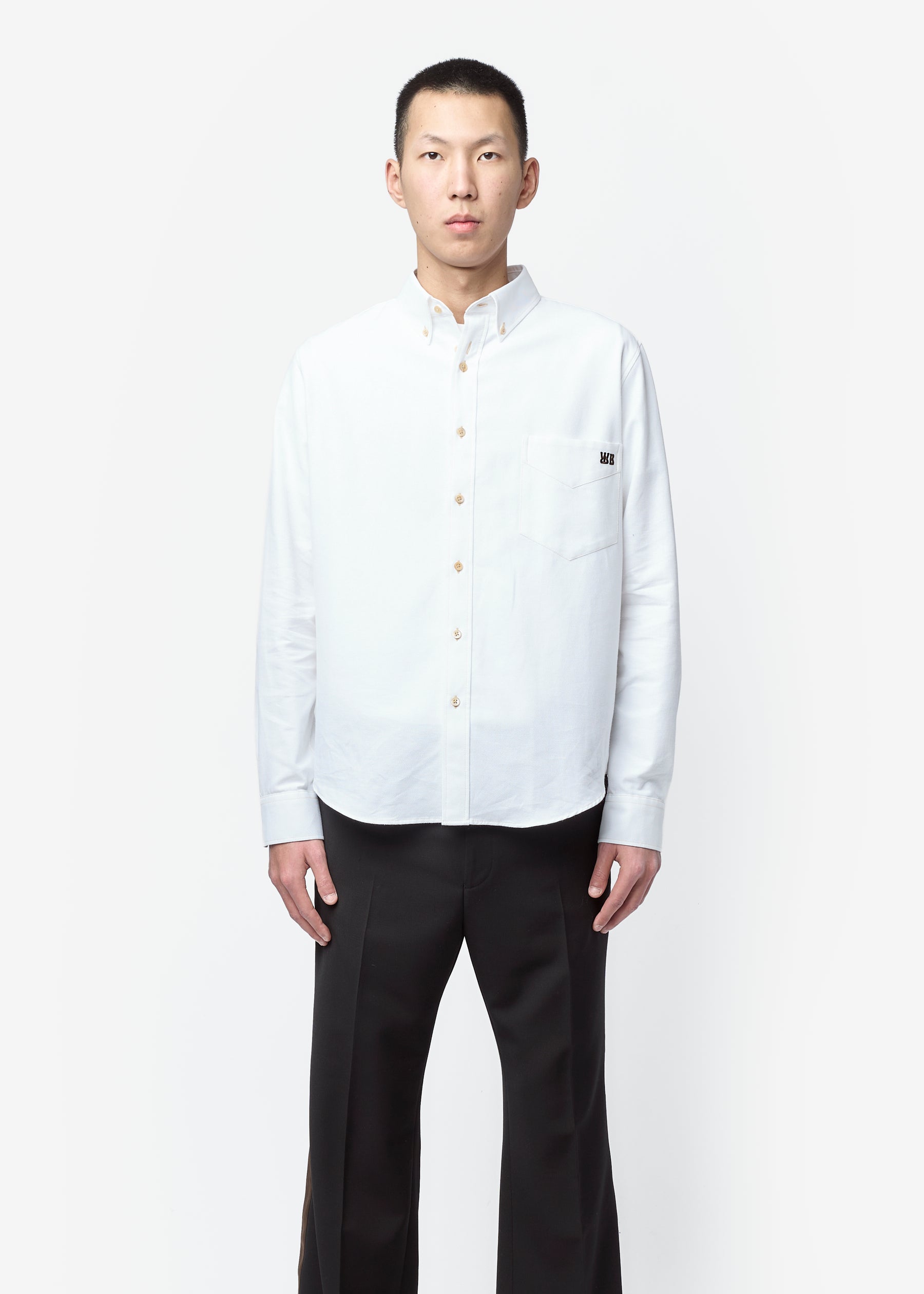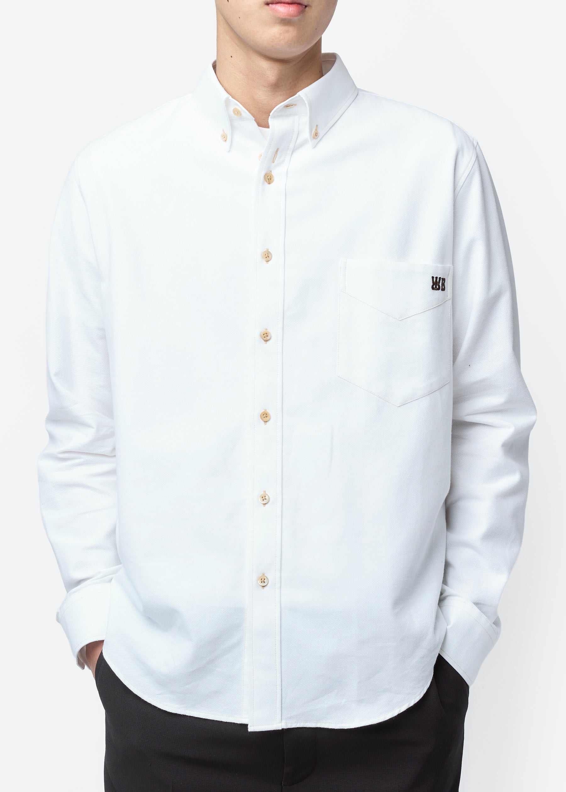 Cotton Pique Isaac Oxford Shirt White MS26SH09-CO03-001