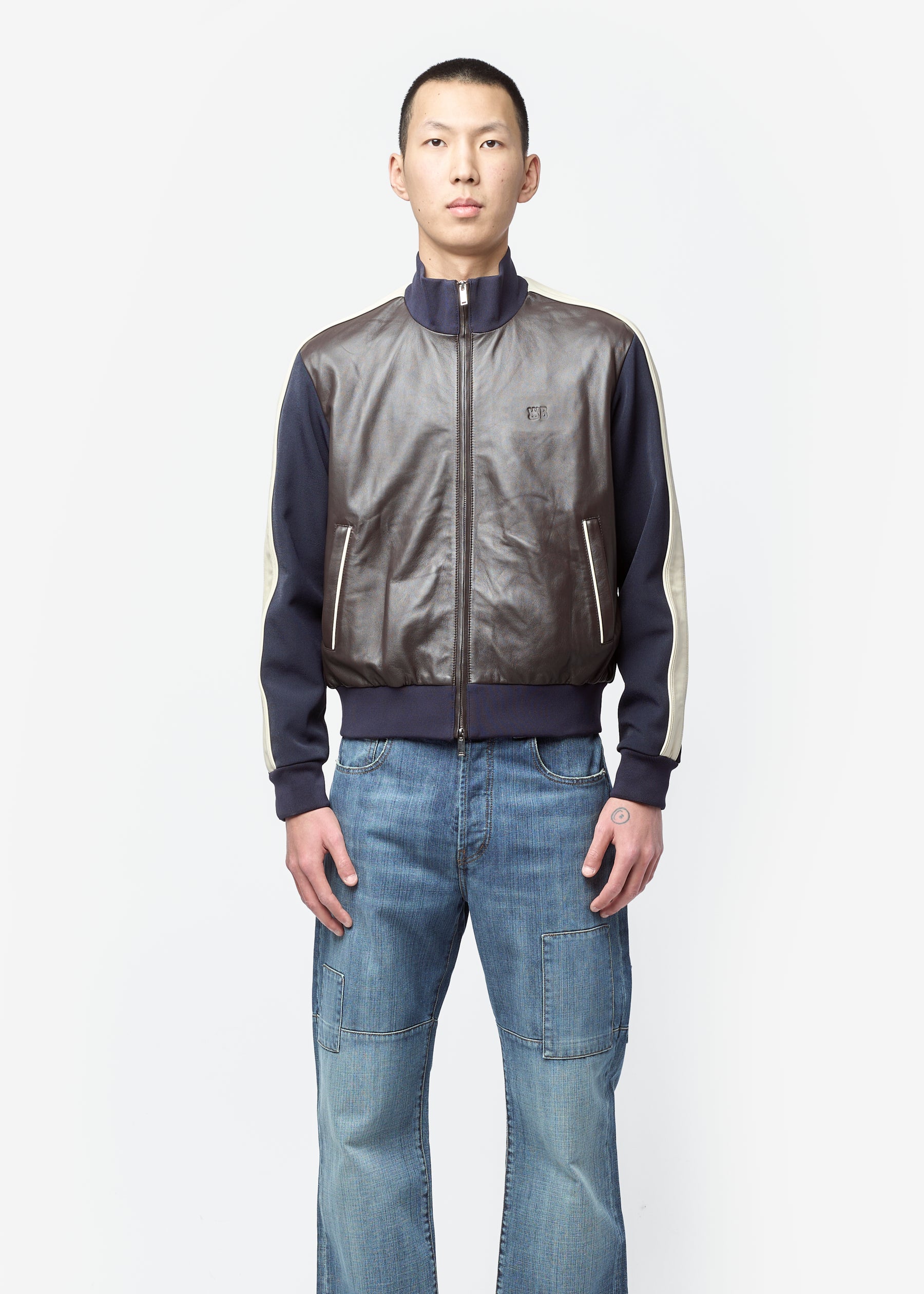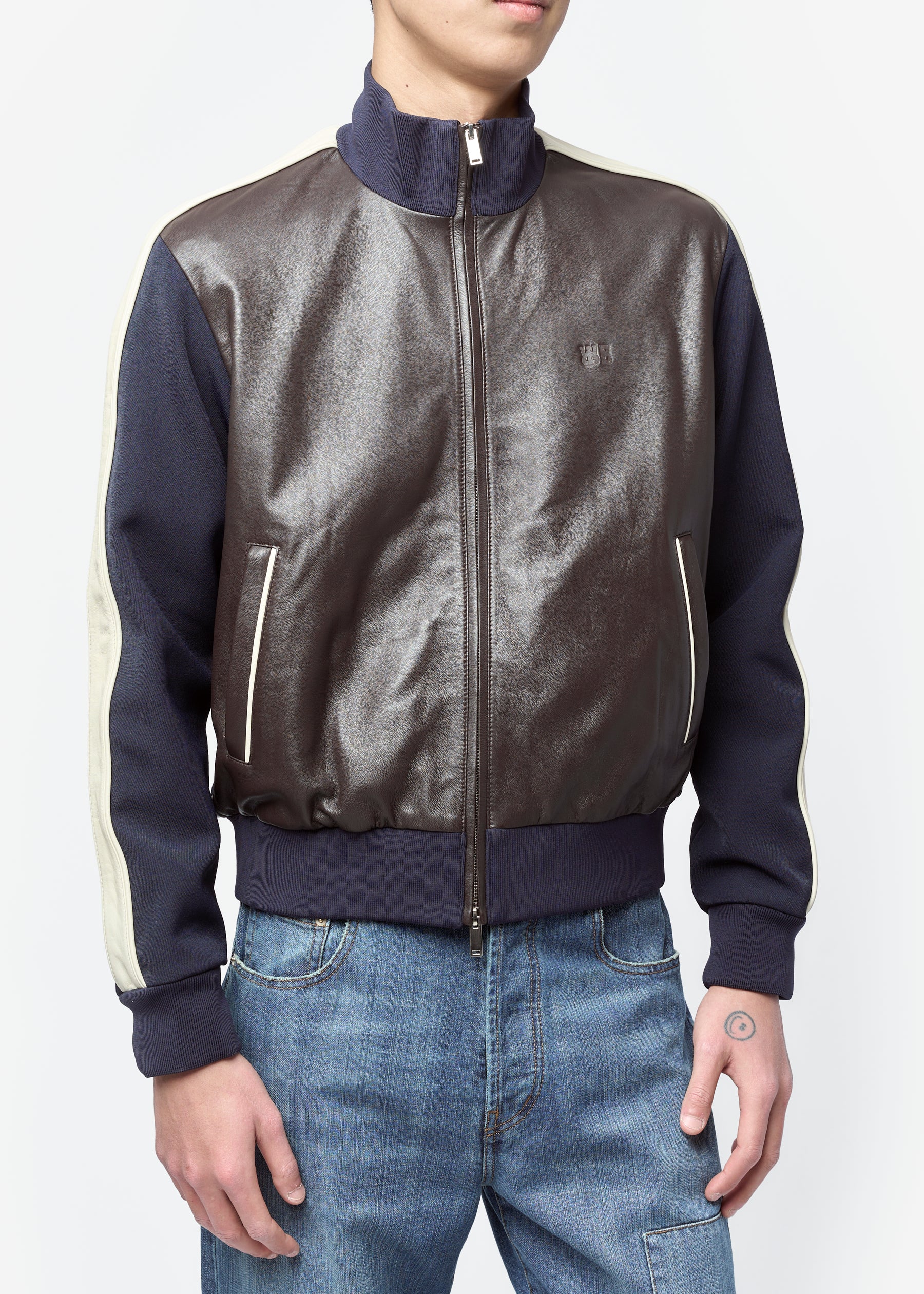 Path Leather Jacket Navy/Dark Brown/Ivory US26LE03-LE02-589
