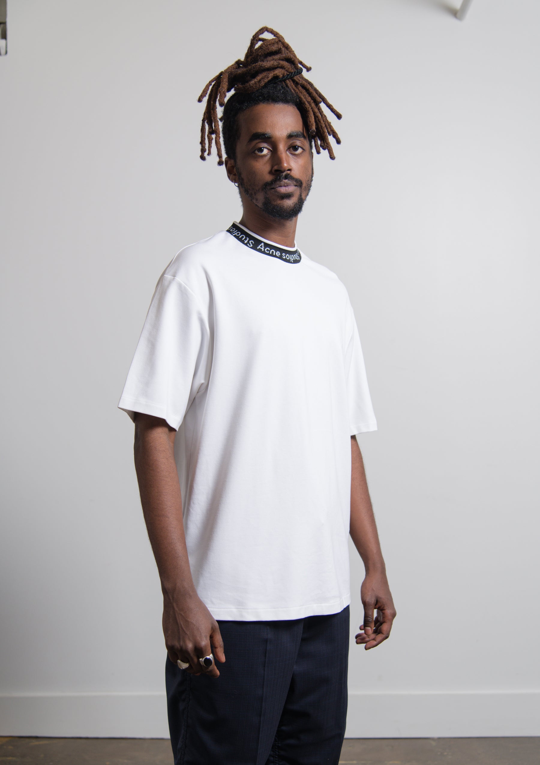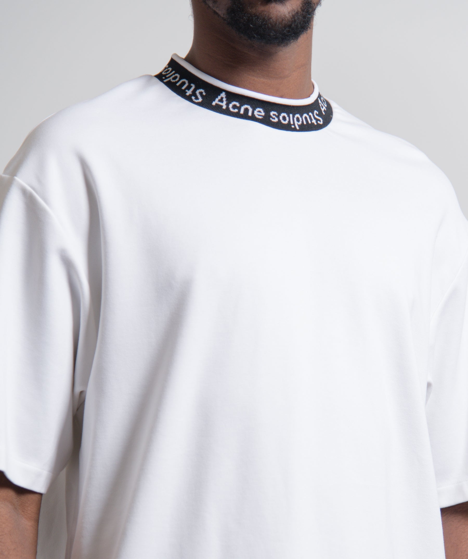 - Ribbed mock neck collar with woven Acne Studios logo-intarsia