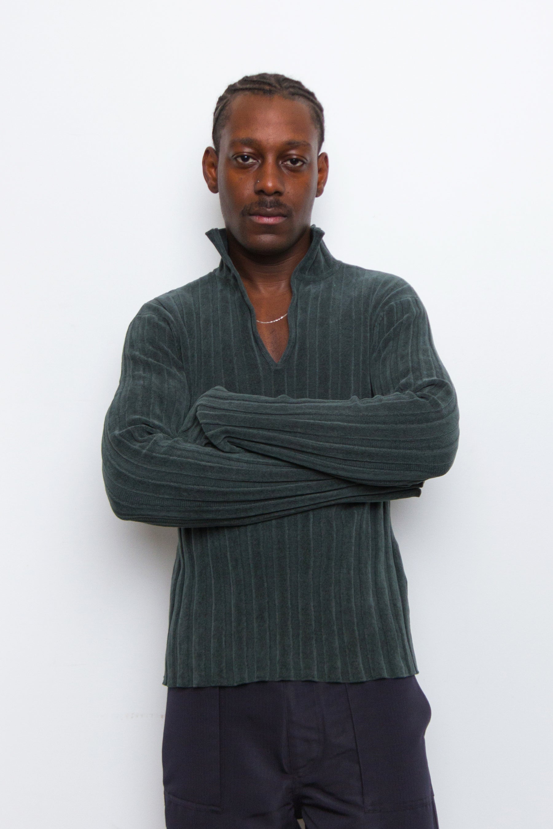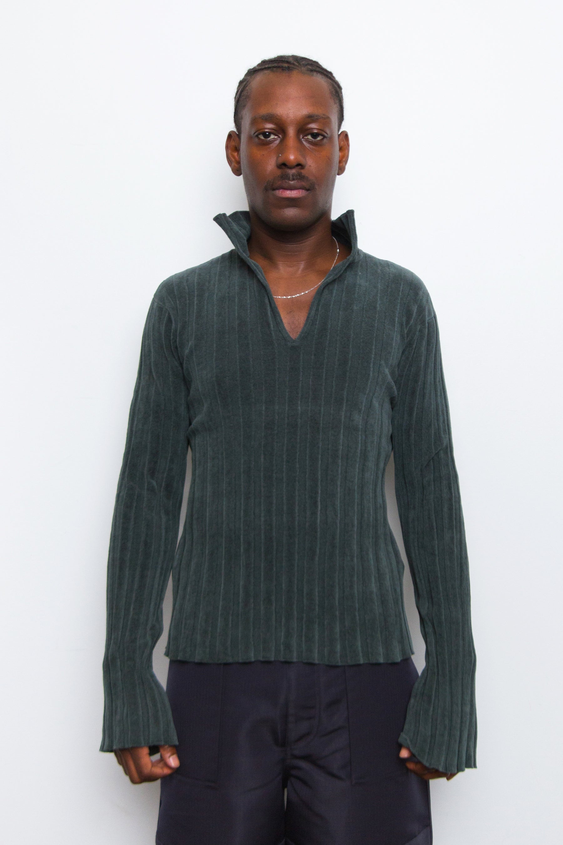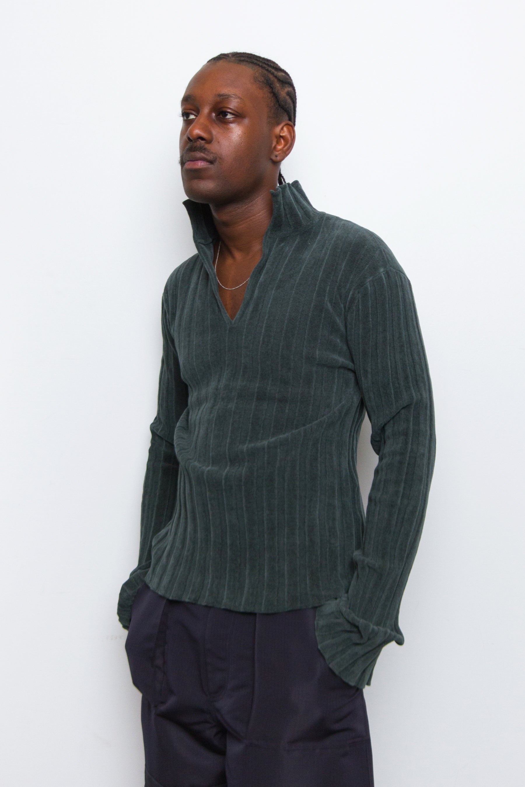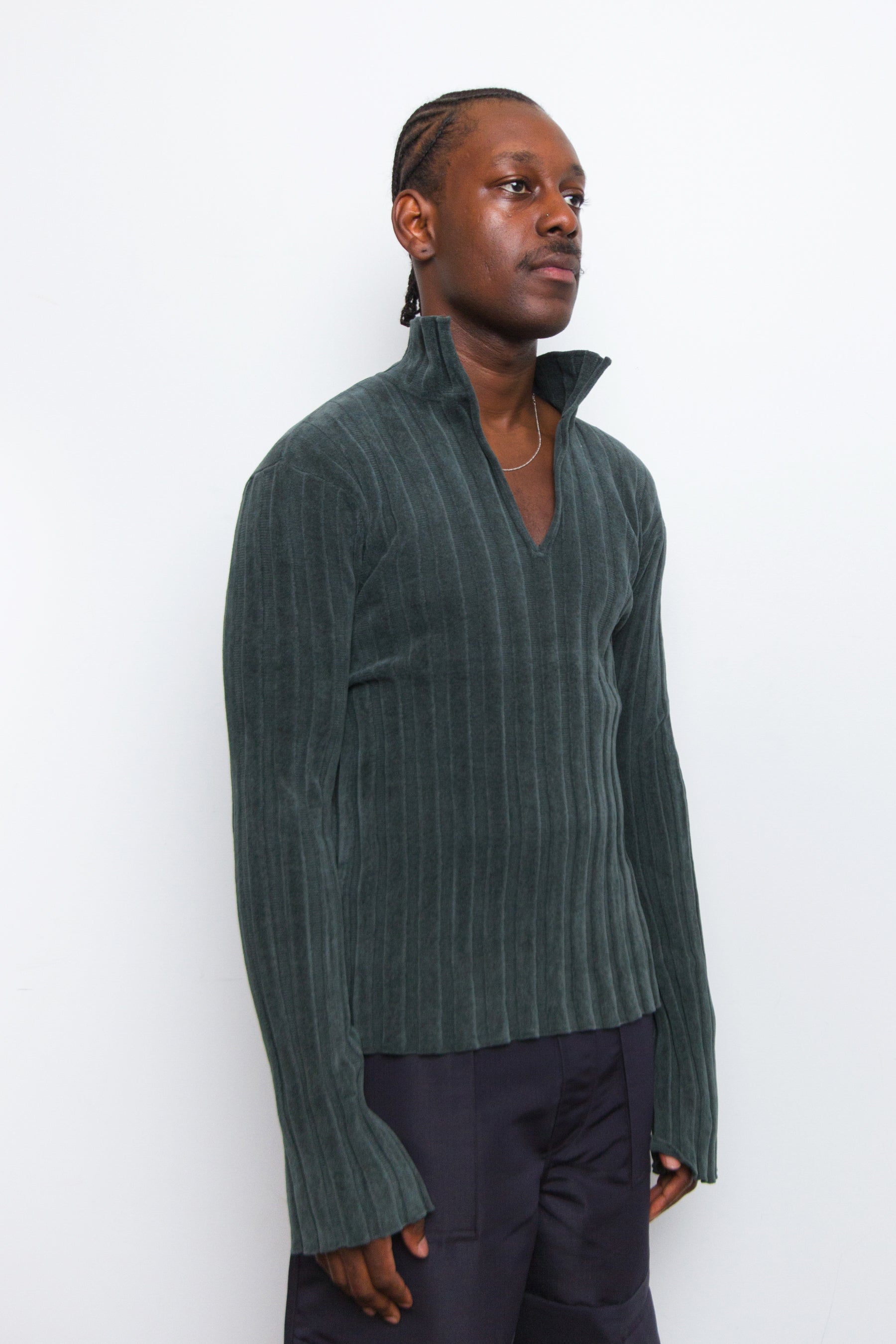 Ribbed Velour Sweater Emerald Green KNIT000338