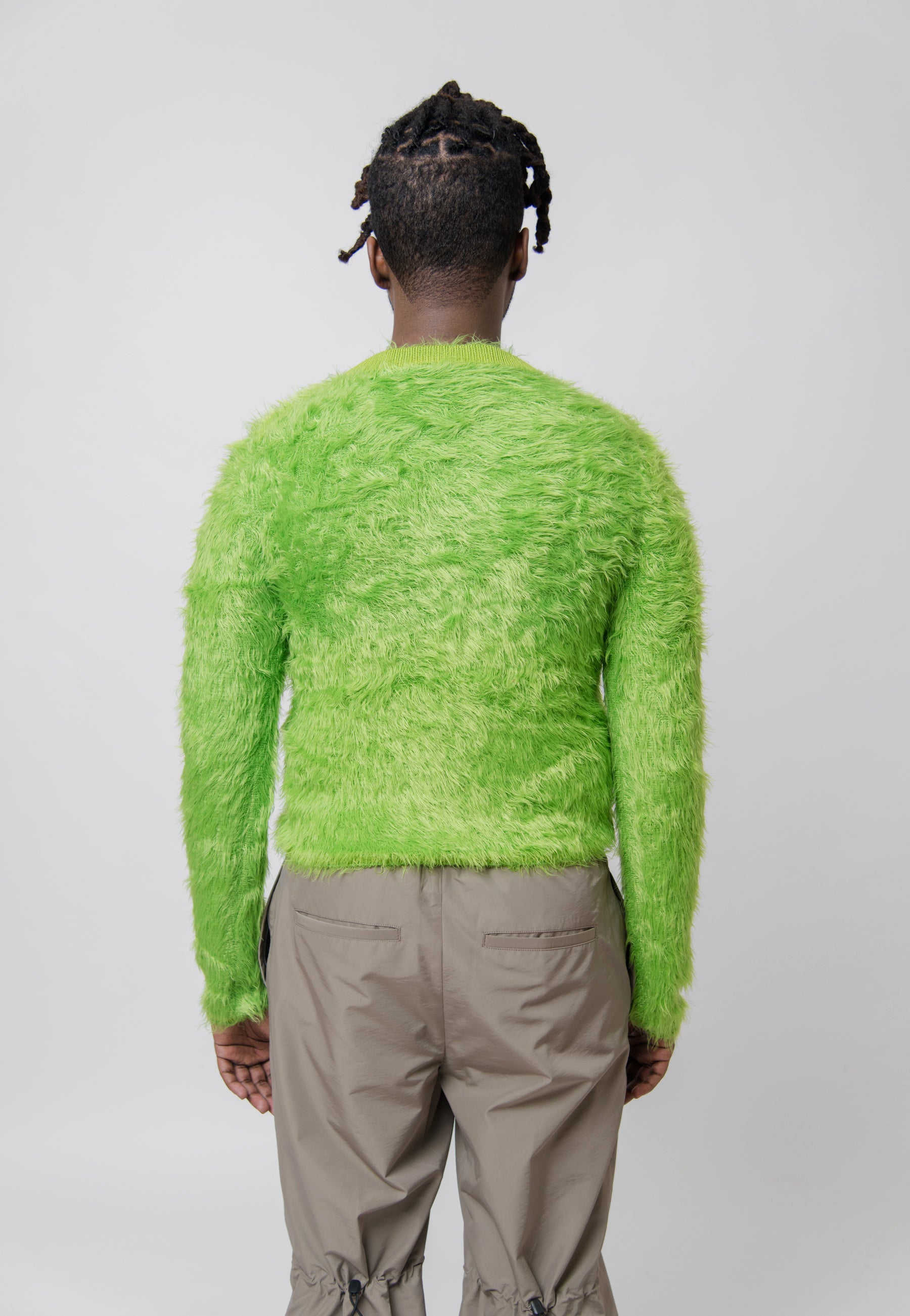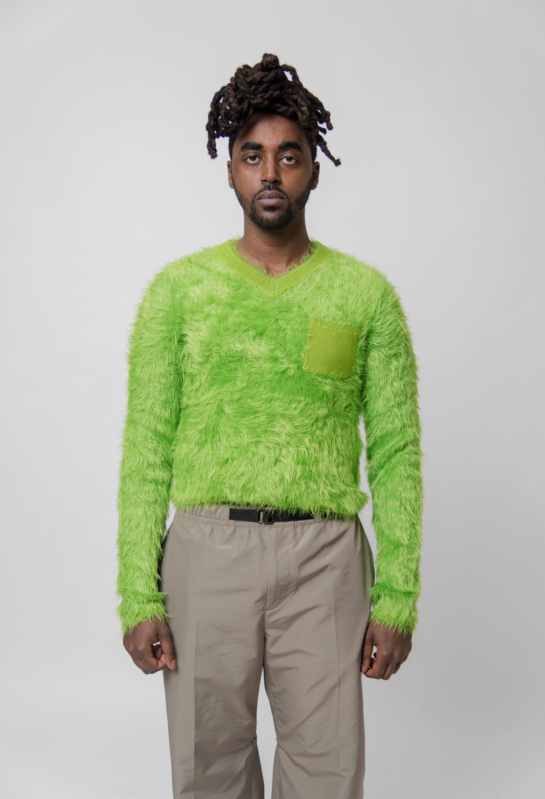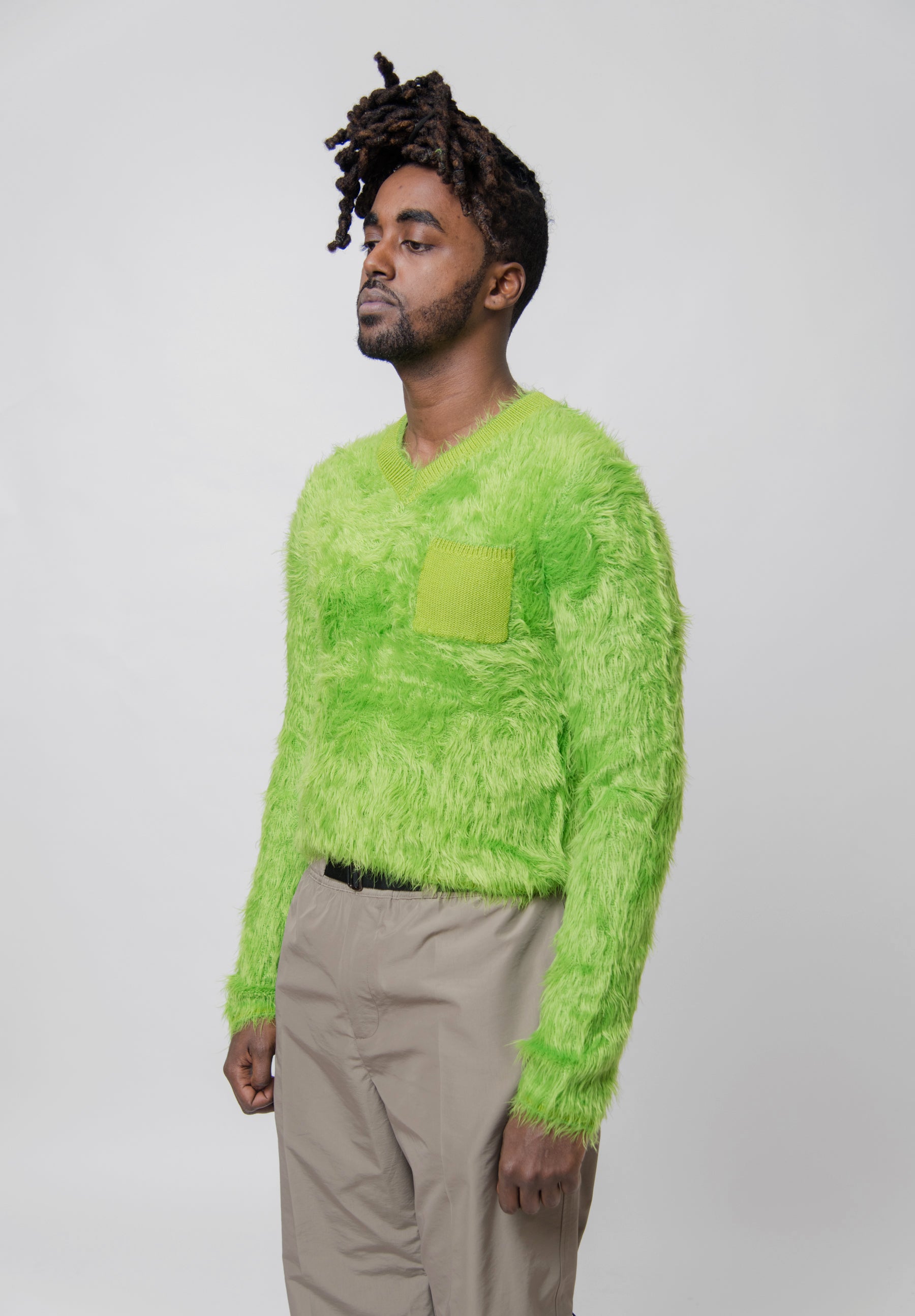 Fluffy V-Neck Sweater Apple Green KNIT000376