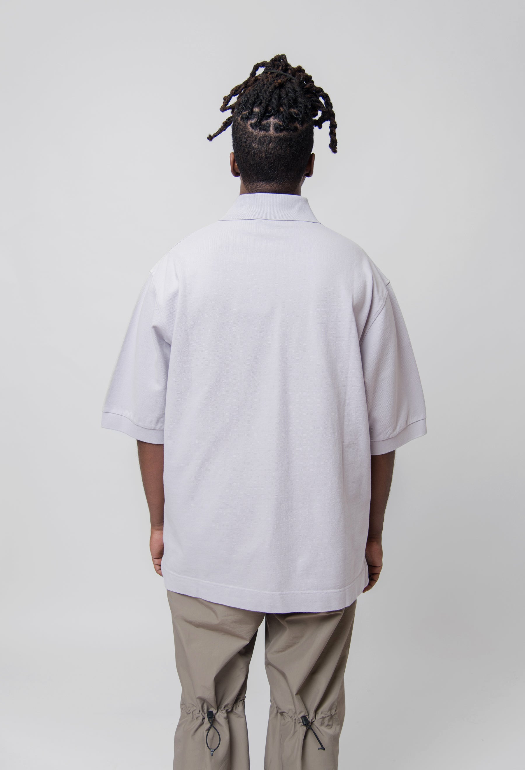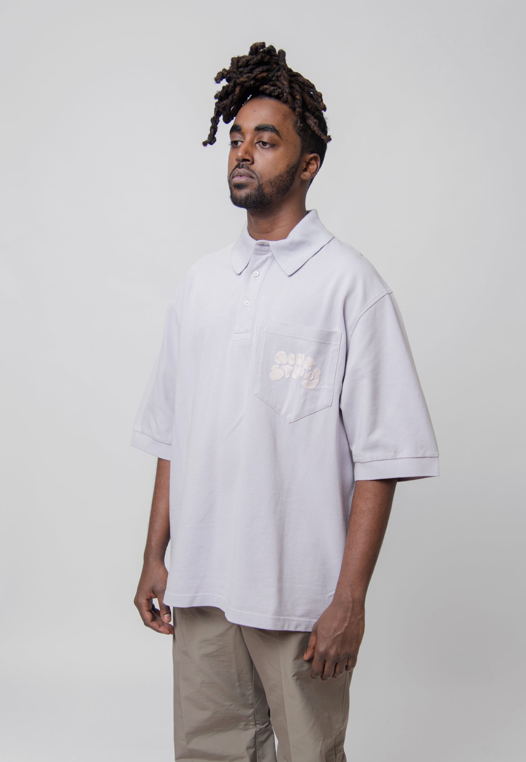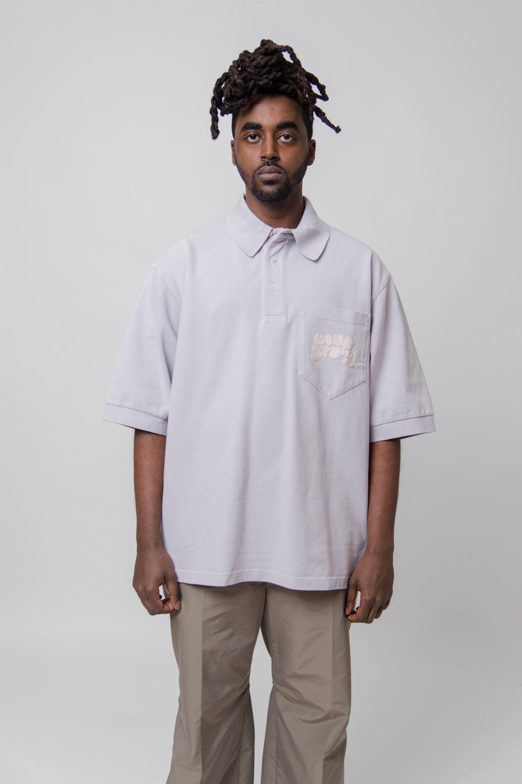 The Acne Studios pale lilac polo t-shirt is crafted from midweight cotton, detailed with an Acne Studios chain stitch logo embroidery on the chest pocket and cut to a relaxed fit.