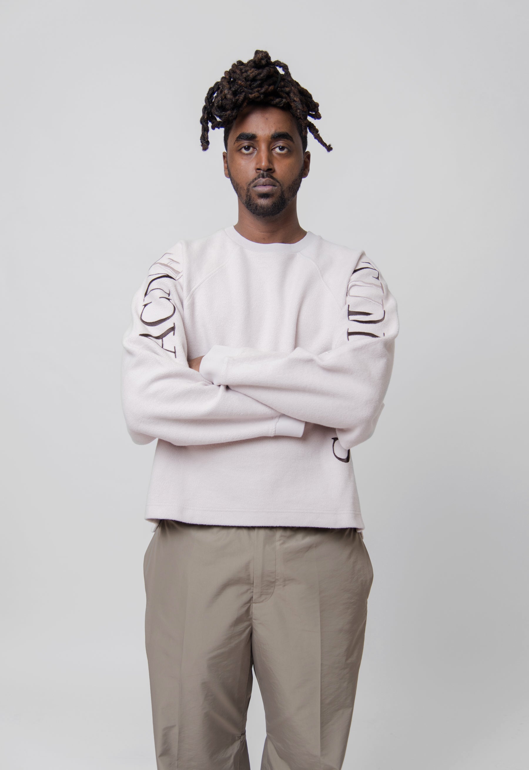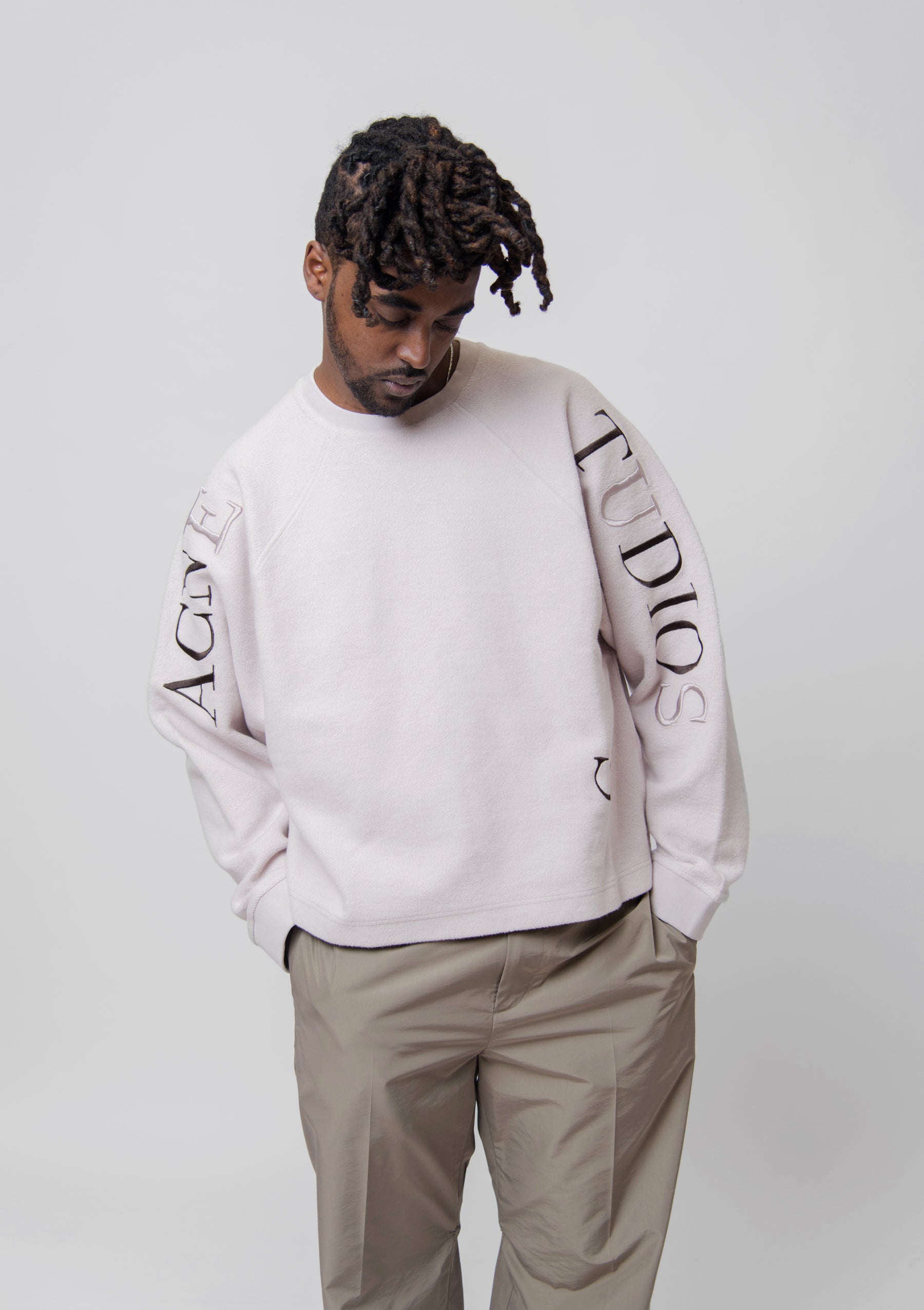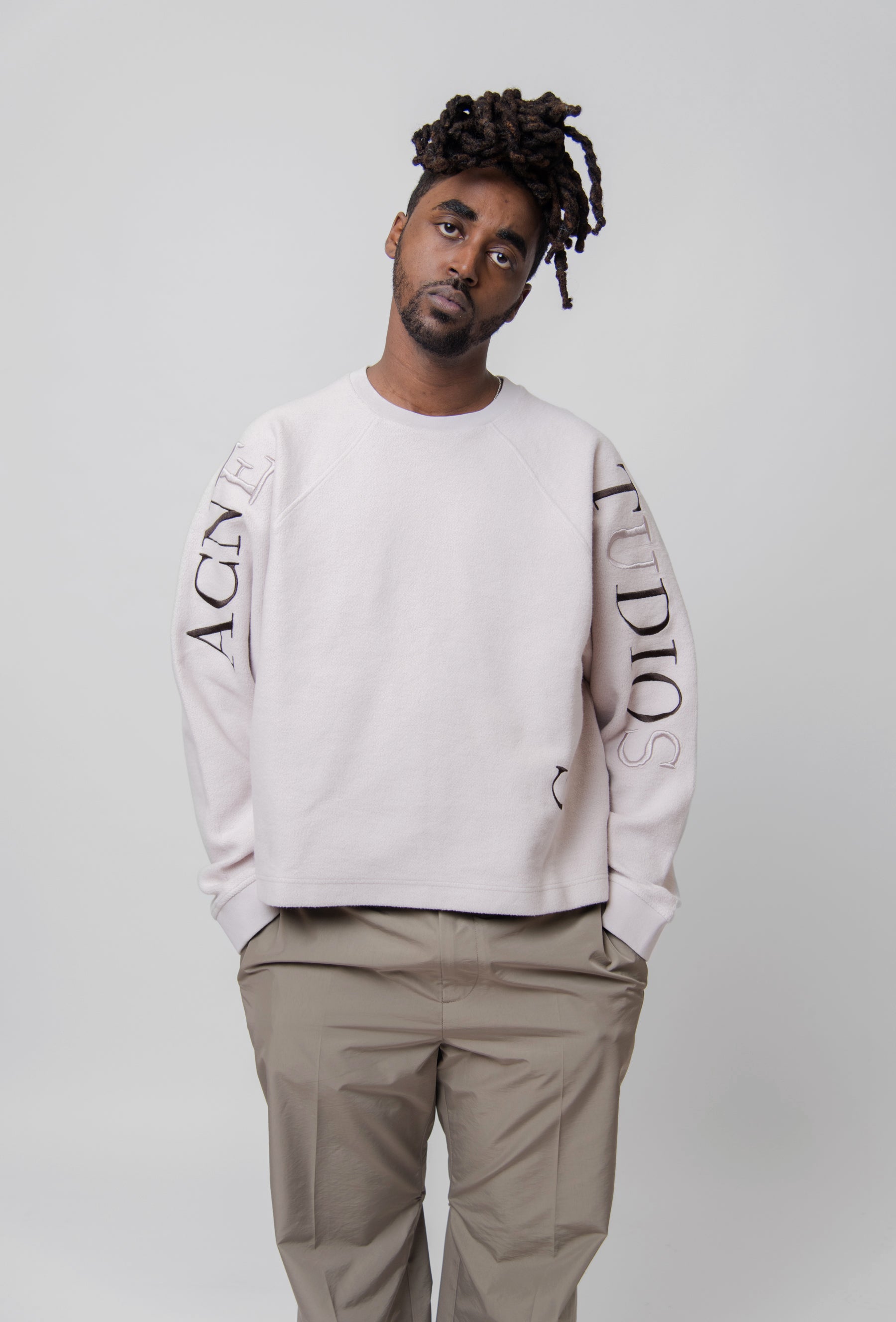 Acne Studios pale lilac sweatshirt features an embroidered Acne Studios logo with wavy typography, crafted from brushed fleece cotton. Cut to a relaxed fit and a regular length.
