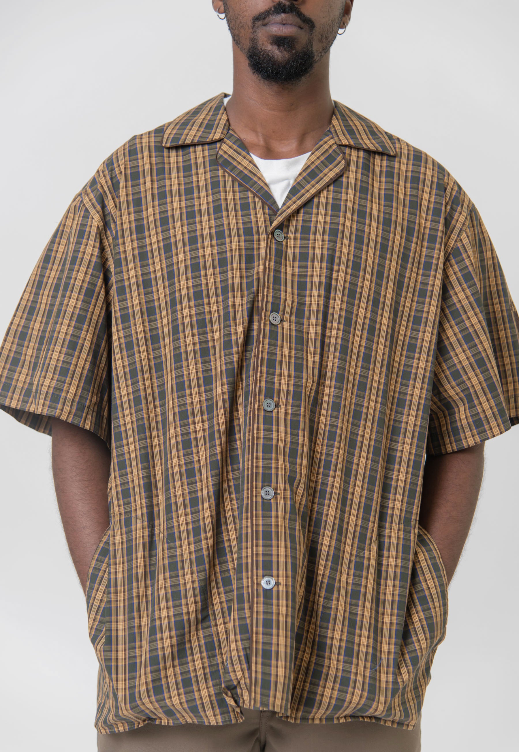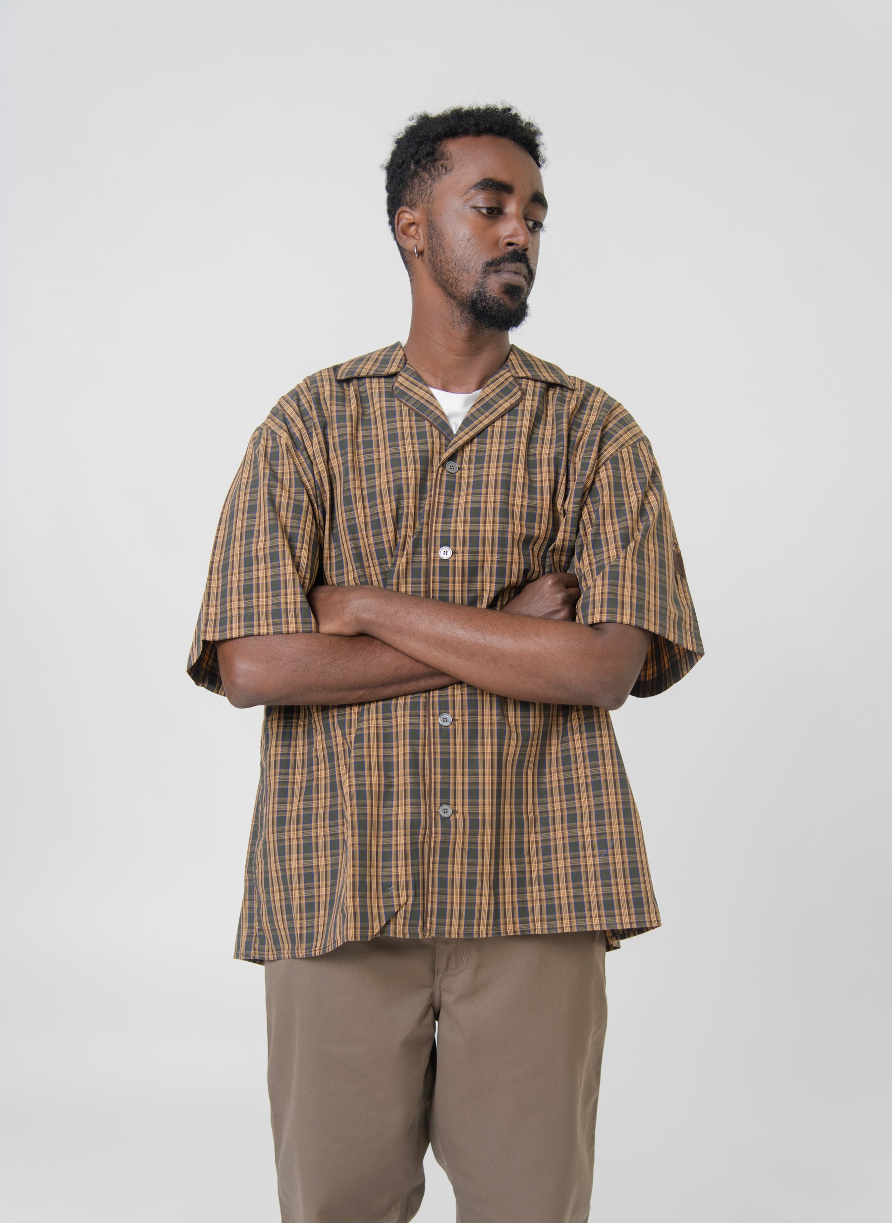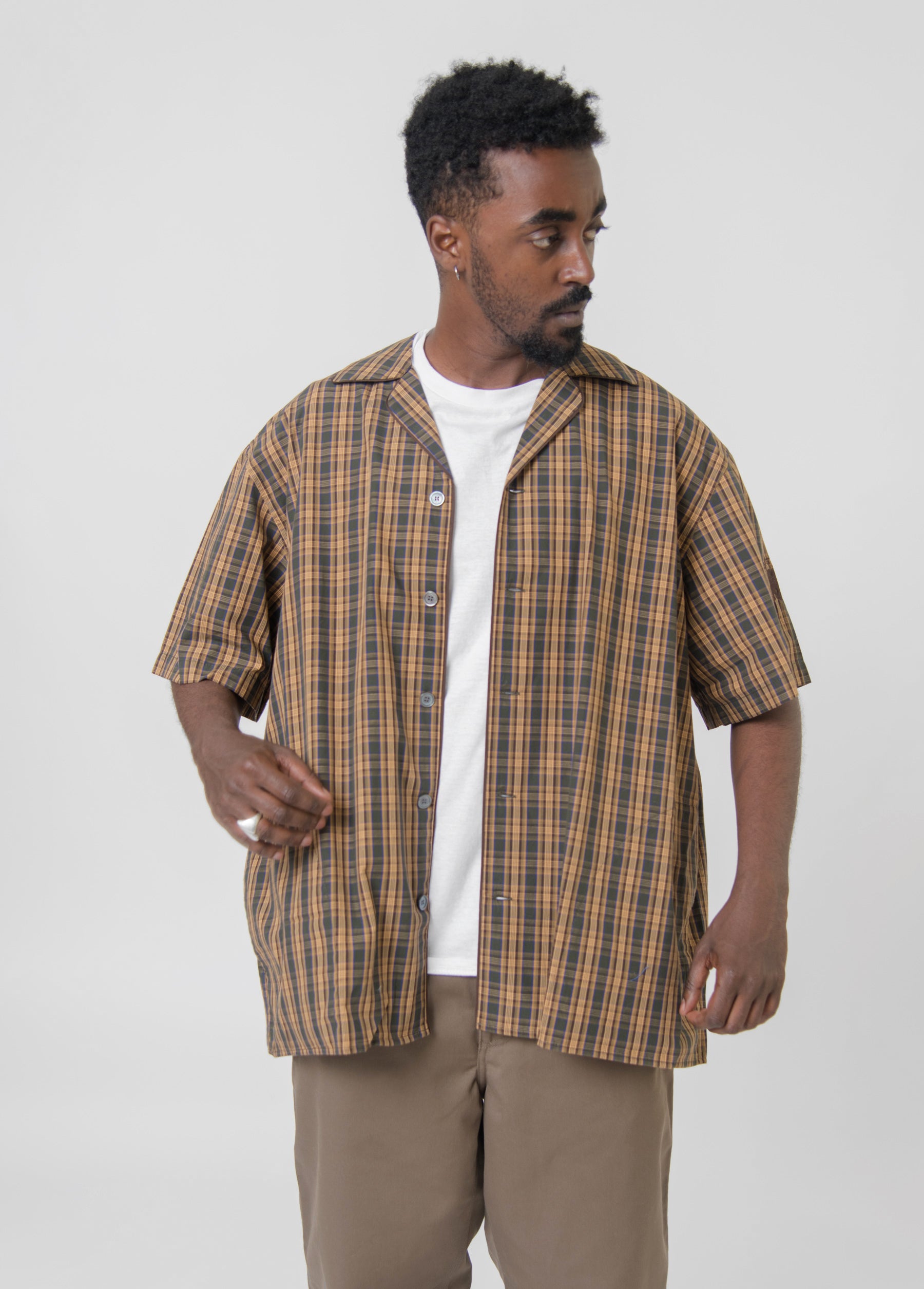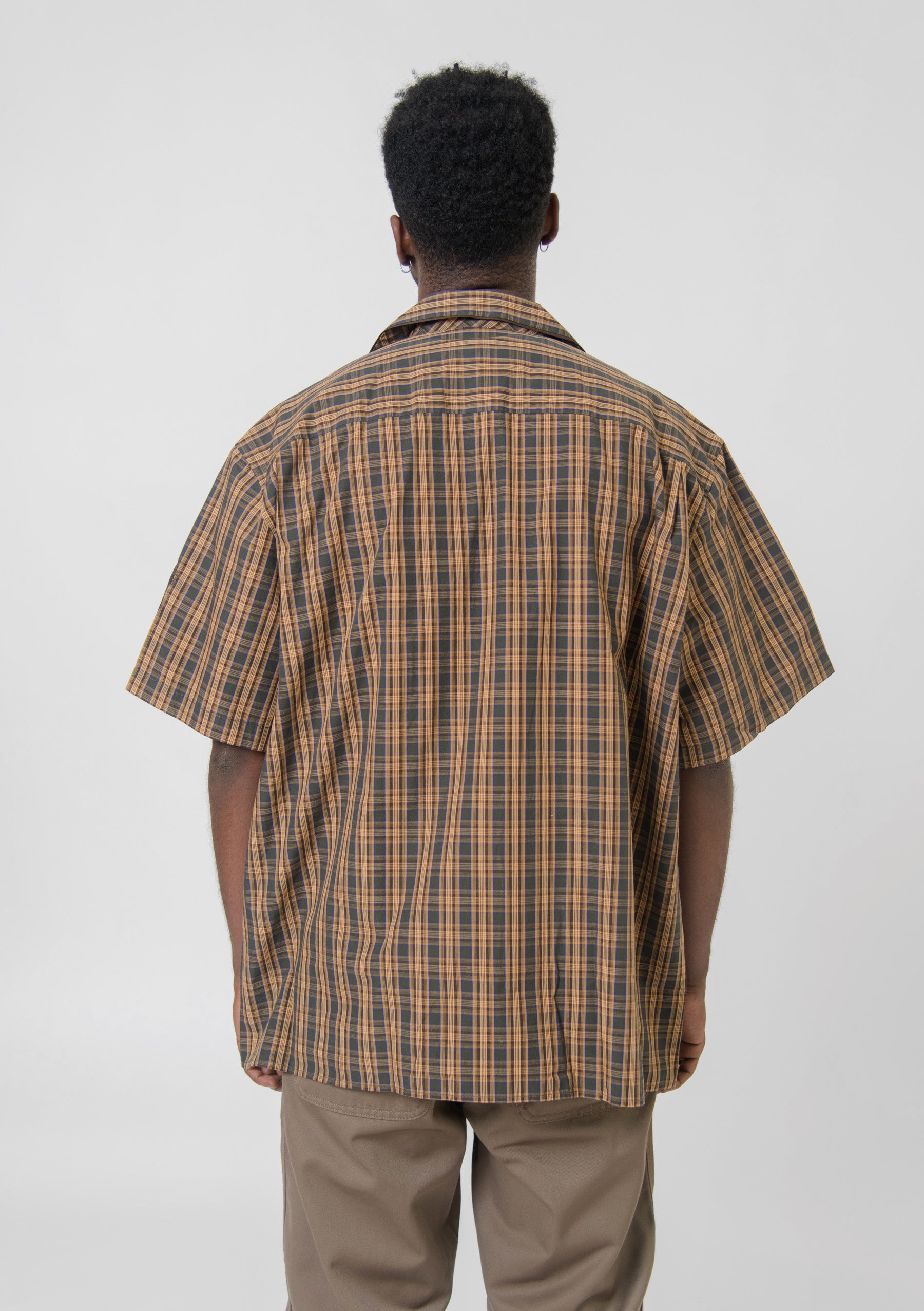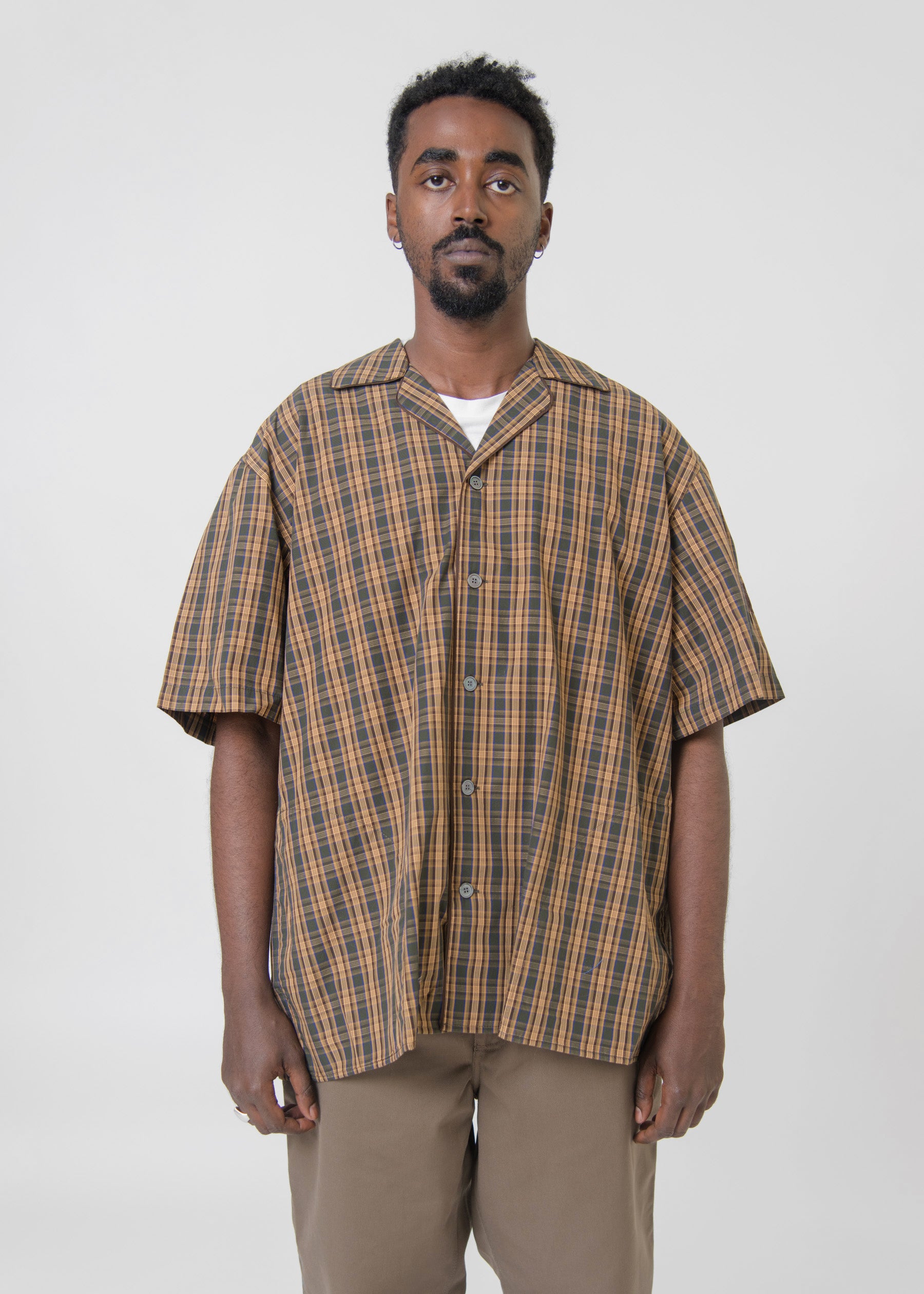 - Short sleeve button up shirt in Brown and Green