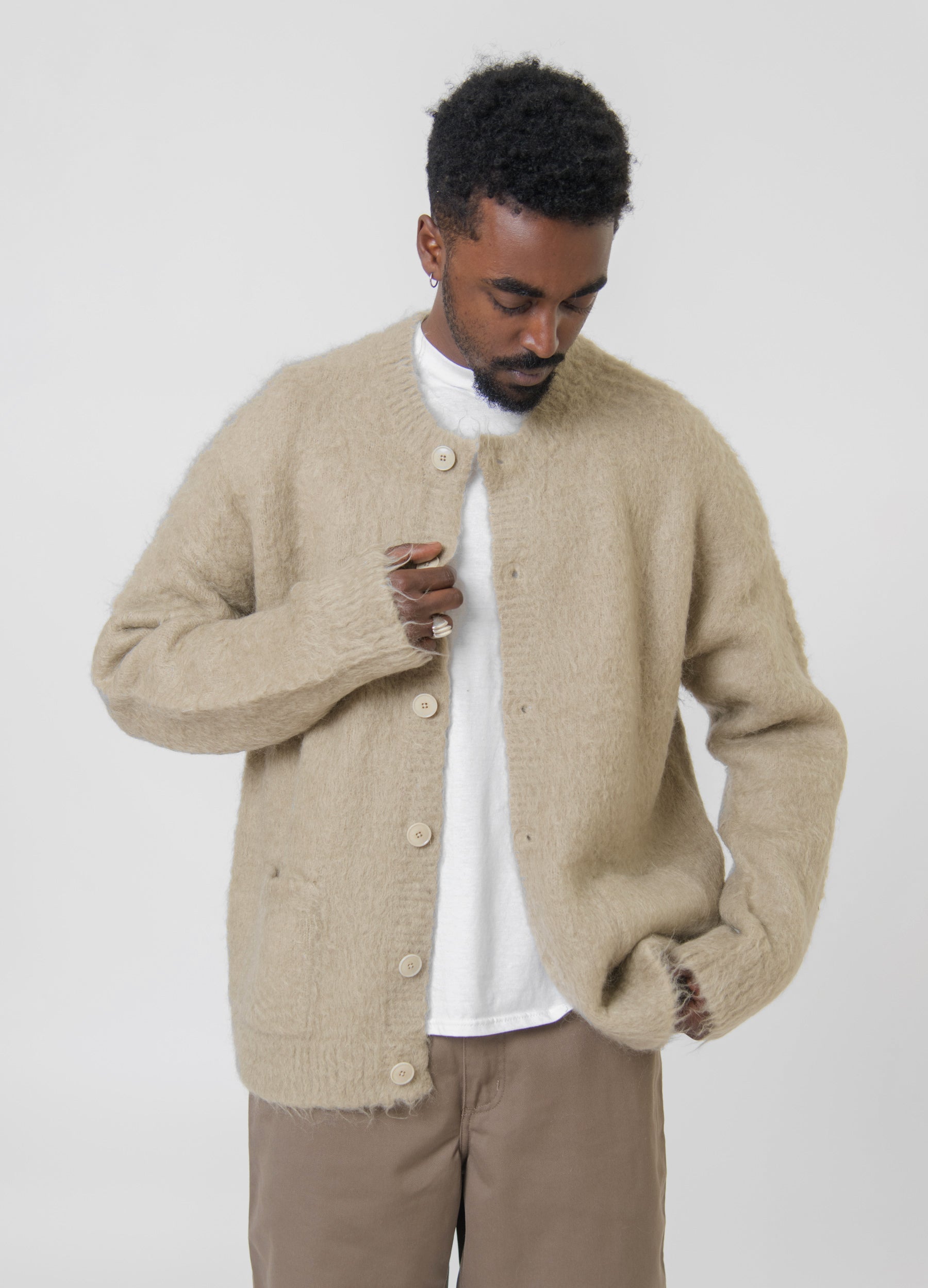 Wool Mohair Cardigan Dark Beige KNIT000431