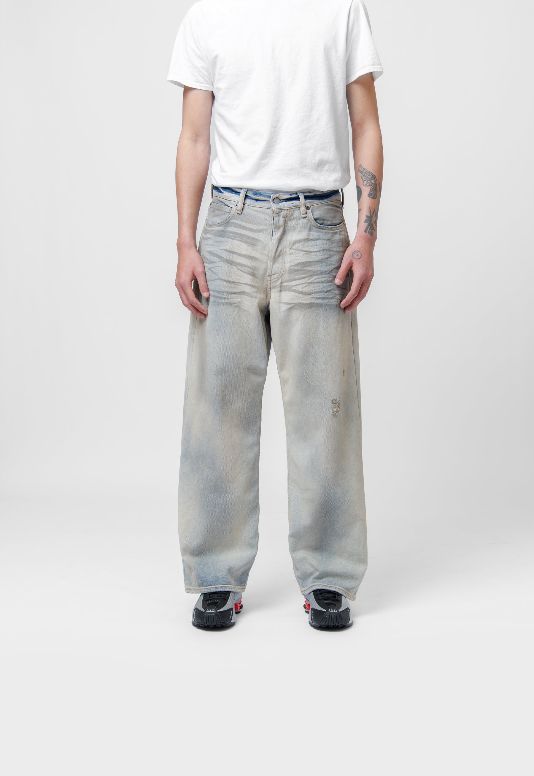 - Full-length Acne Studios cotton denim pants in Carver Light Blue