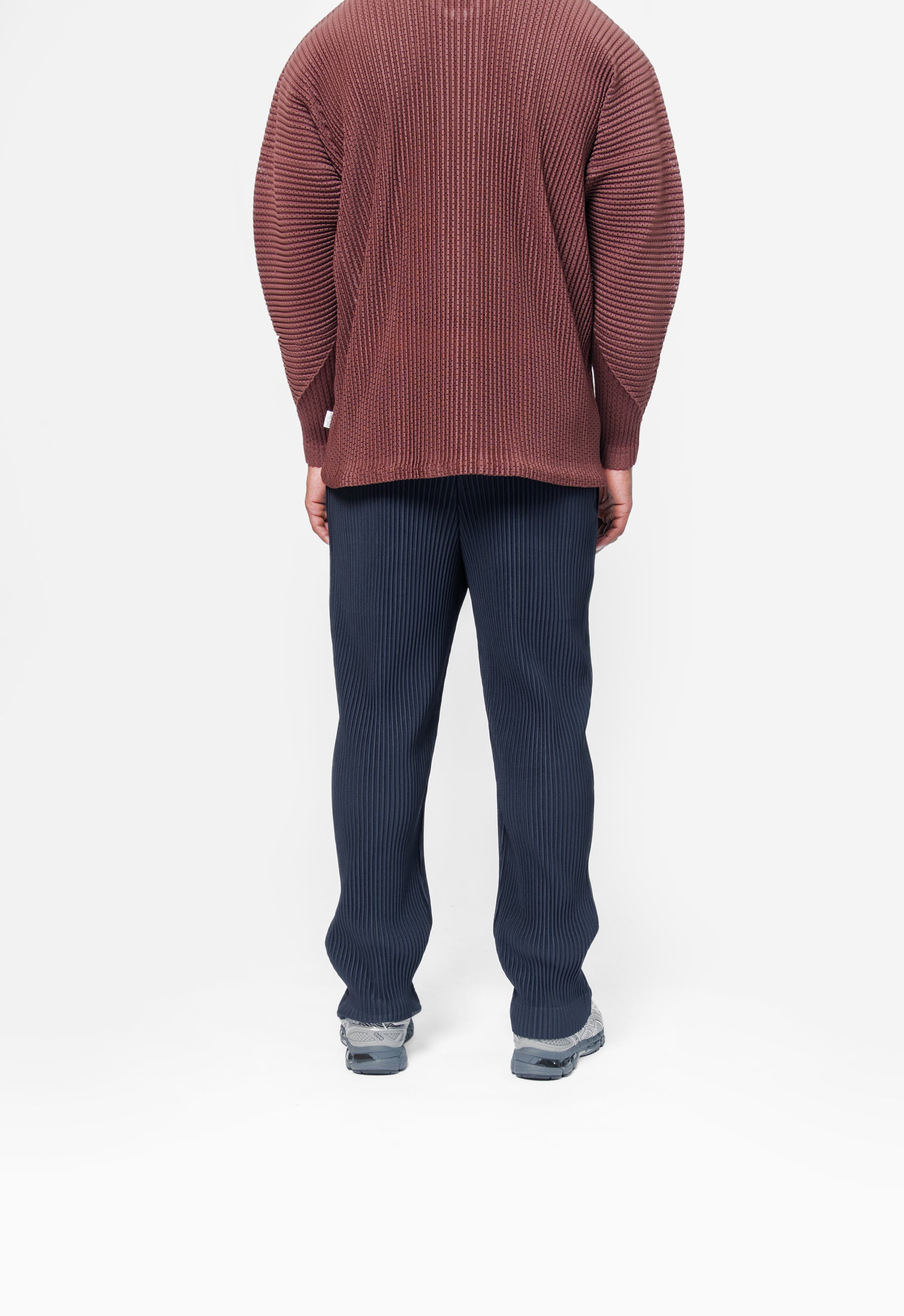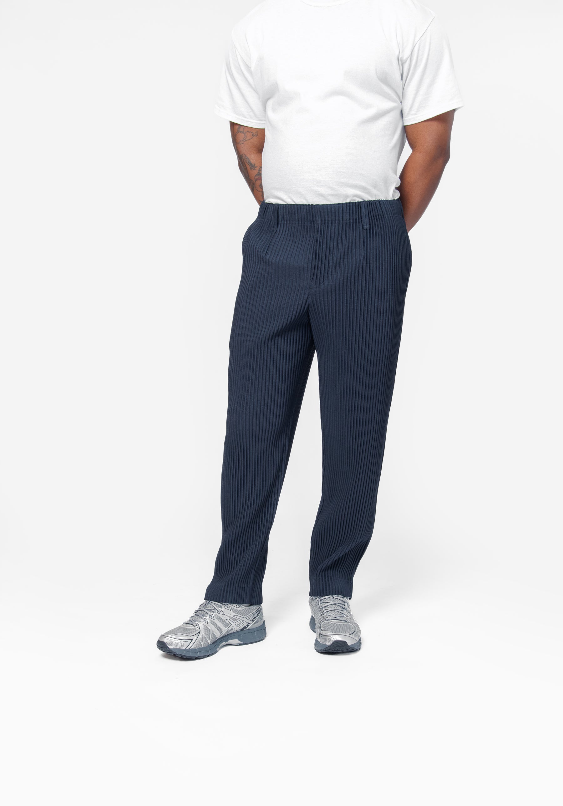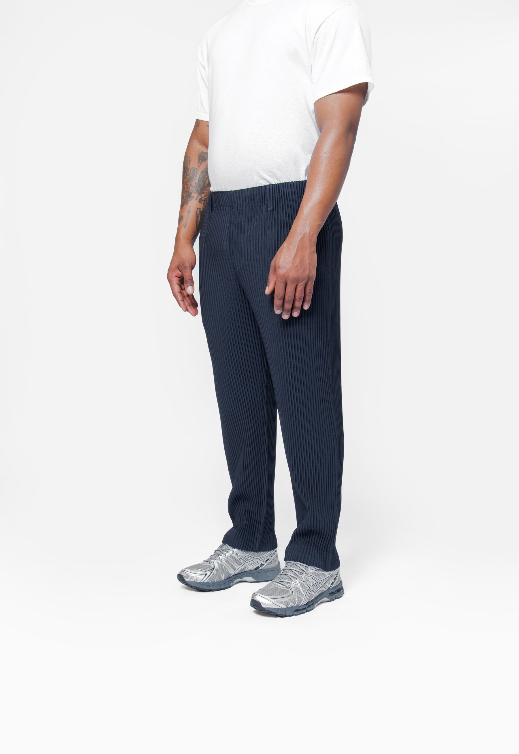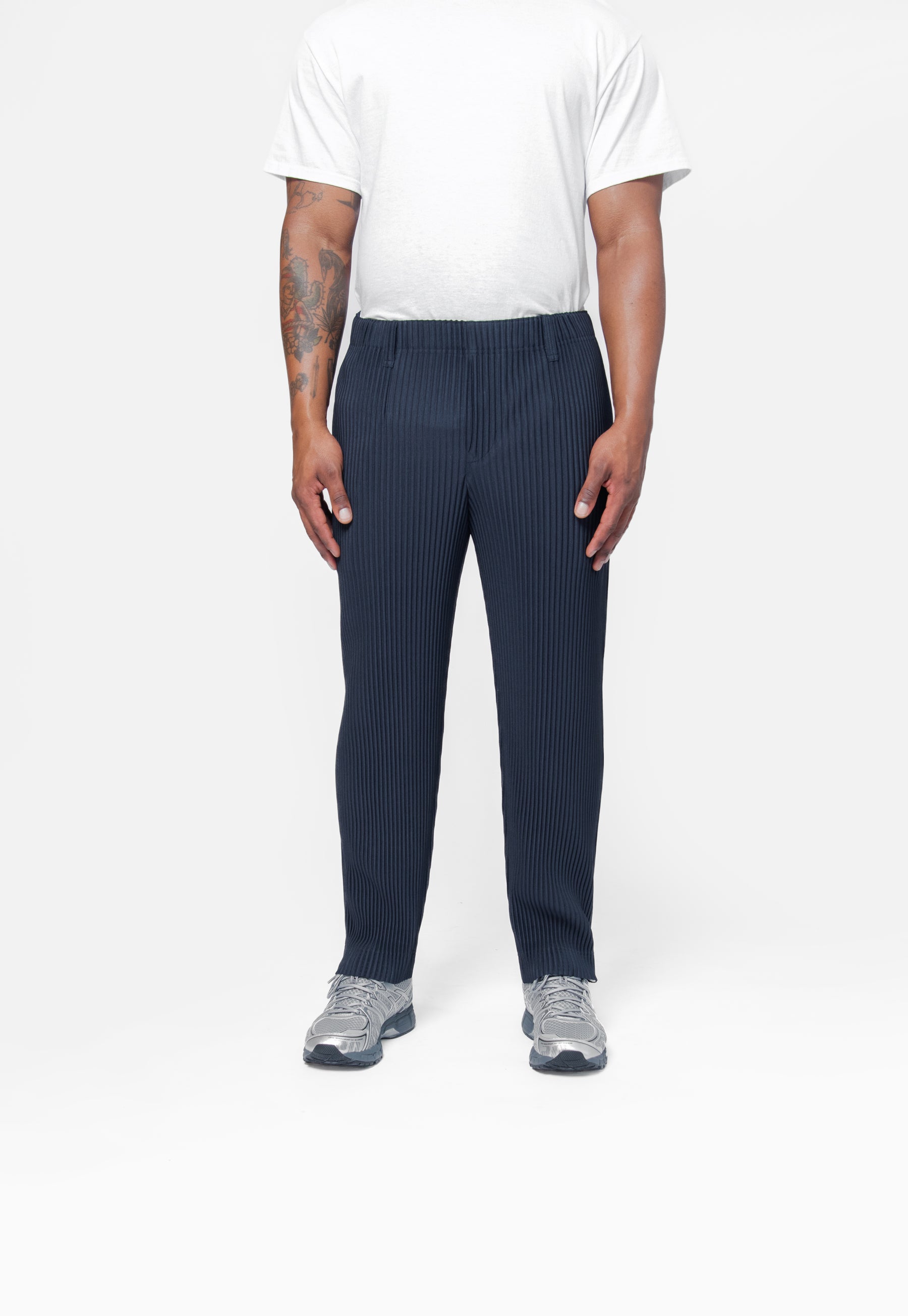 - Full-length Homme Plissé Issey Miyake pleated trousers in Navy