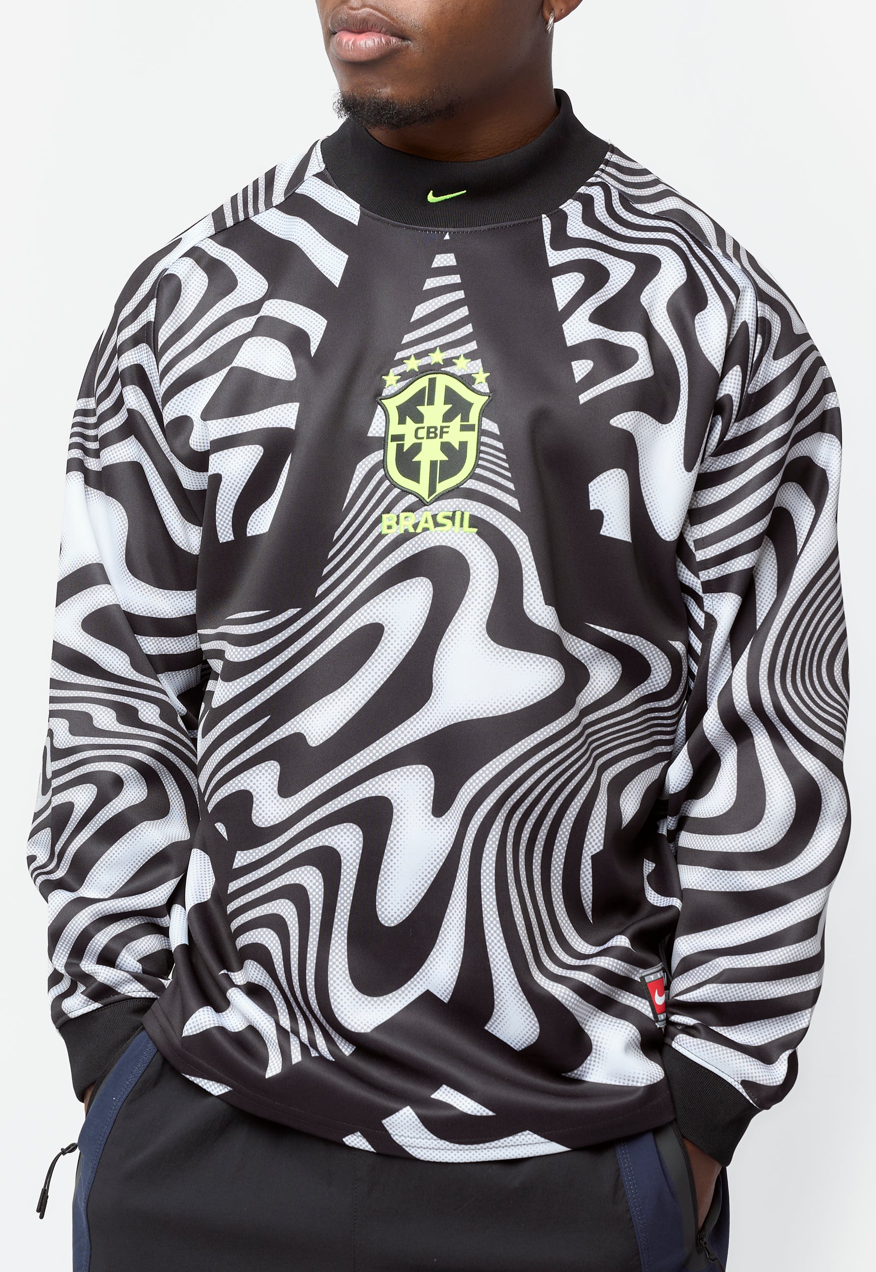 - Long sleeve Nike soccer jersey in Black, White and Neon Yellow