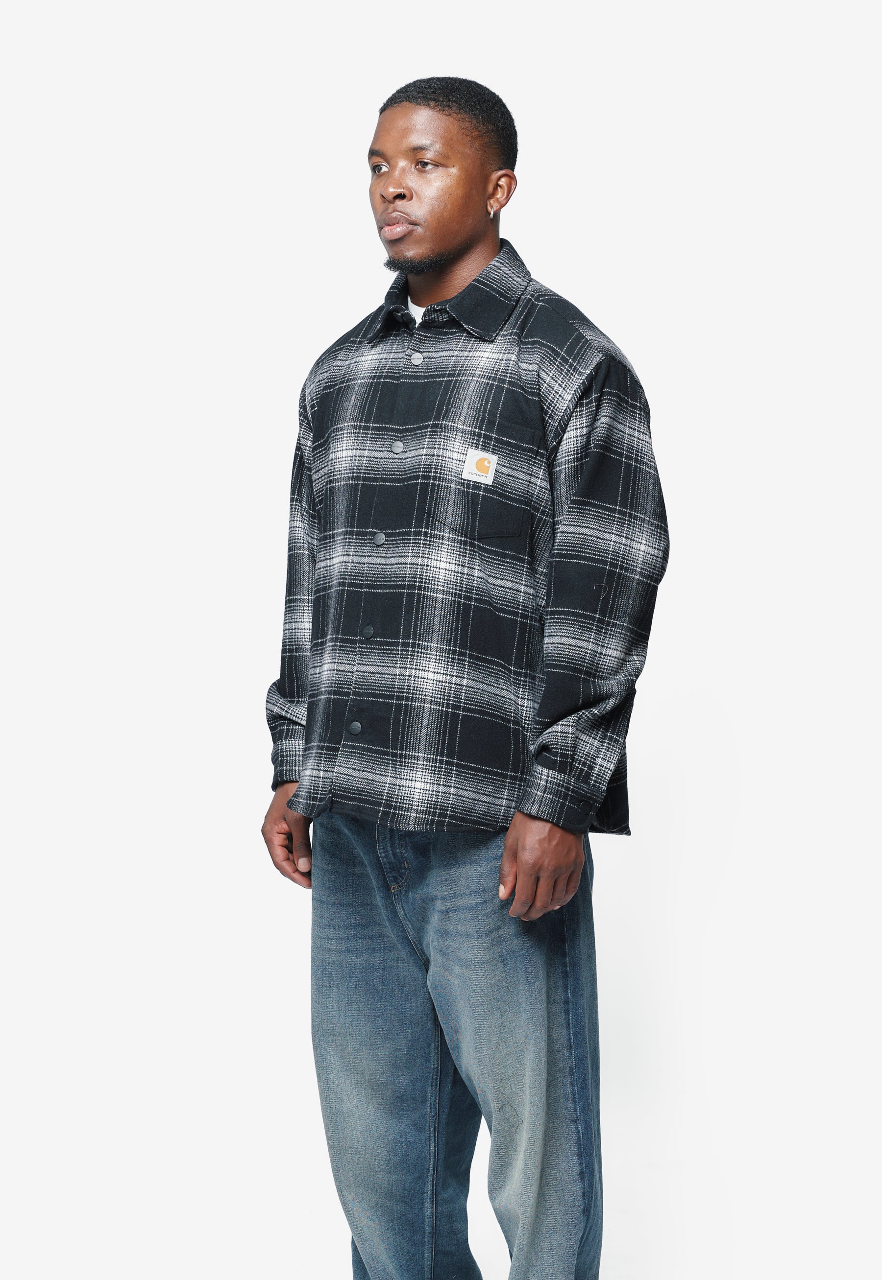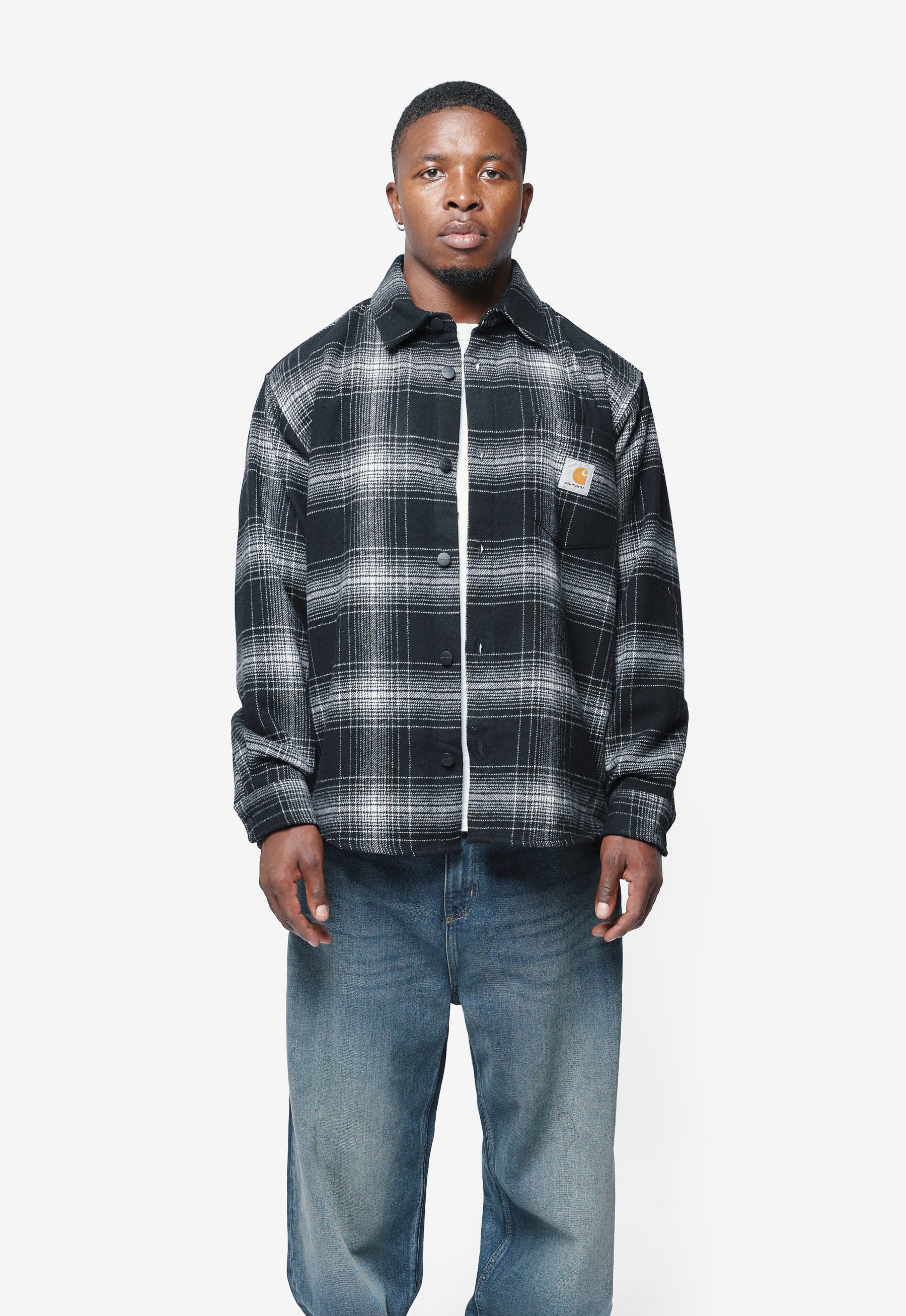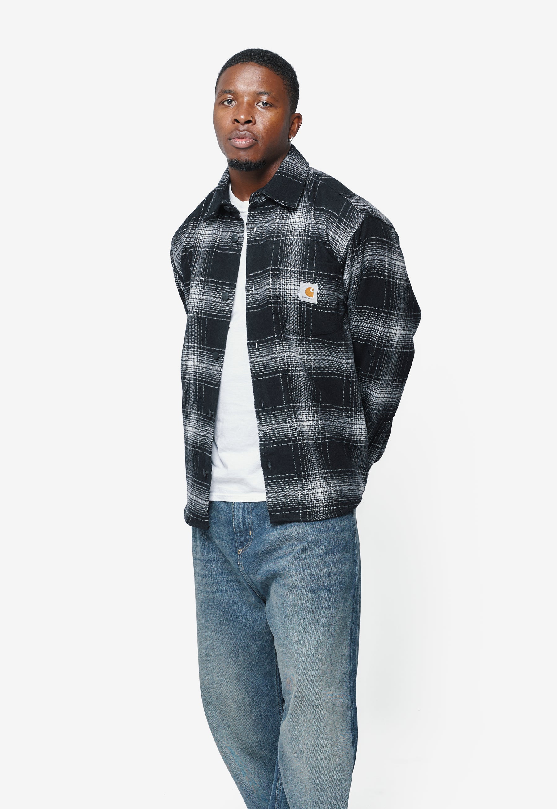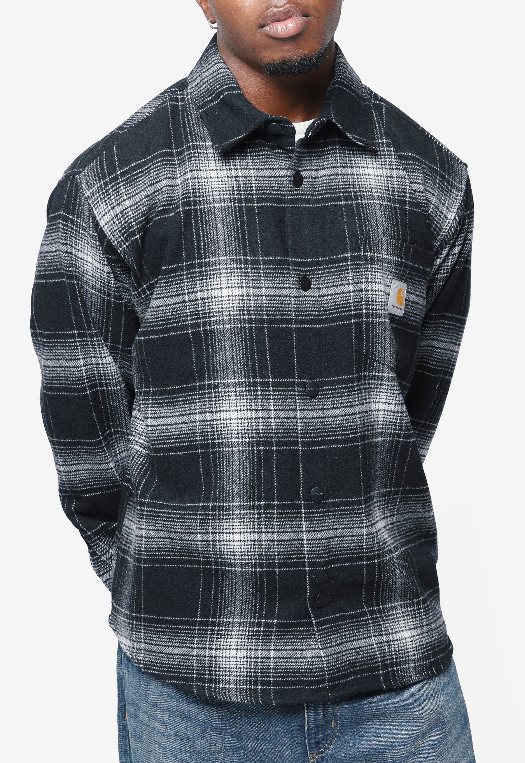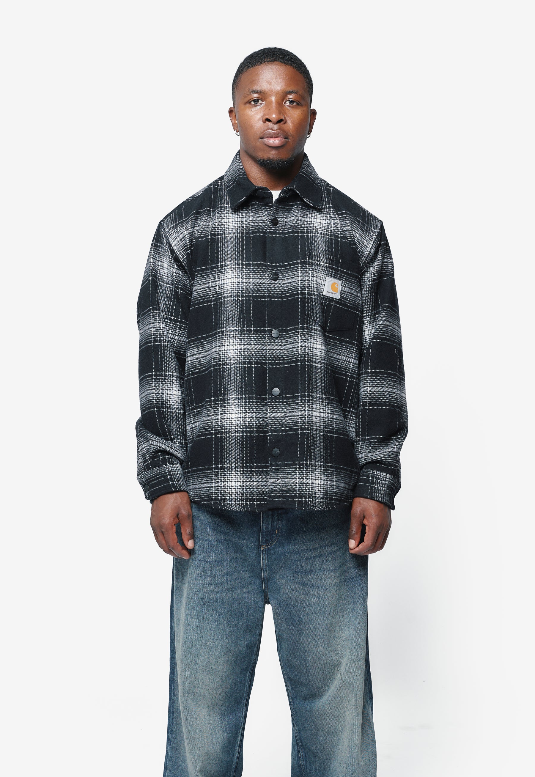 - Long sleeve Carhartt Work in Progress padded shirt in Black and Wax
