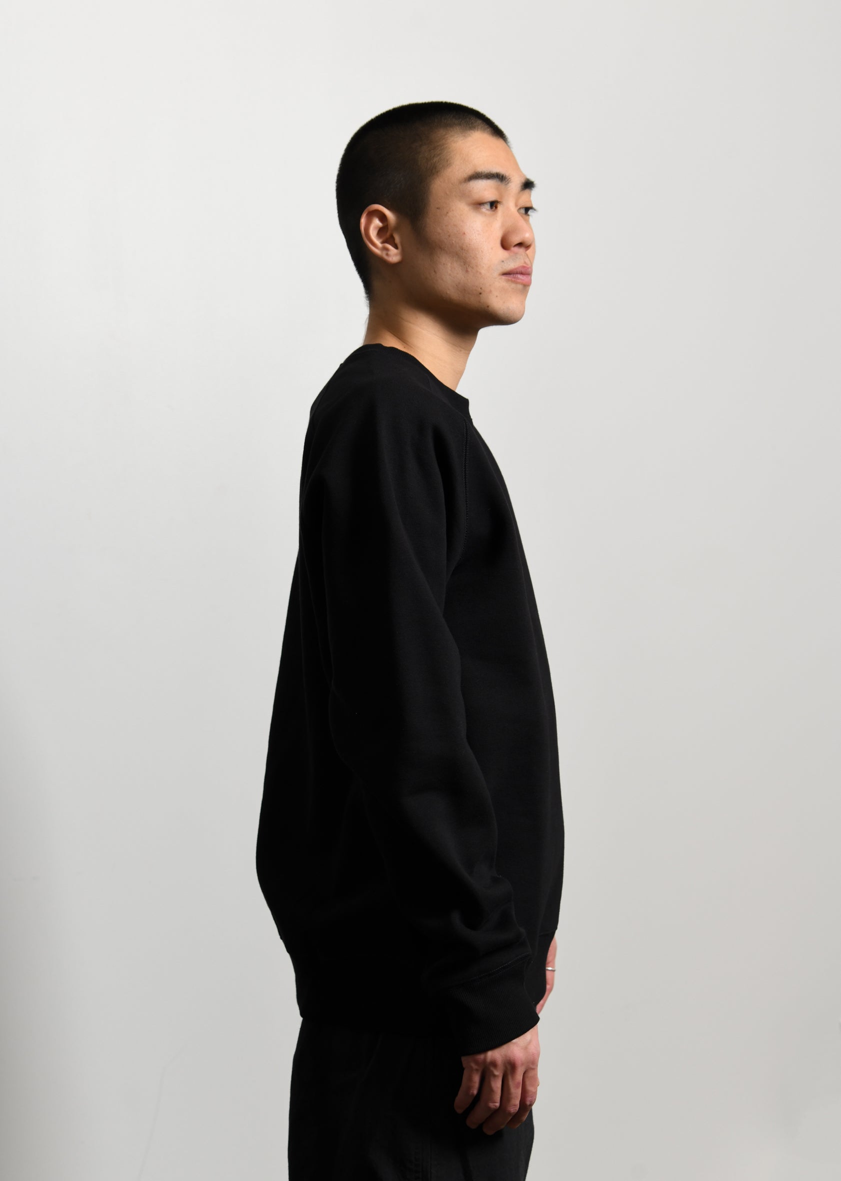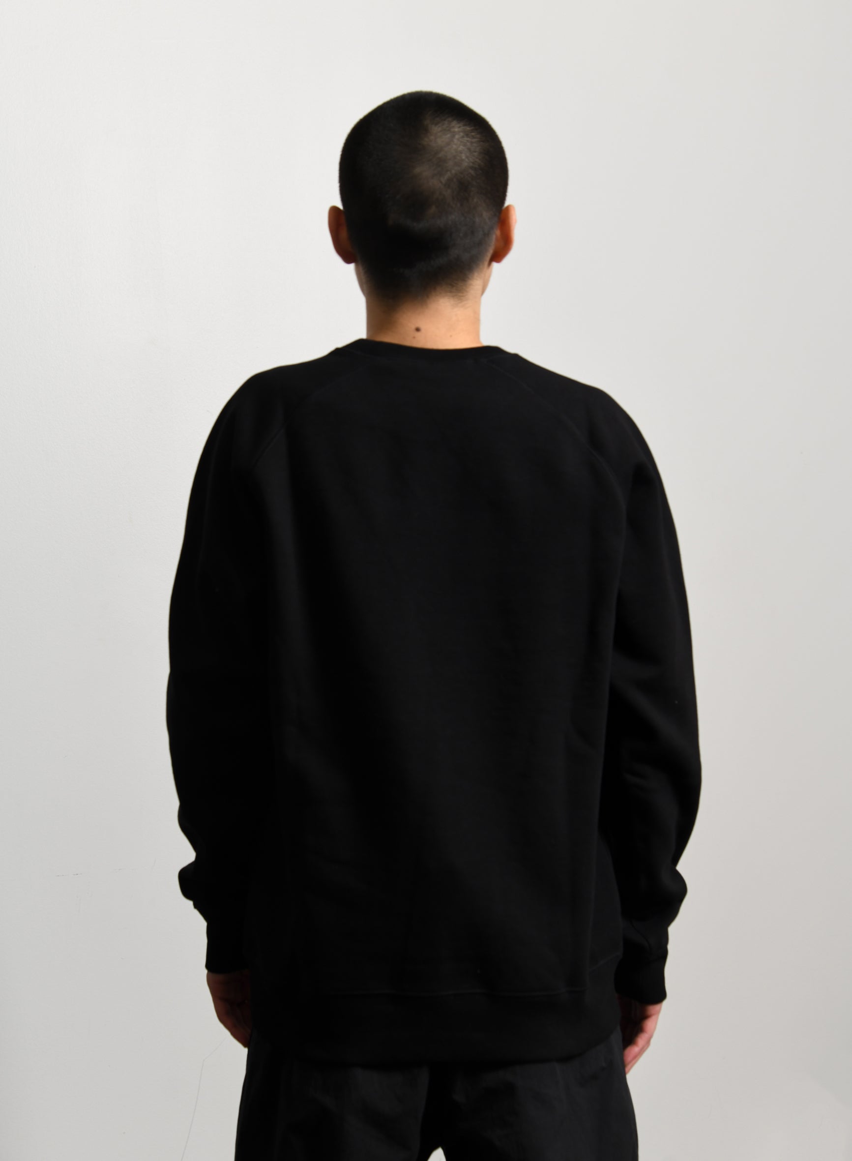 - Long sleeve cotton fleece crewneck sweater in Black