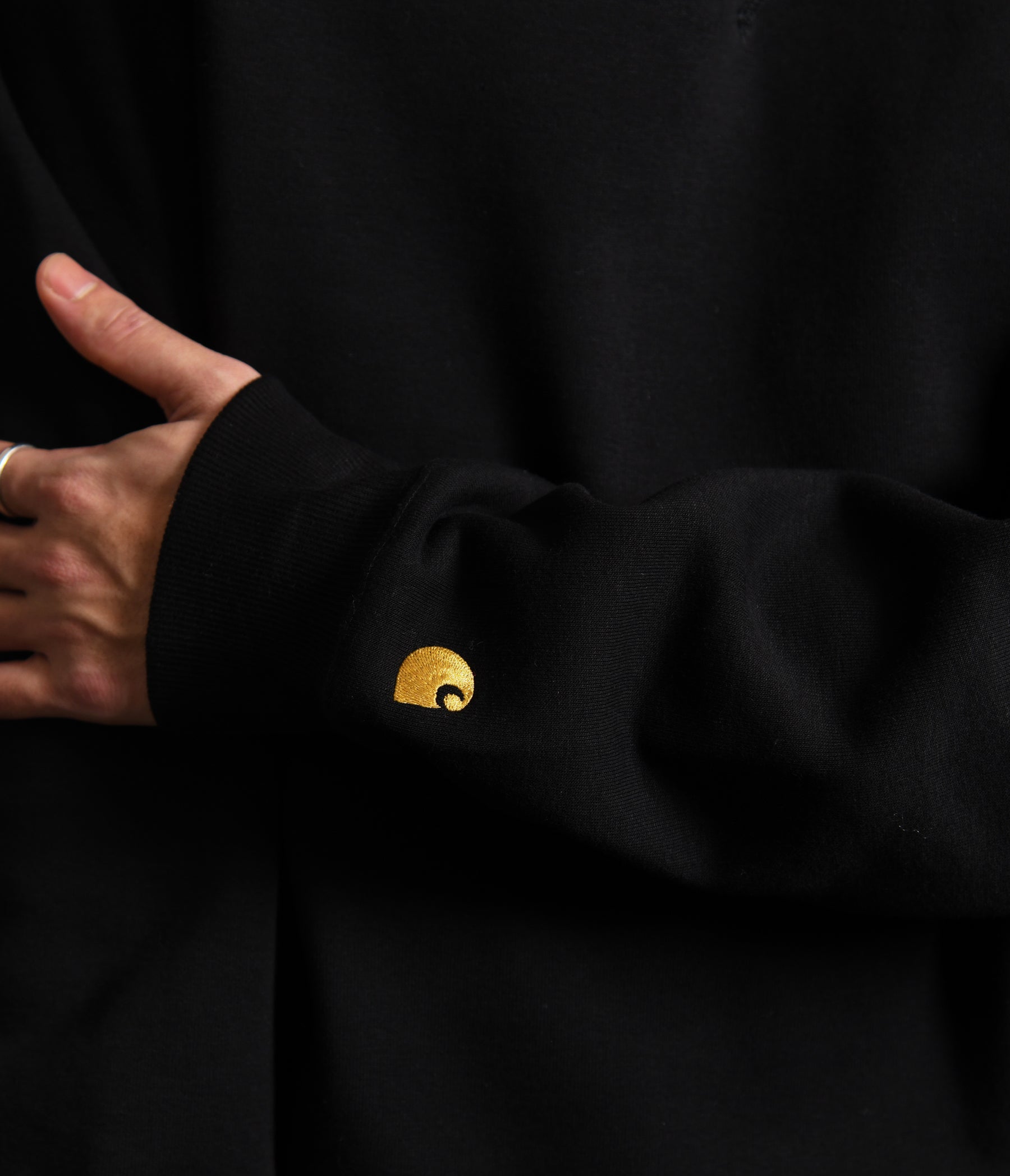 - Logo embroidery in gold at left sleeve