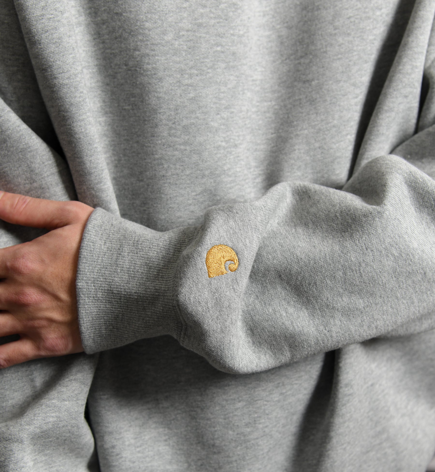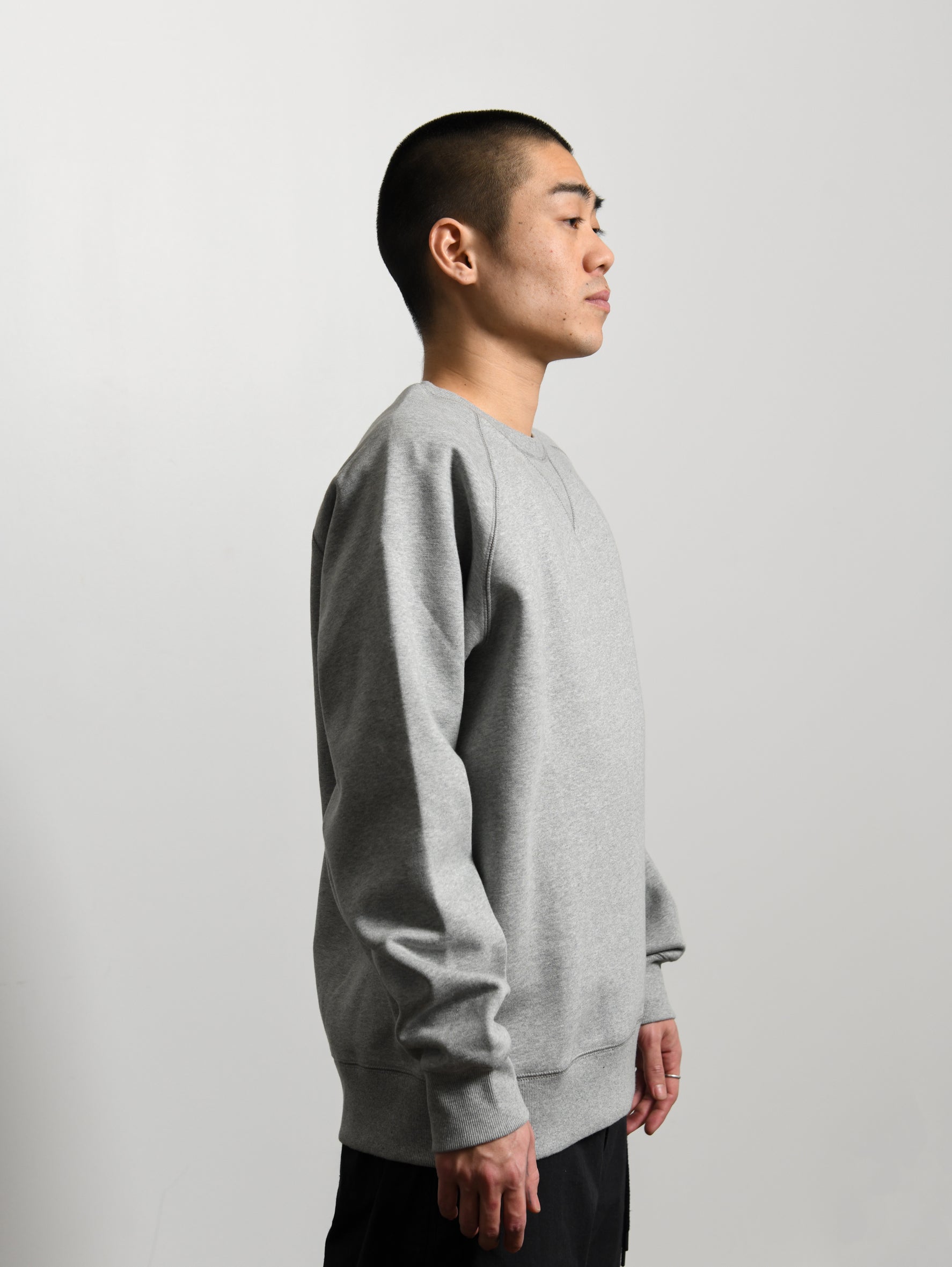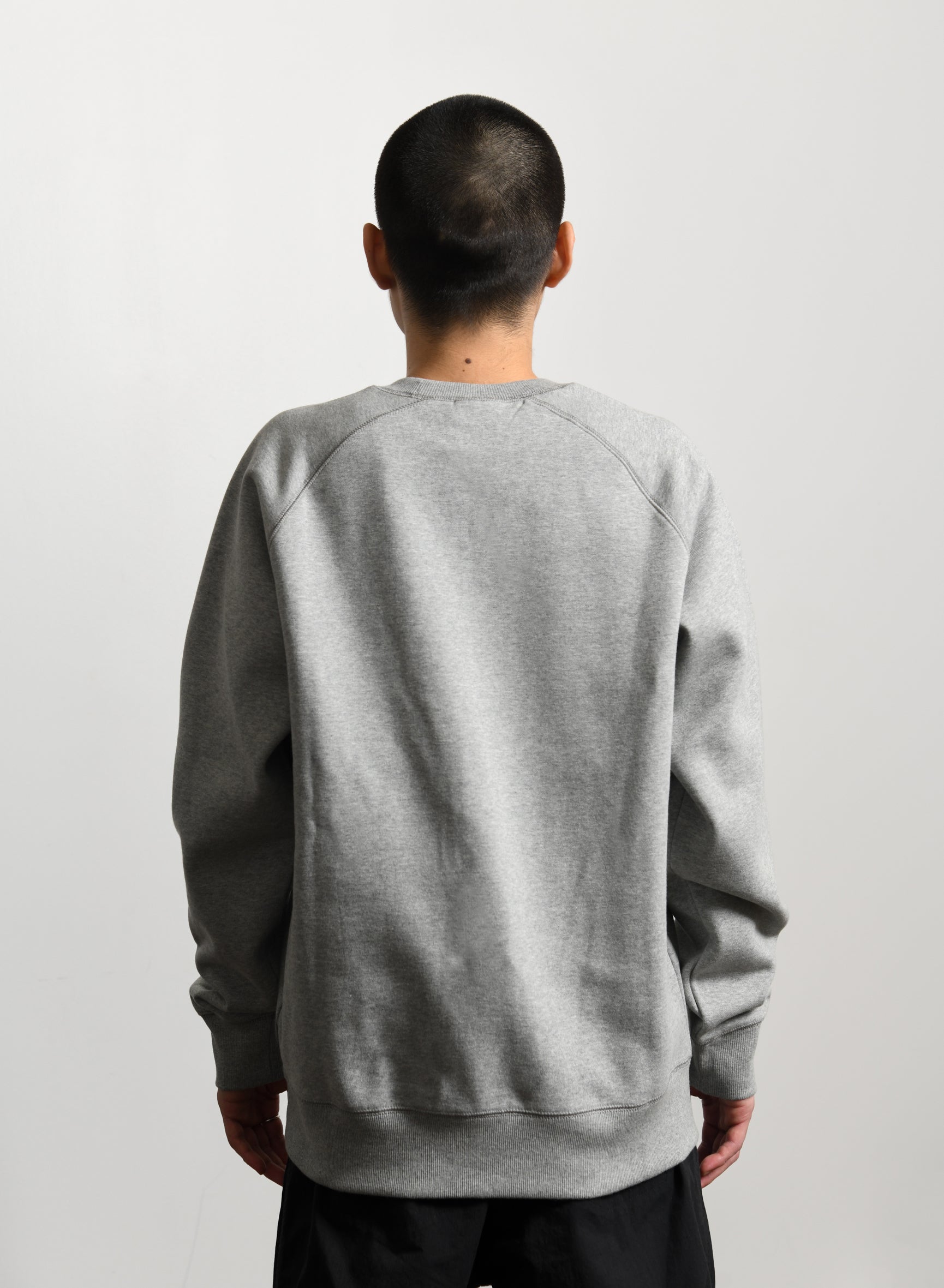 - Long sleeve cotton fleece crewneck sweater in Heather Grey