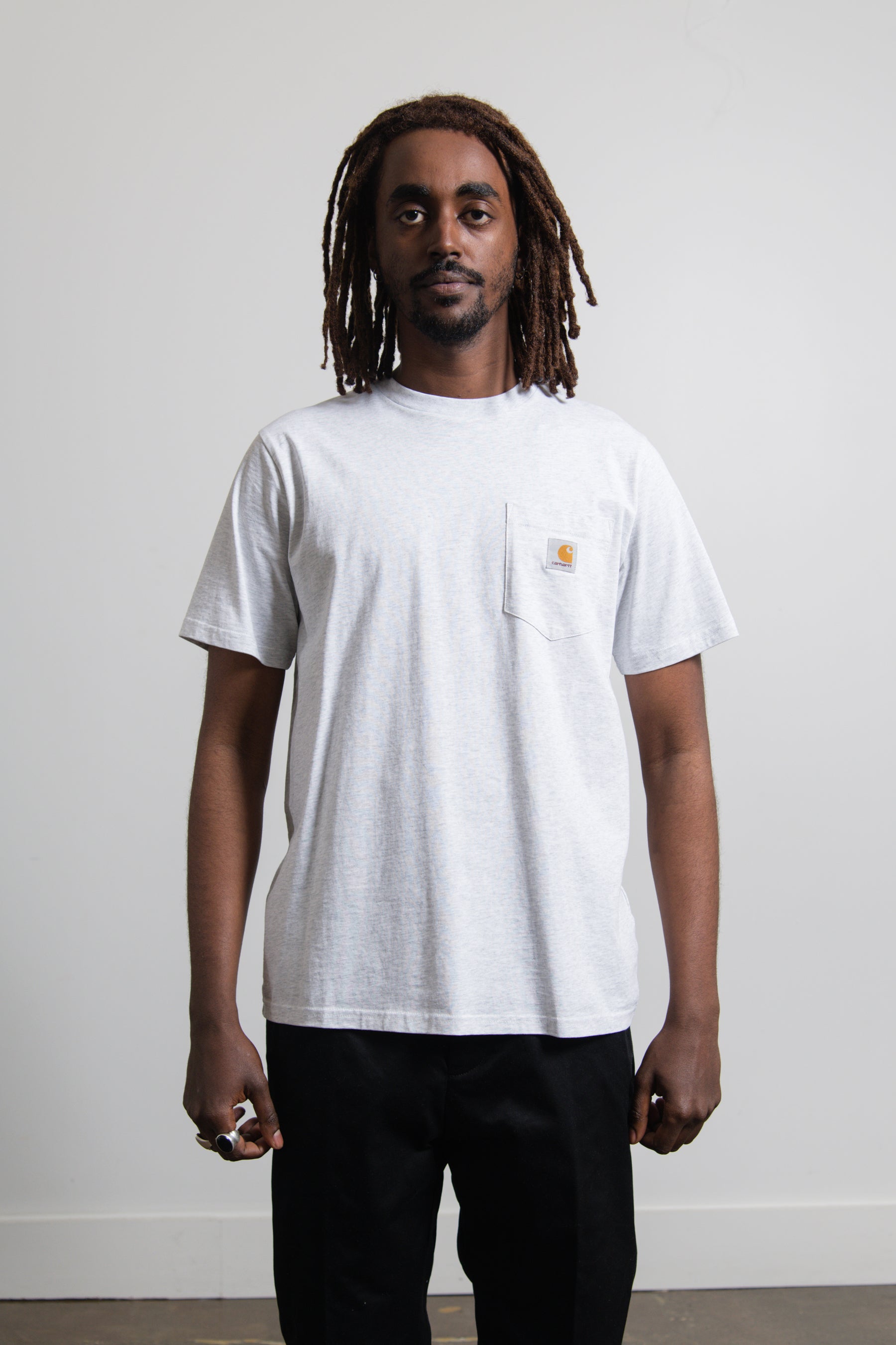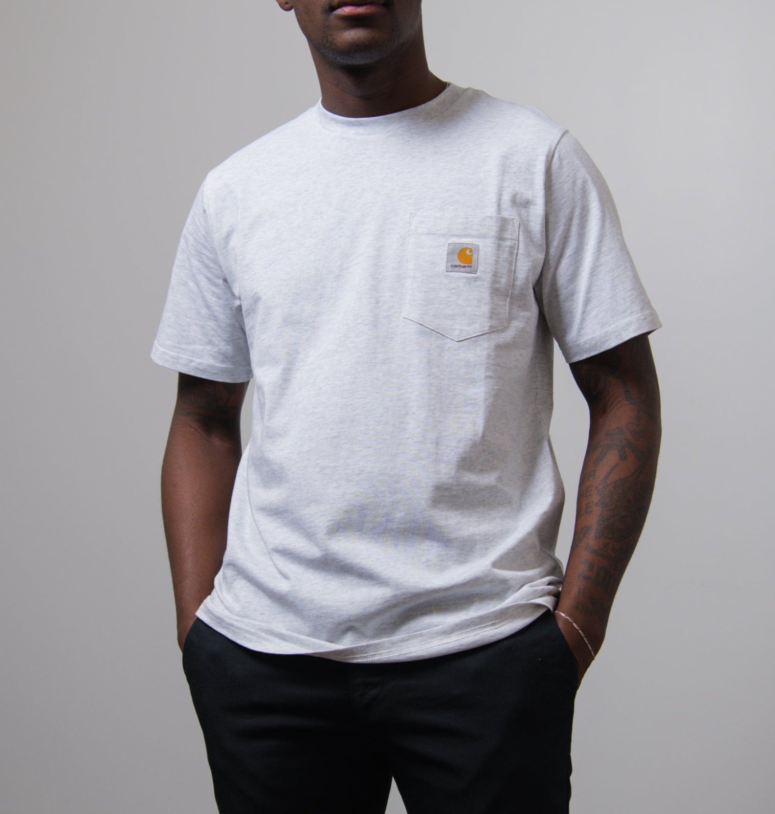 - Short sleeve cotton jersey pocket t-shirt in Ash Heather