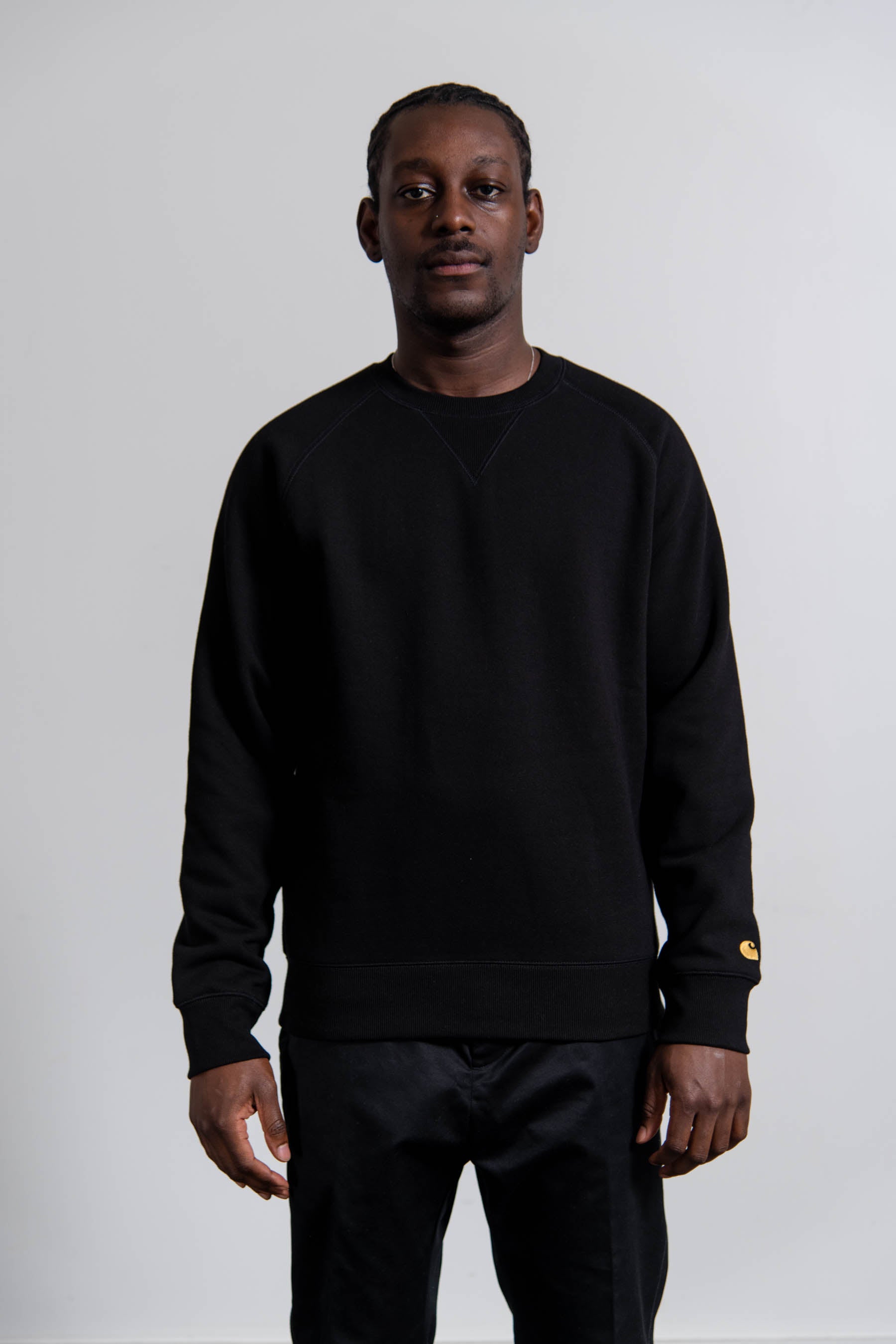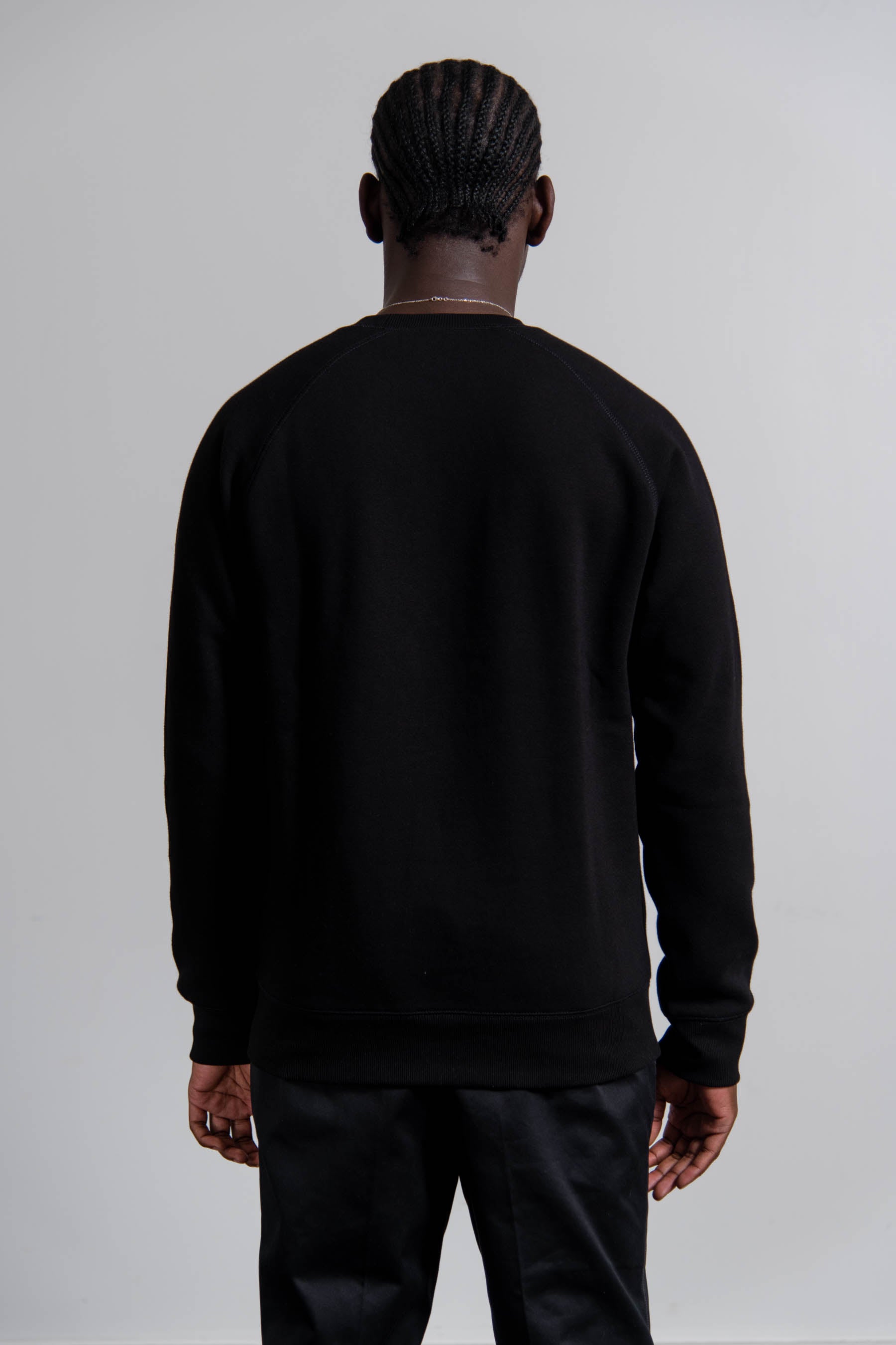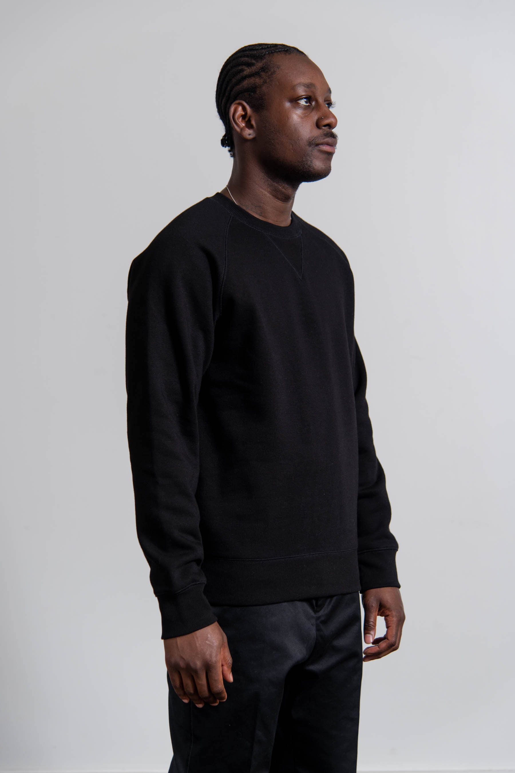 - Long sleeve cotton-poly blend fleece crewneck sweater in Black
