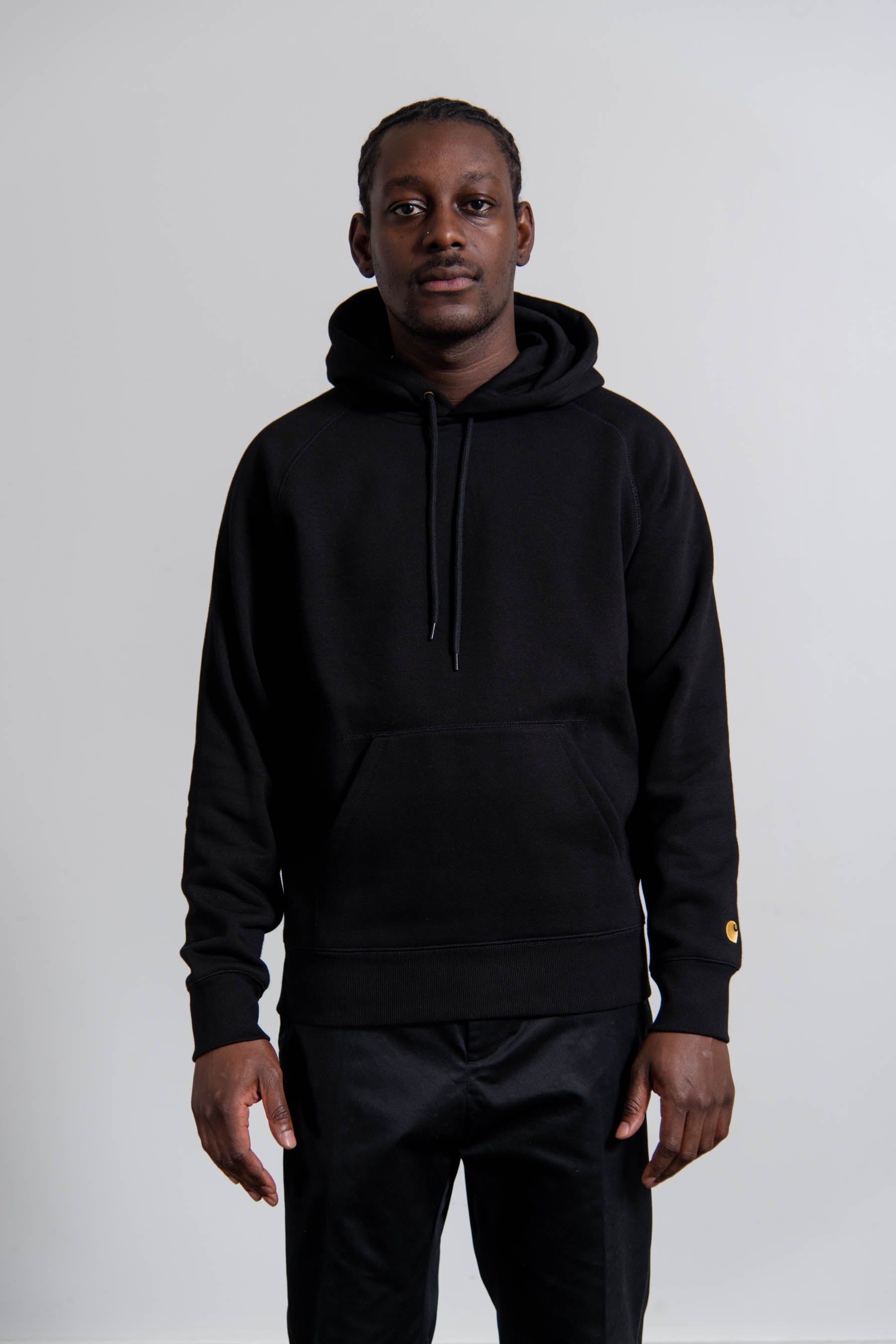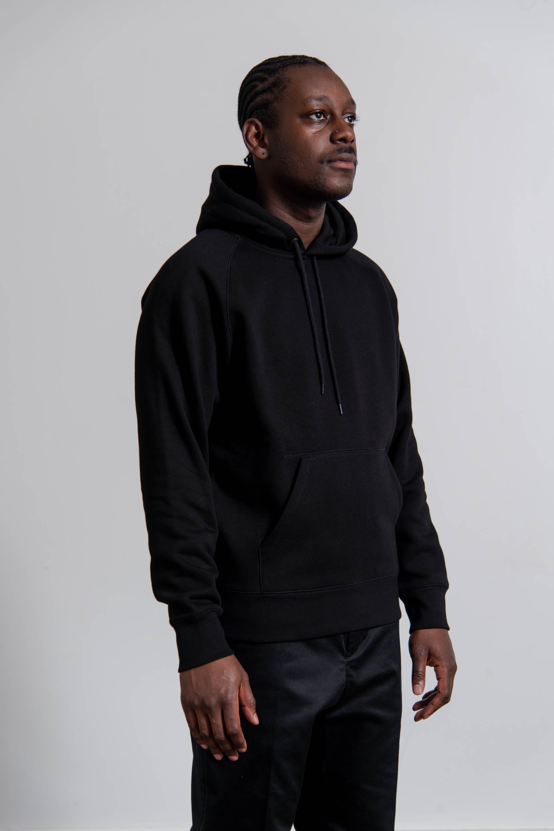 - Long sleeve cotton-poly blend fleece hoodie in Black