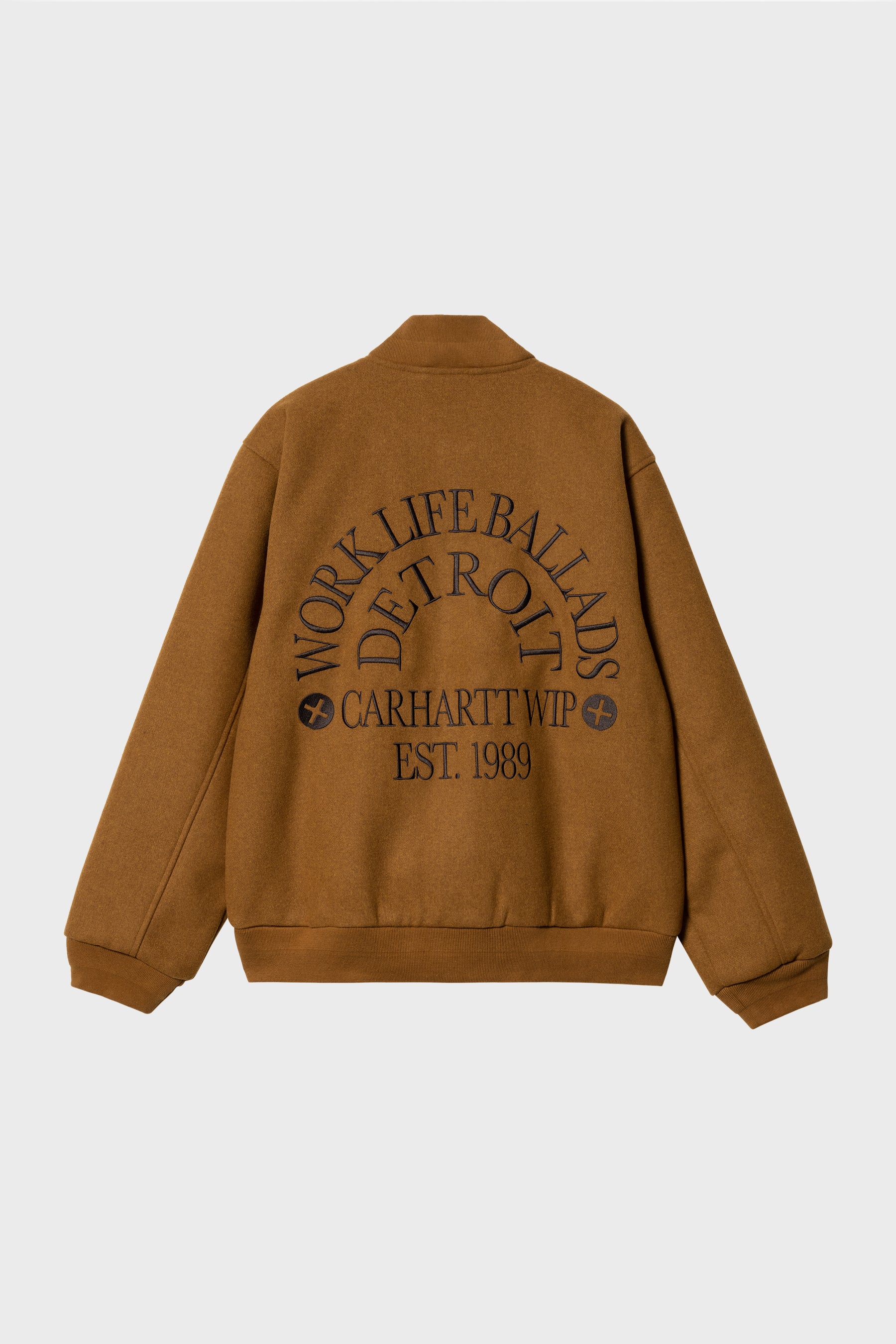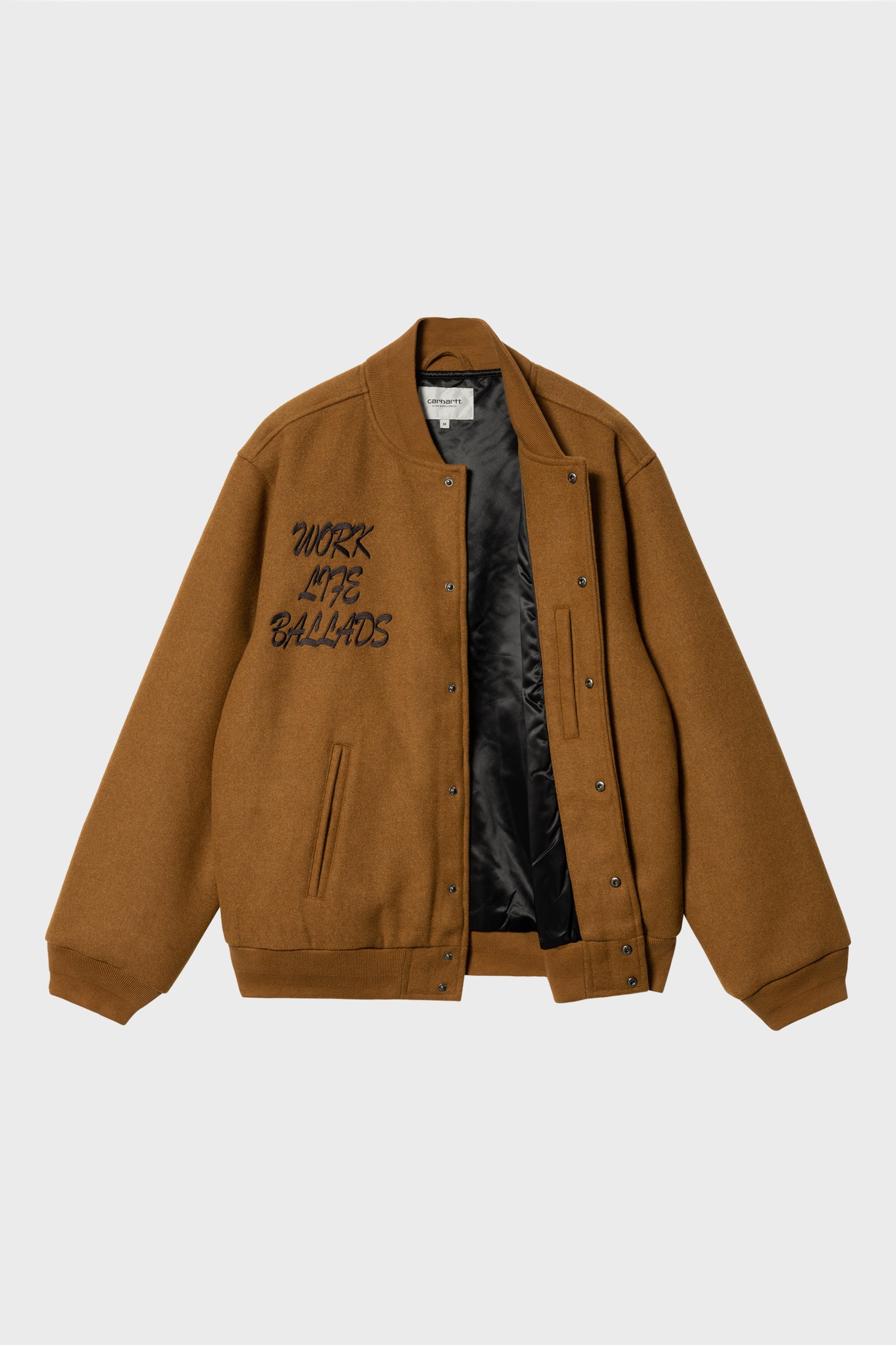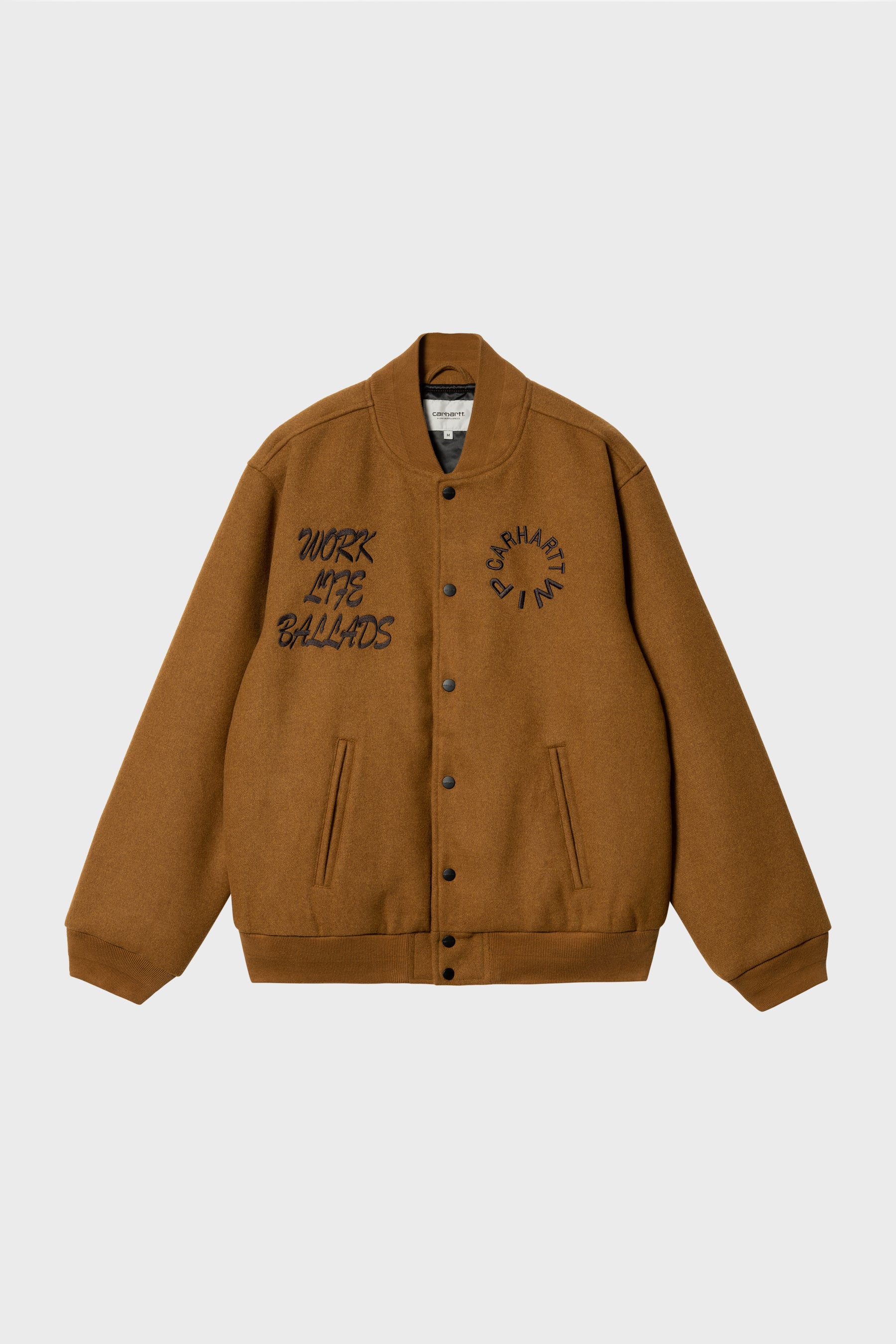 - Carhartt varsity bomber jacket in Deep Heather Brown