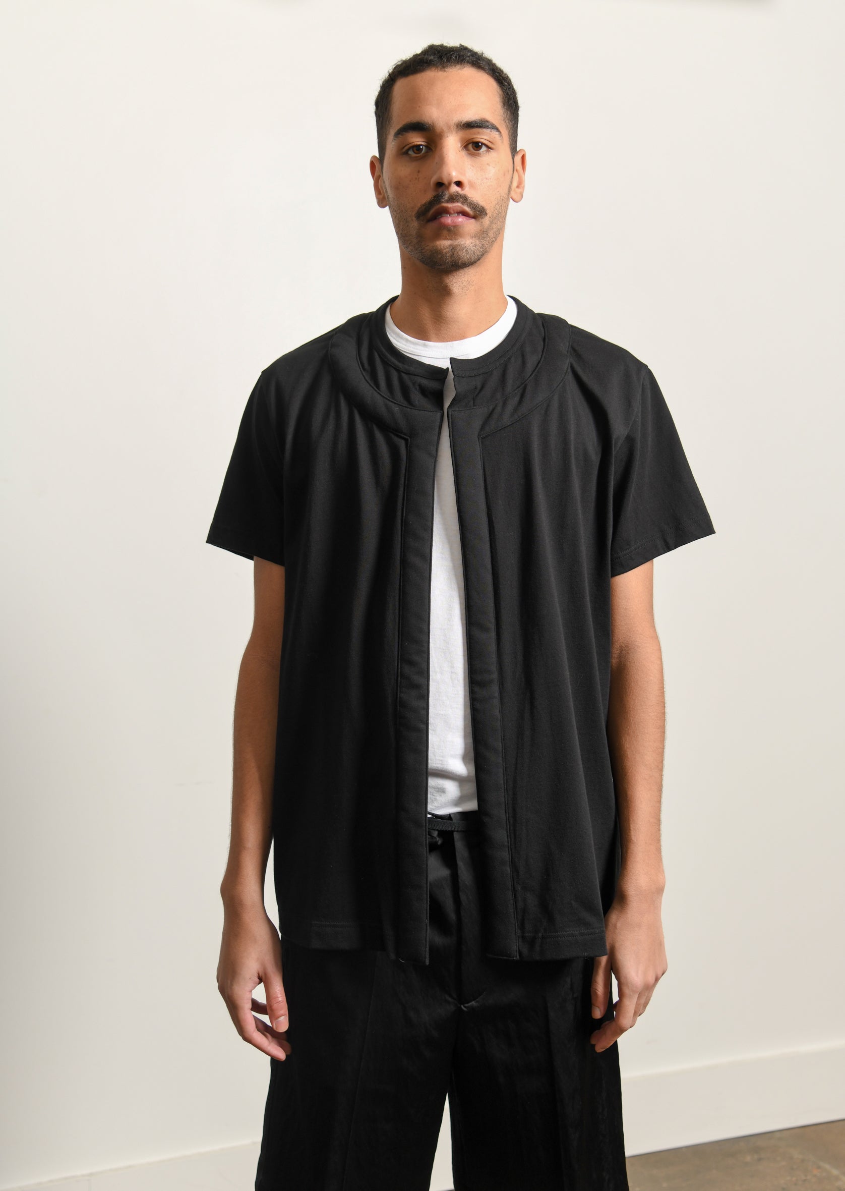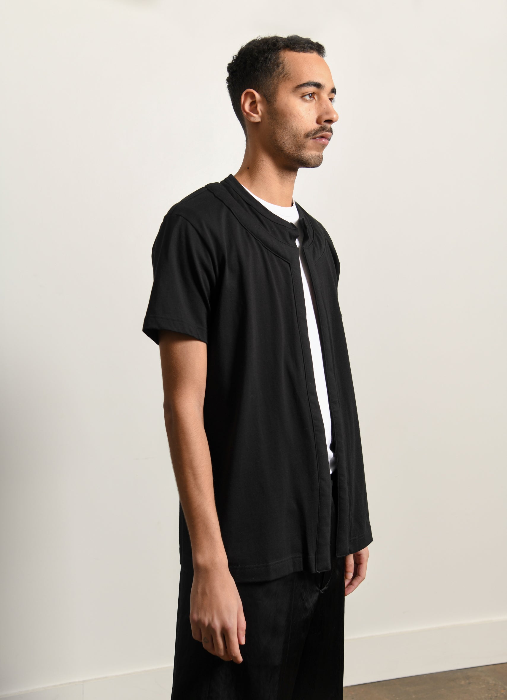 - Padded trim at shirt opening and collar
