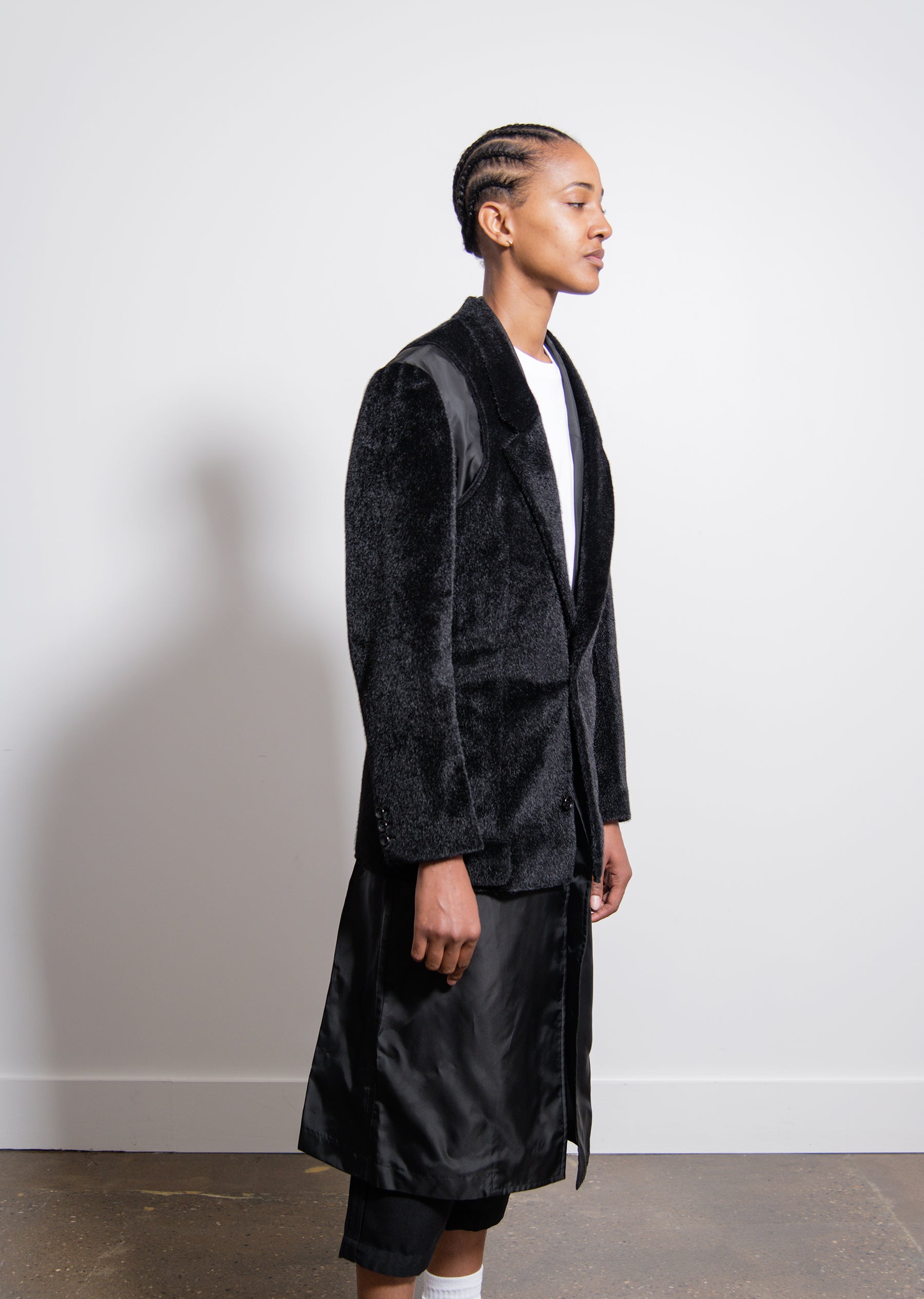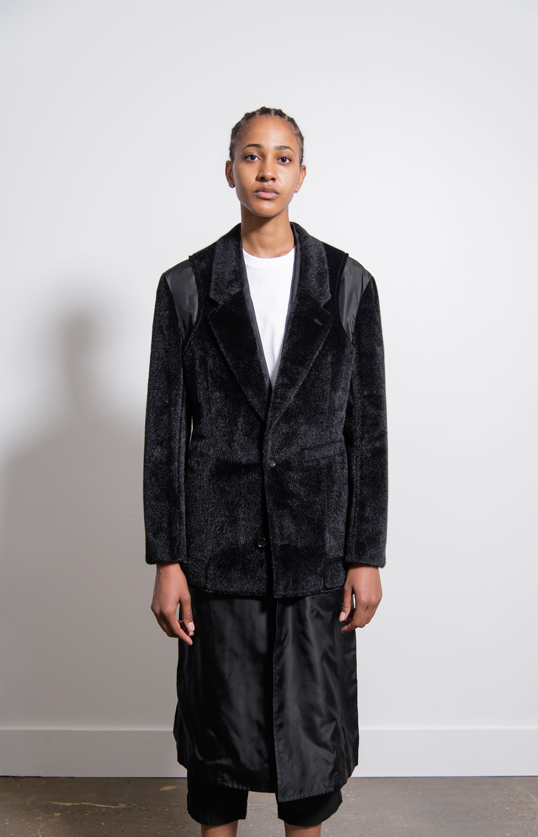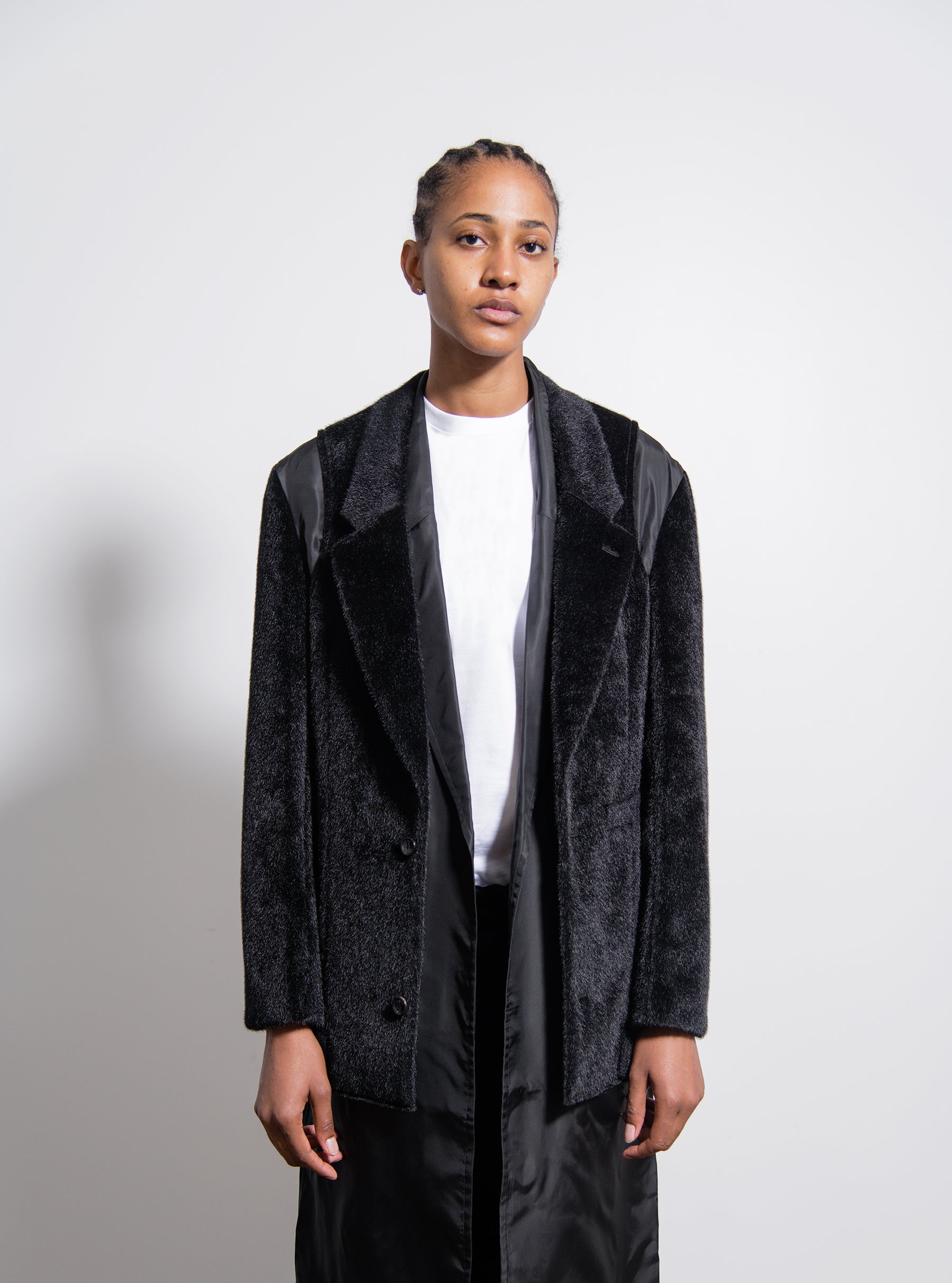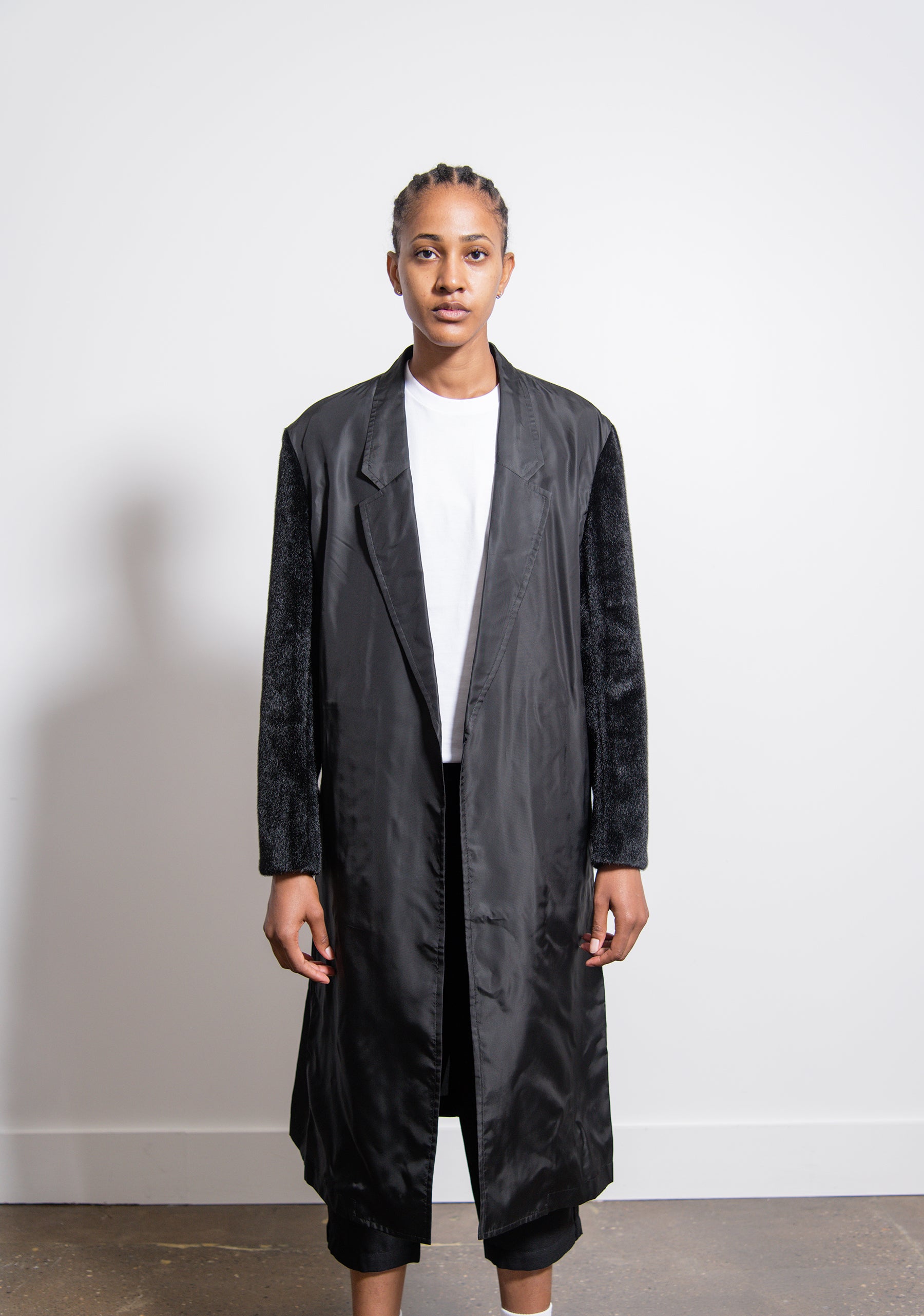 Polyester Nylon Synthetic Fur Cupro Twill Coat Black