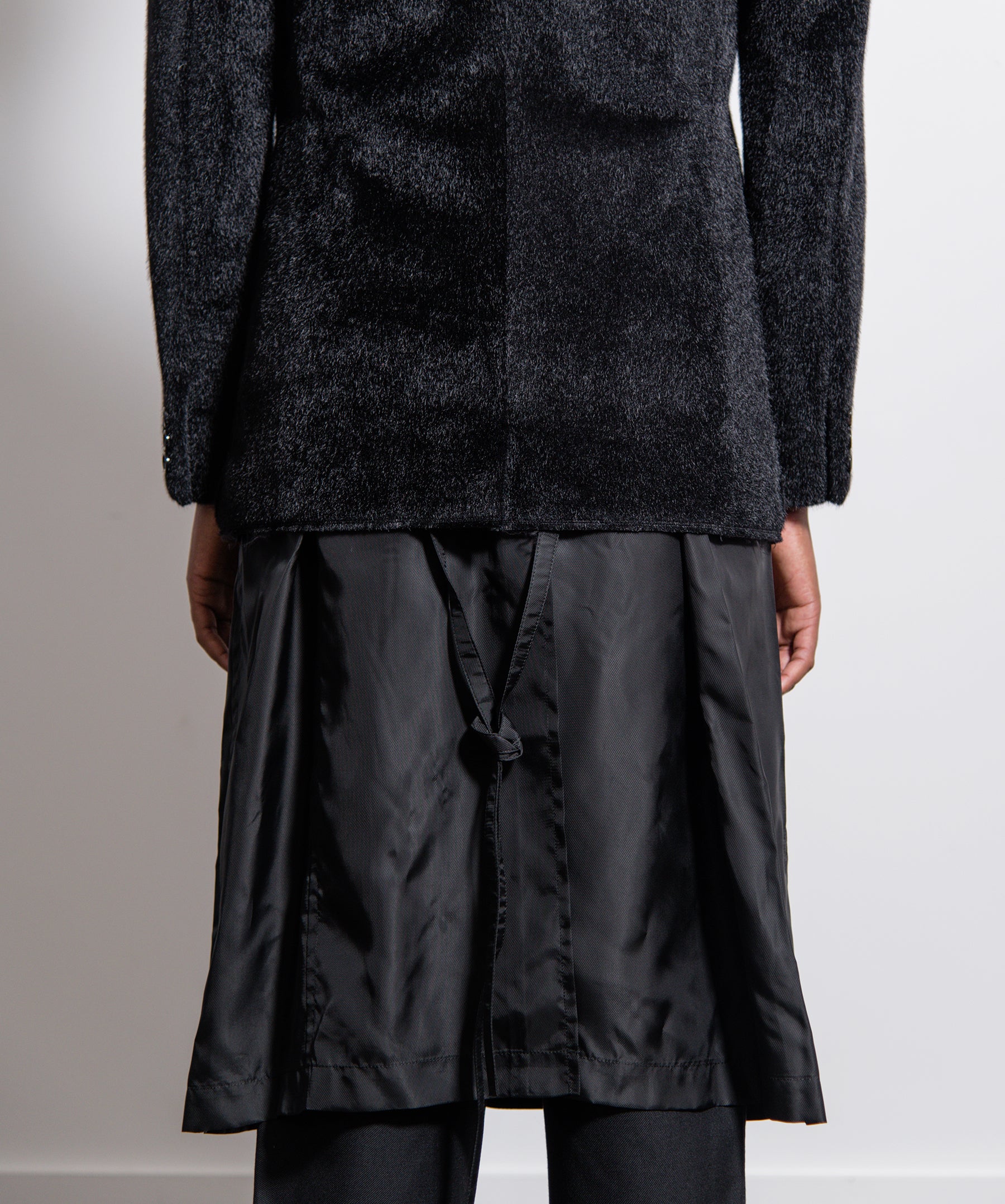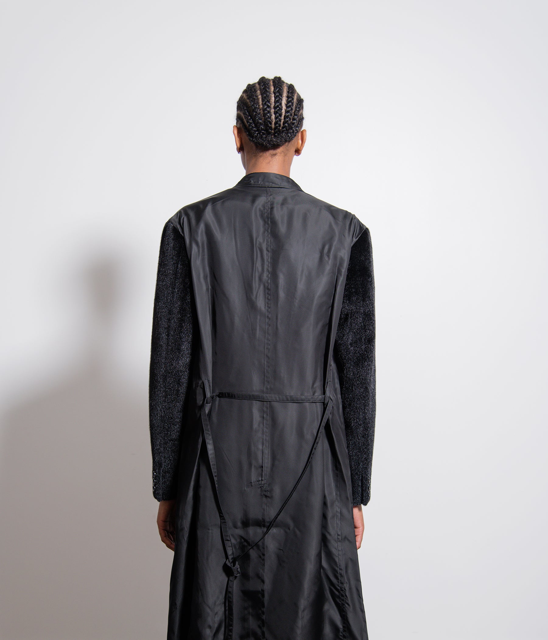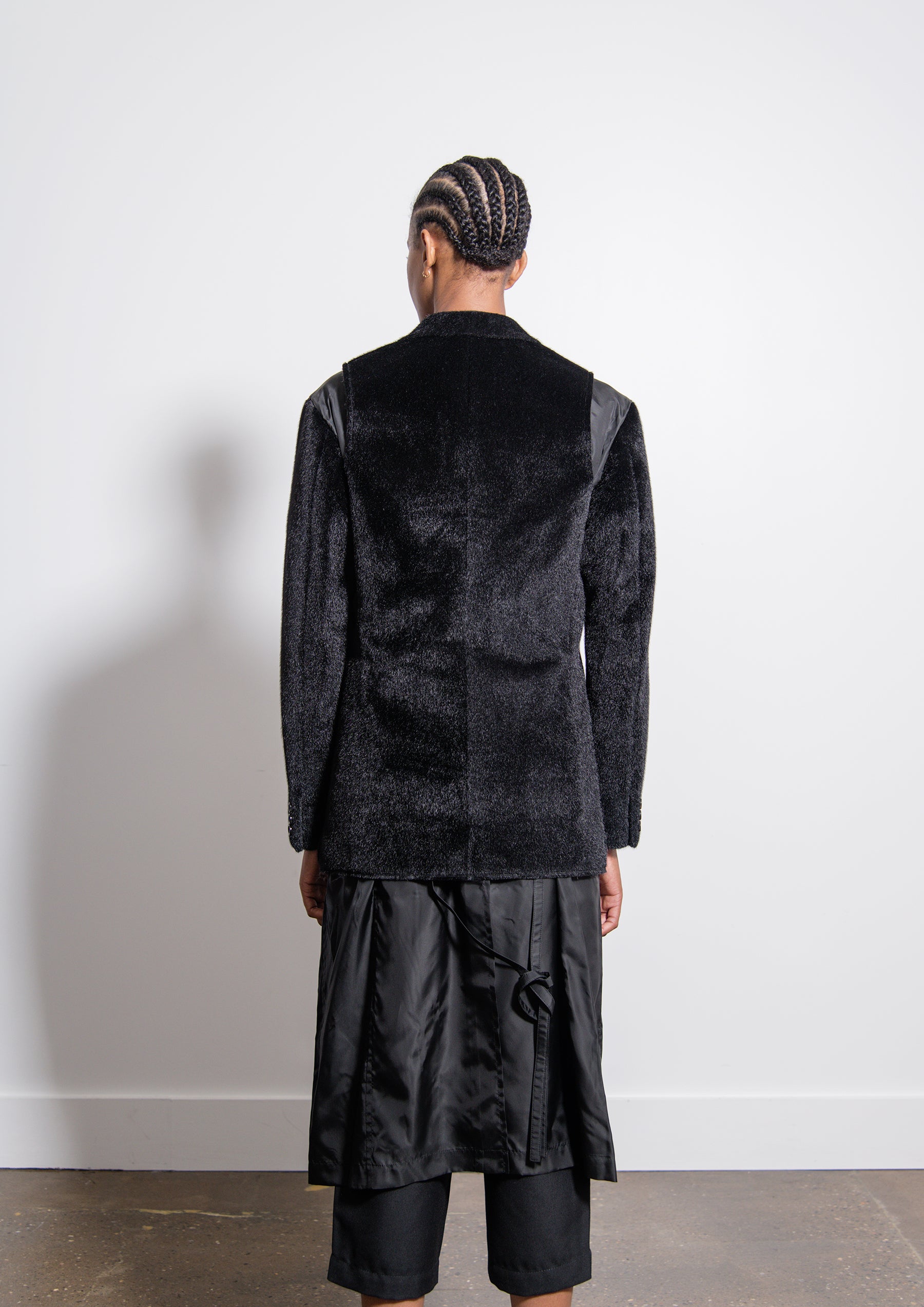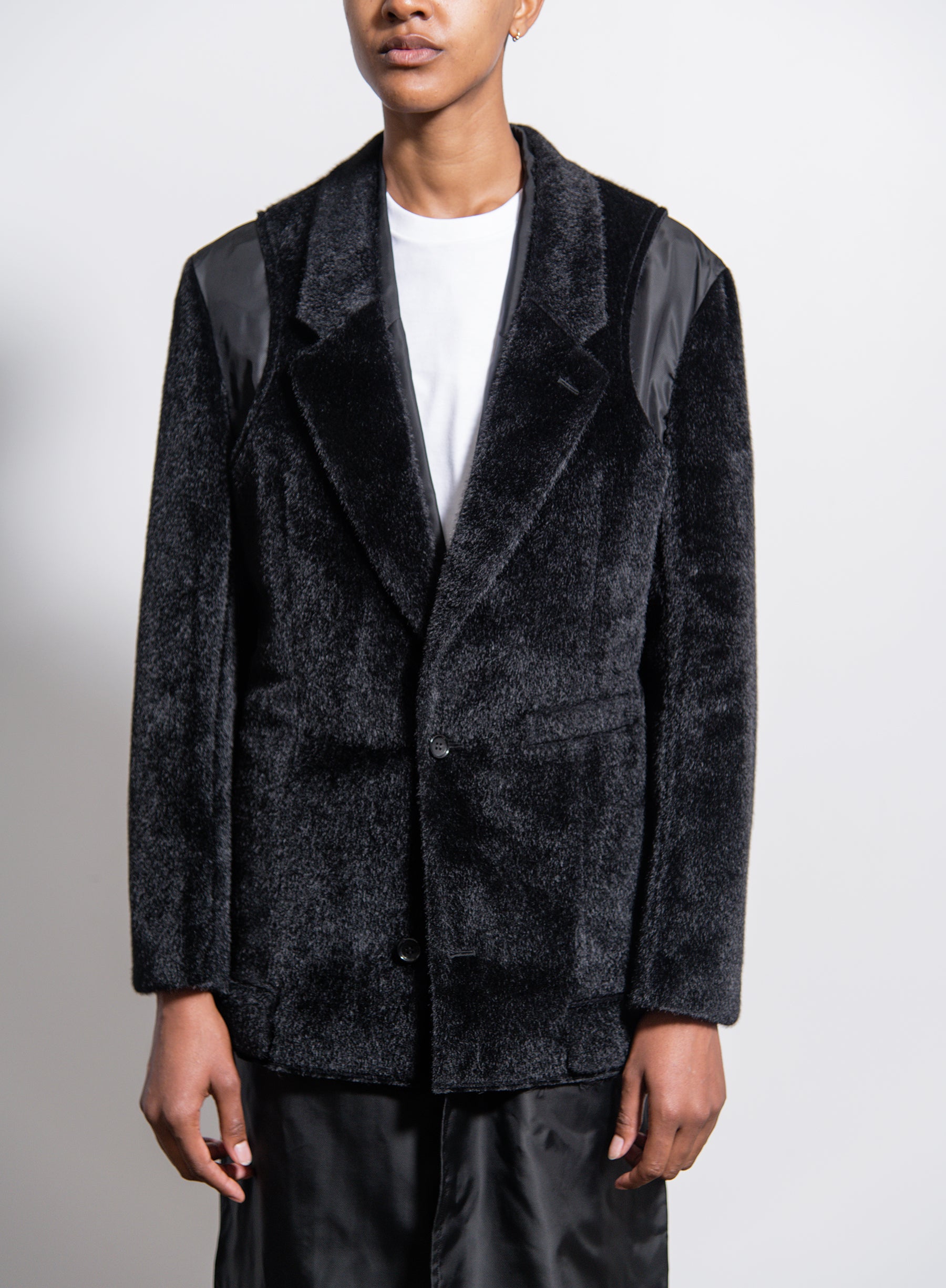 Polyester Nylon Synthetic Fur Cupro Twill Coat Black