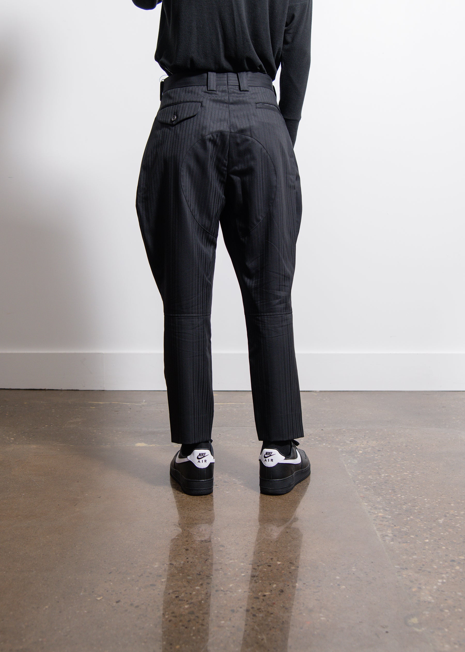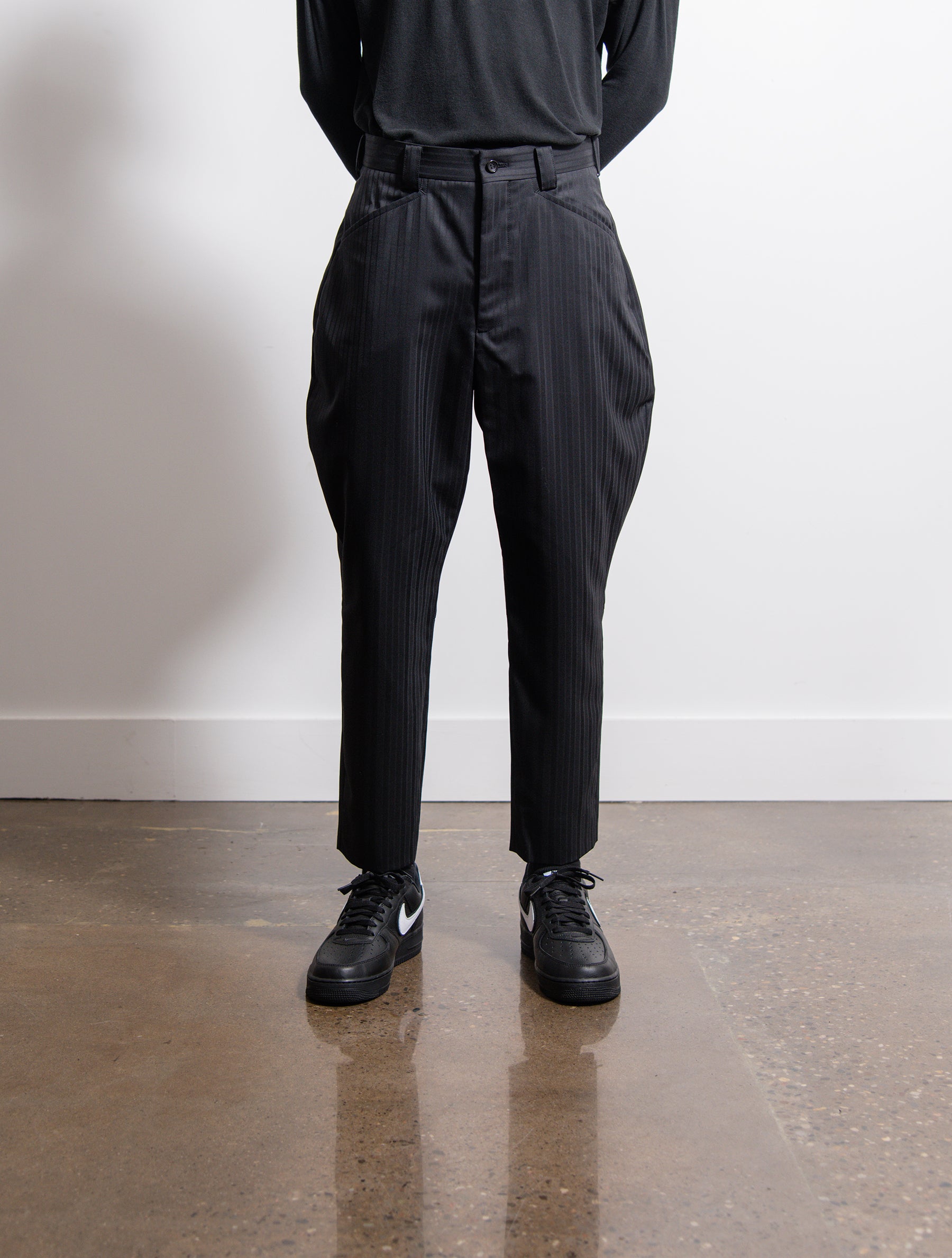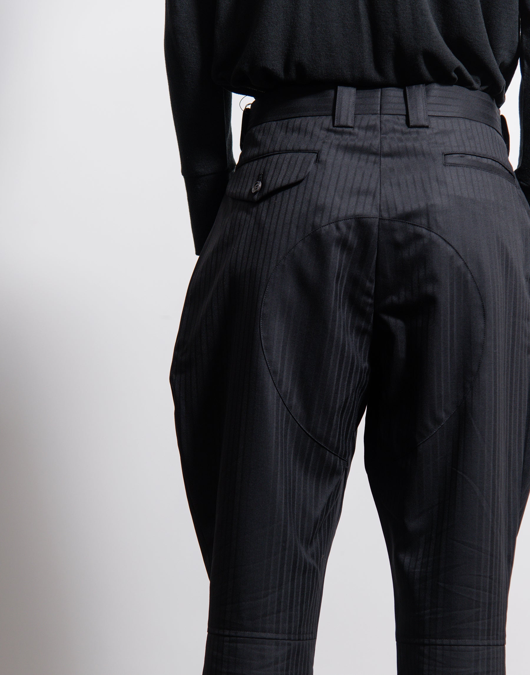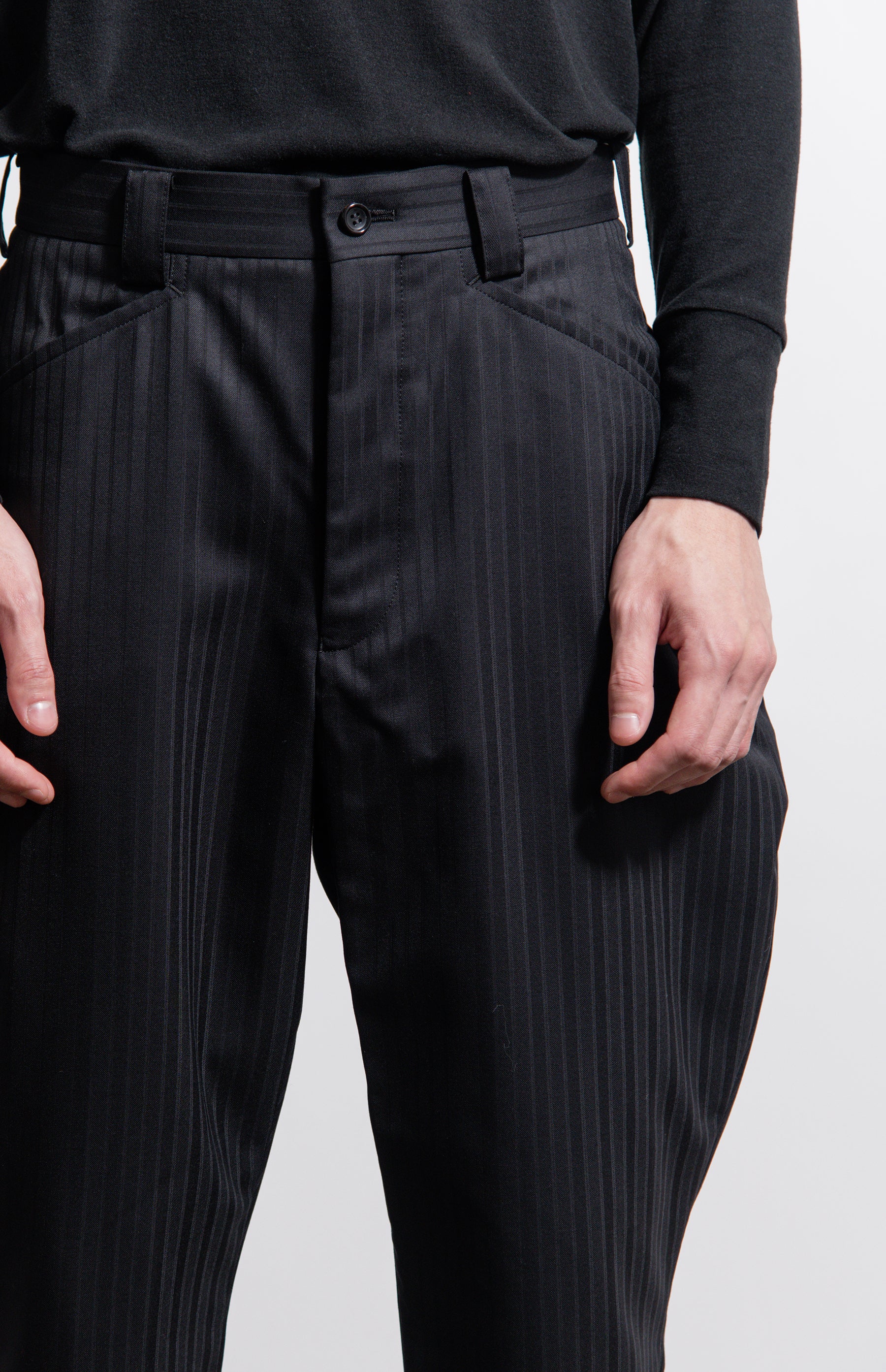 - Full length wool gabardine trouser with dobby shadow stripes throughout in black