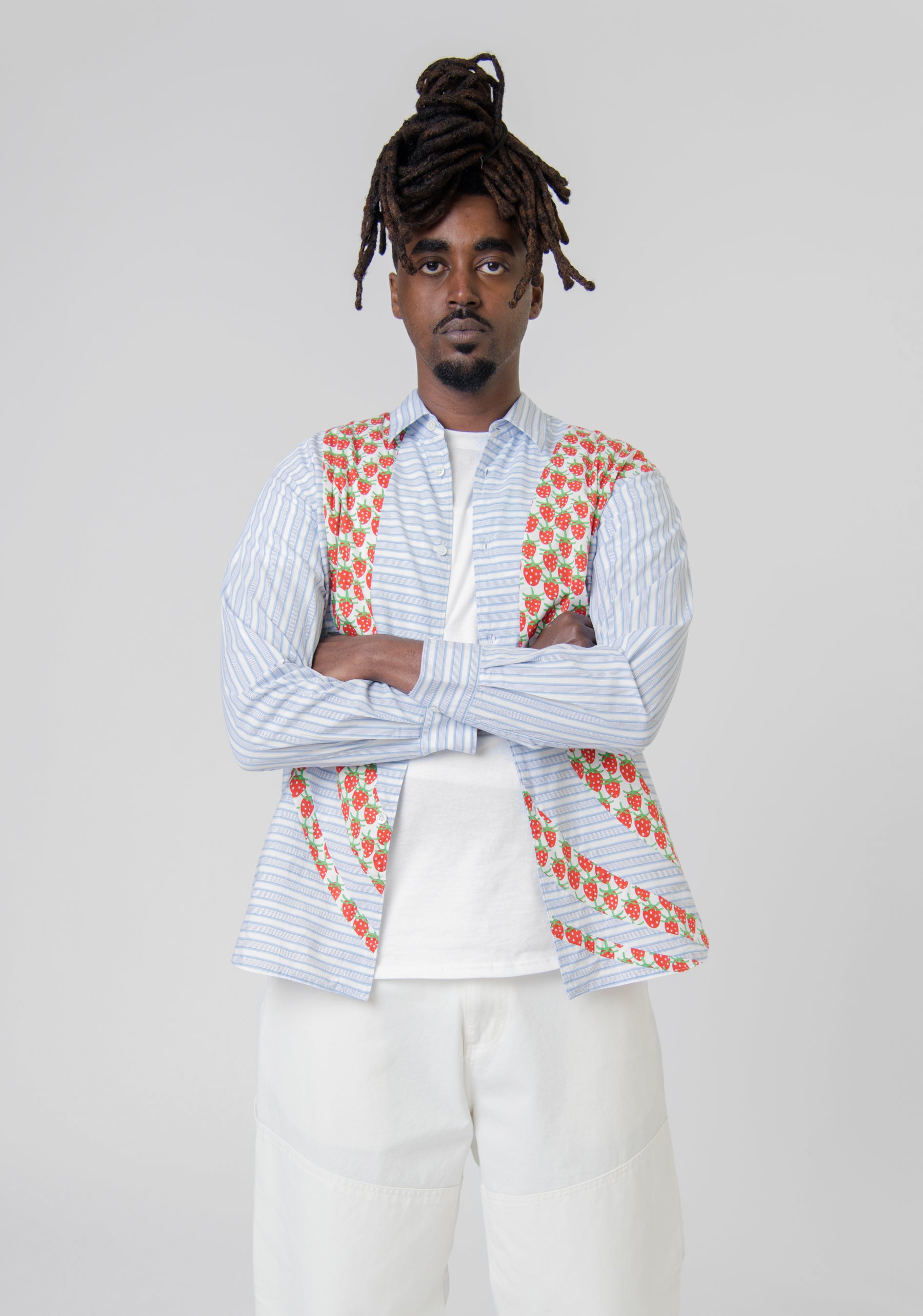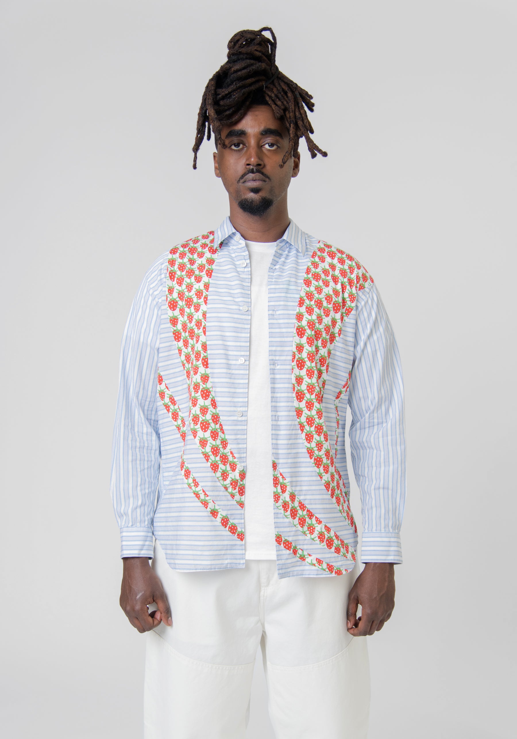 Strawberry Print Striped Shirt Multicolour FK-B001
