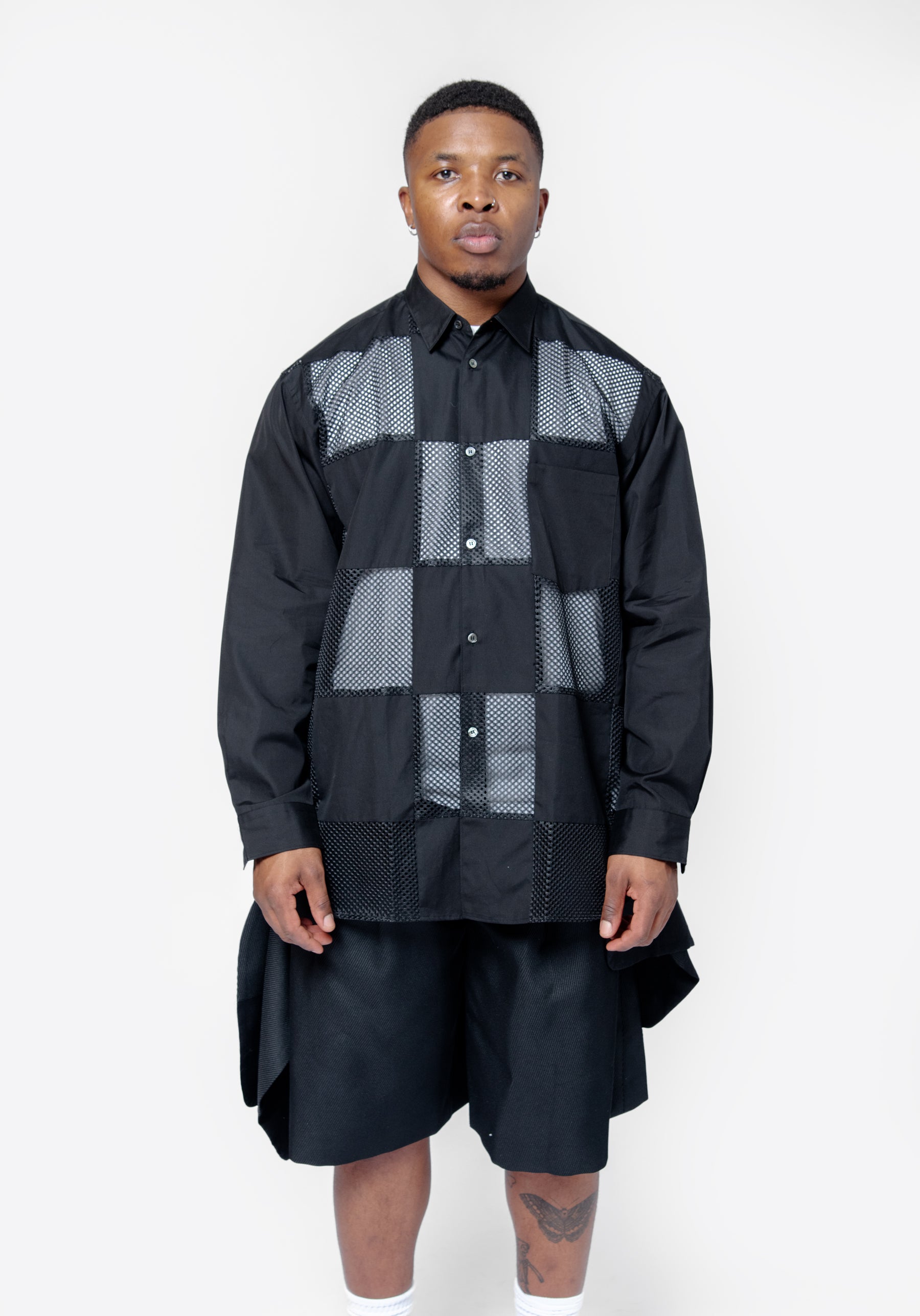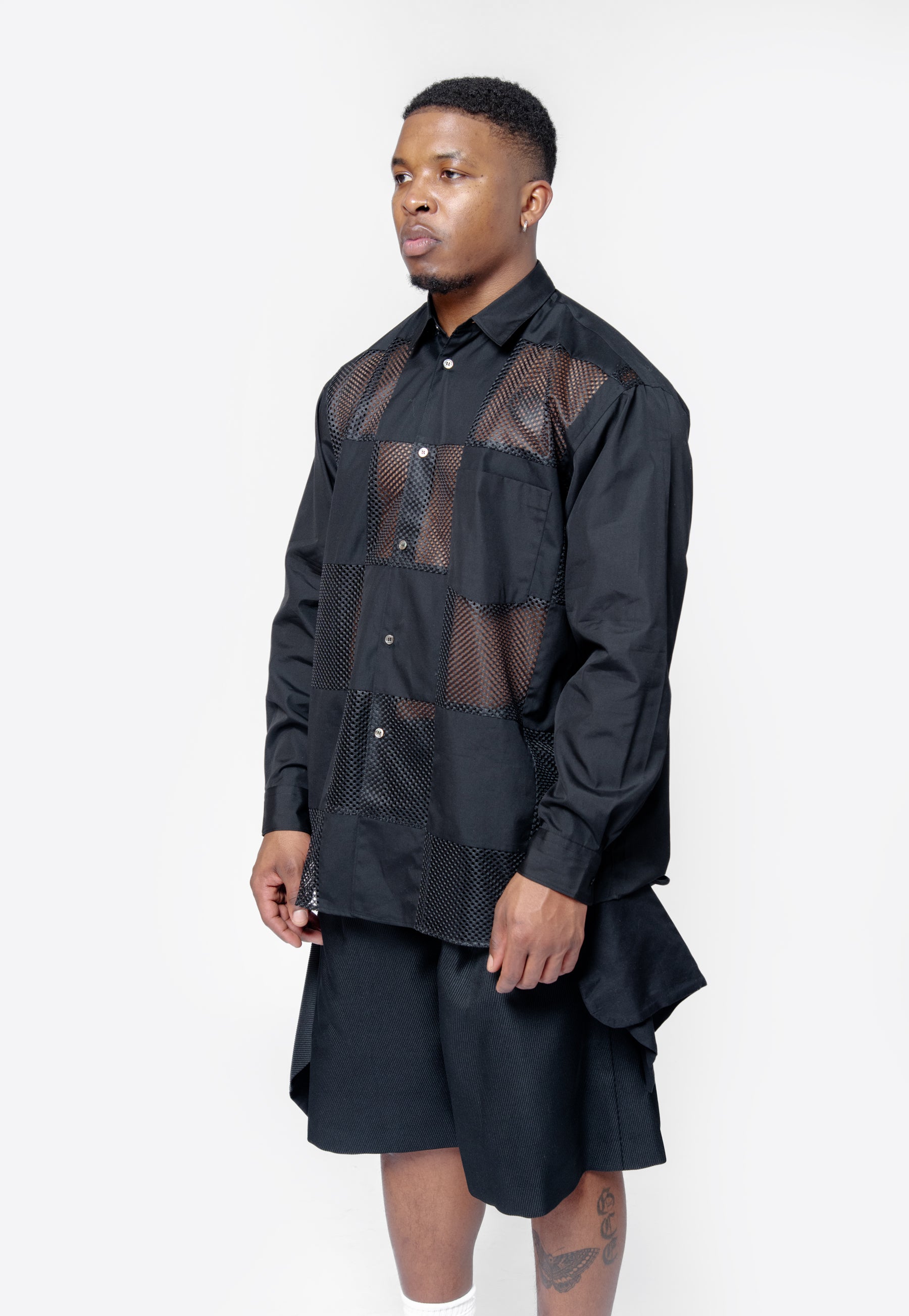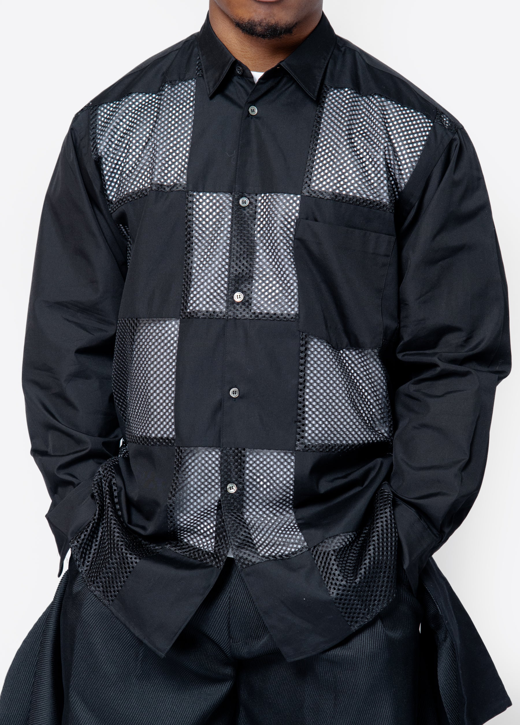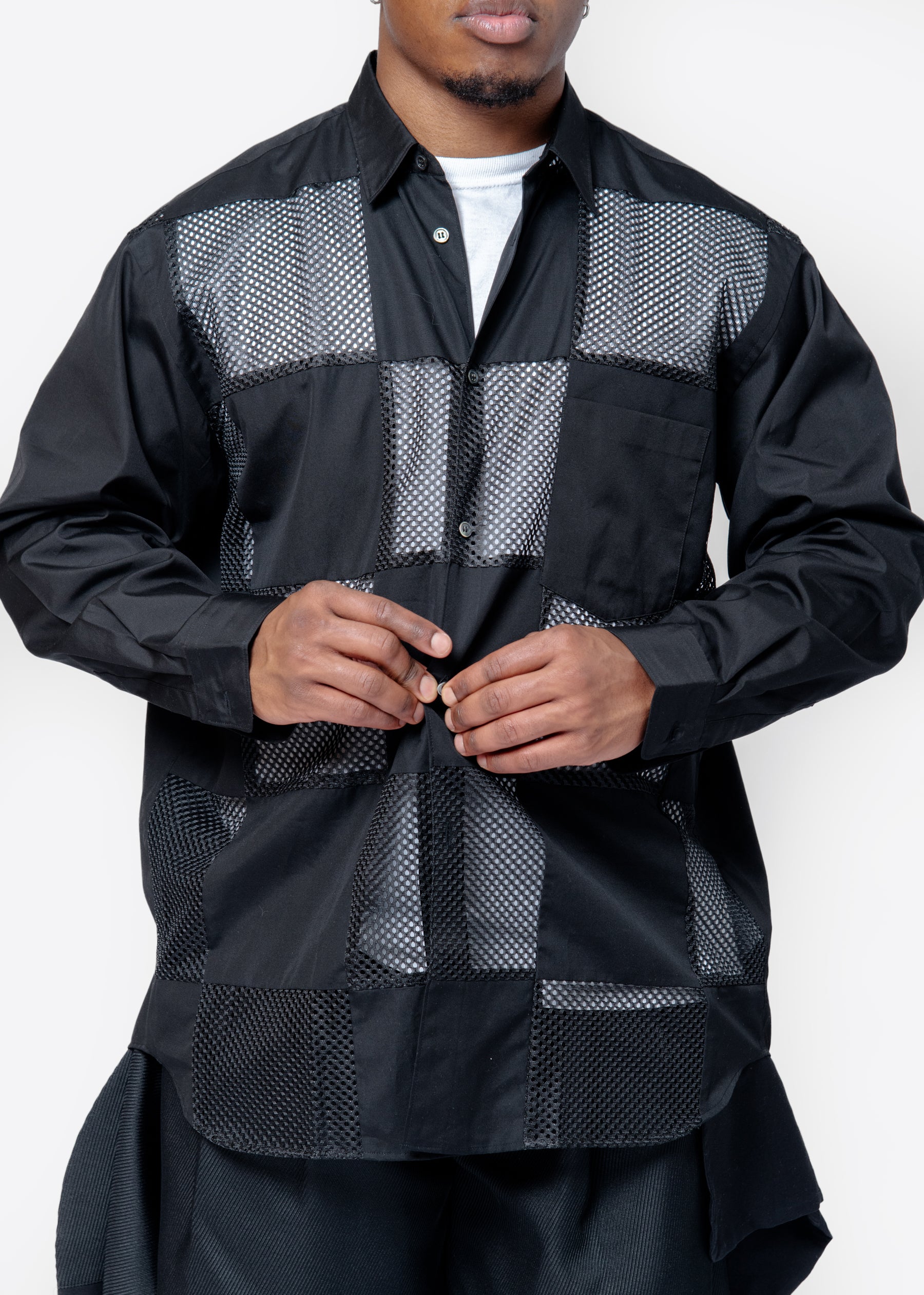 Checkered Mesh Long Sleeve Button-Up Shirt PO-B001-051