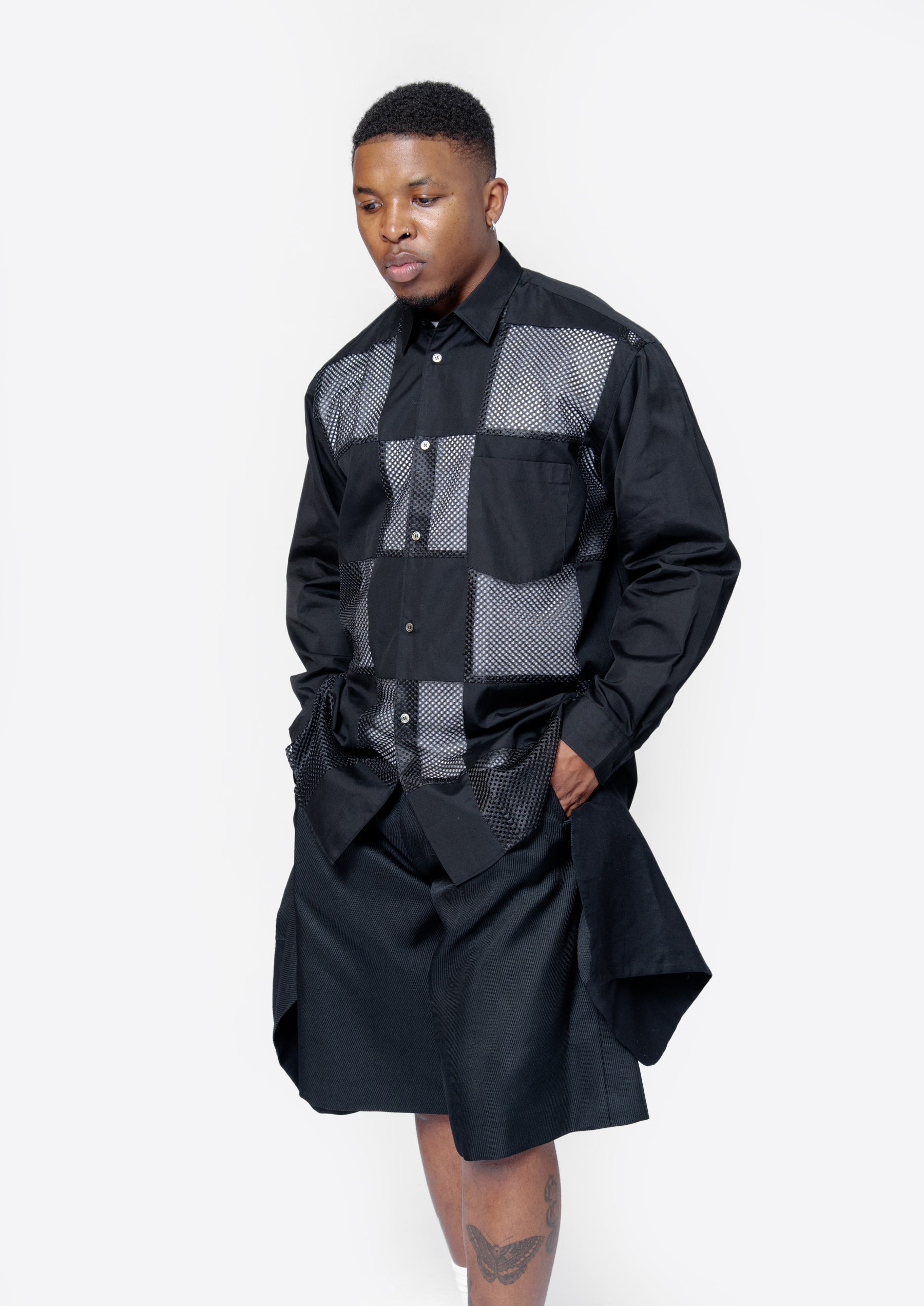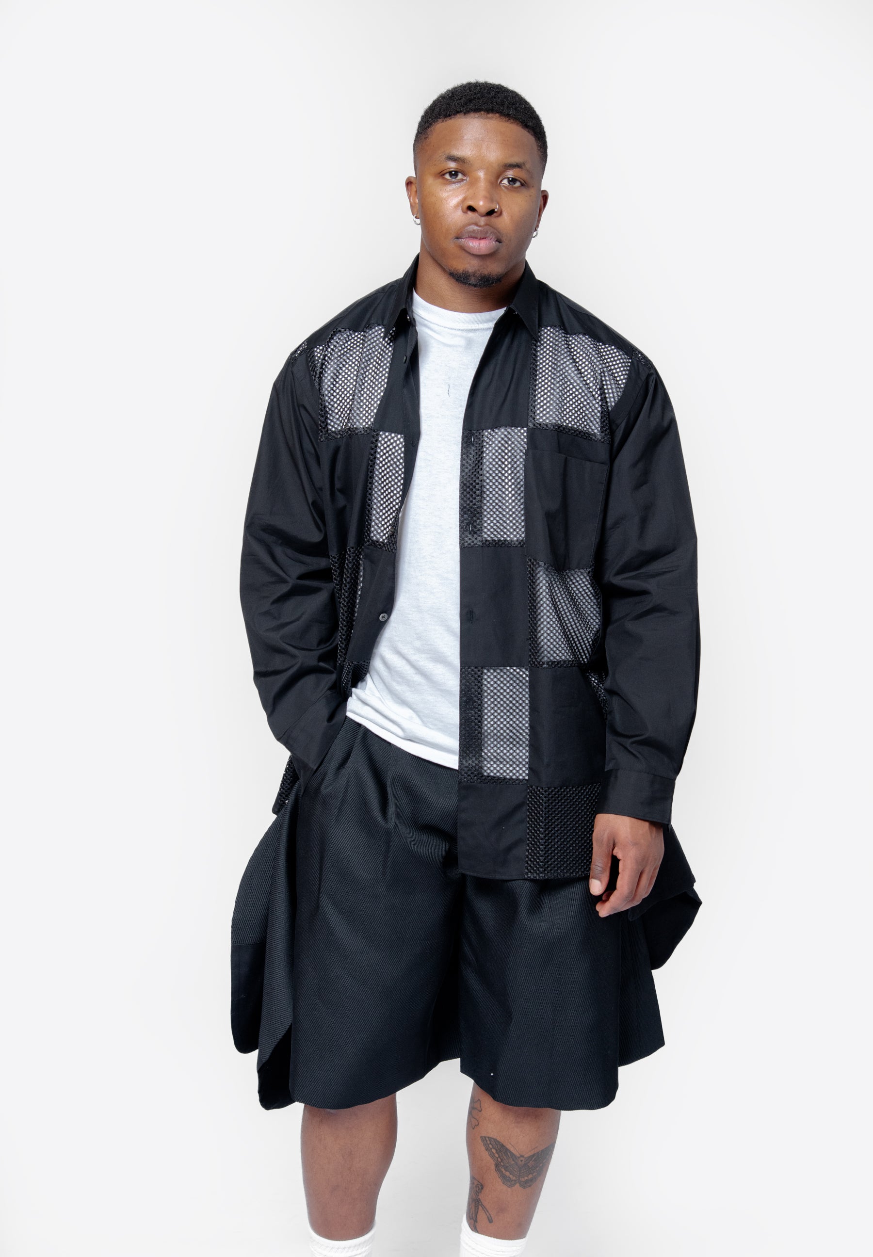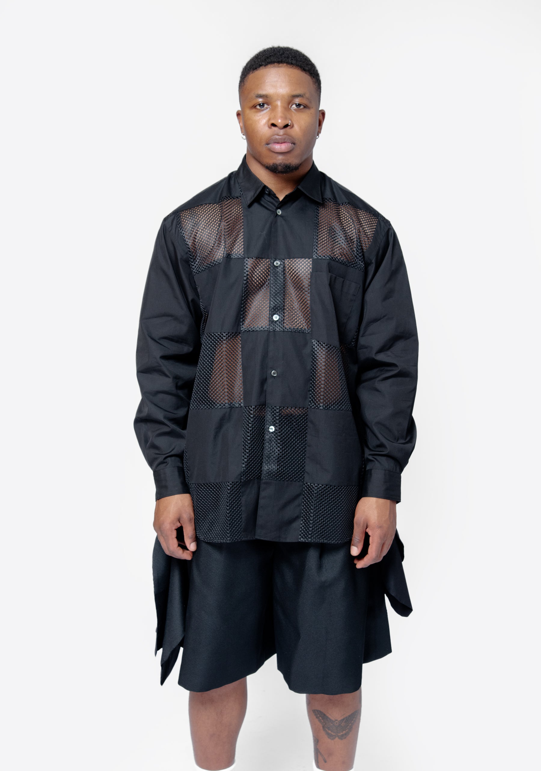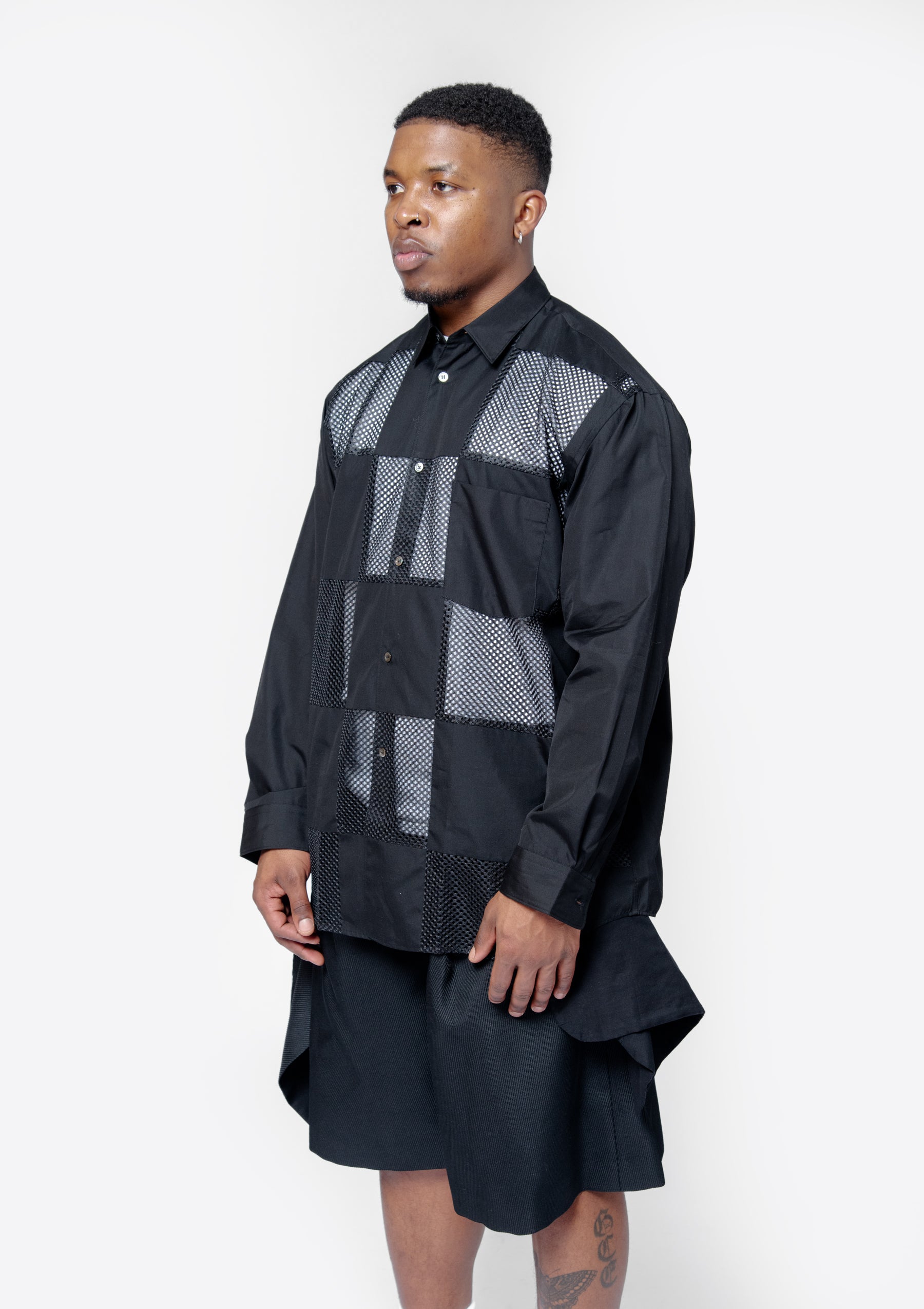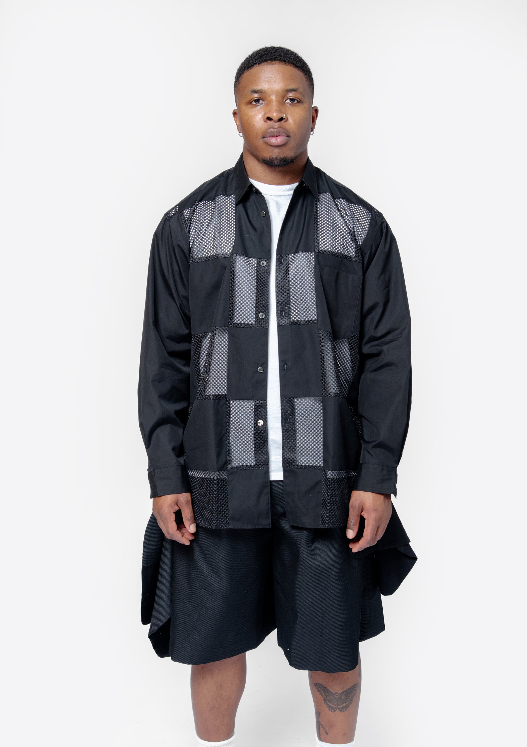 Checkered Mesh Long Sleeve Button-Up Shirt PO-B001-051