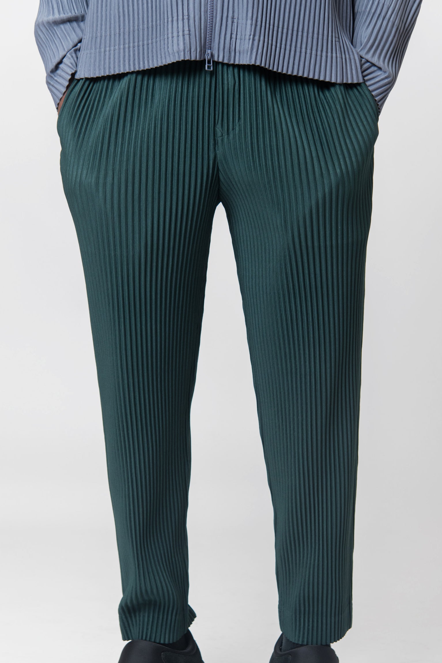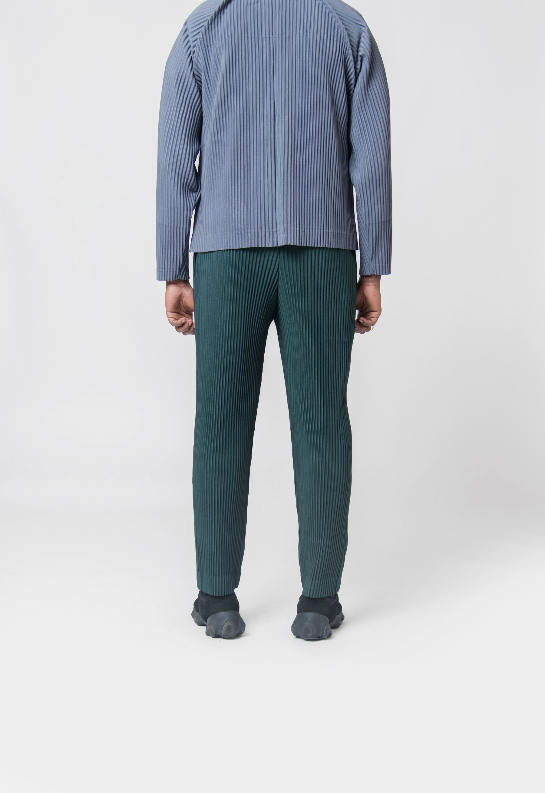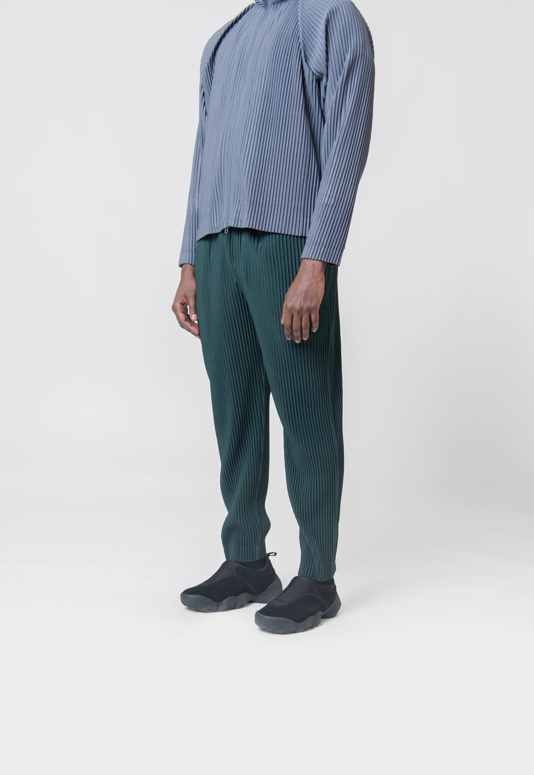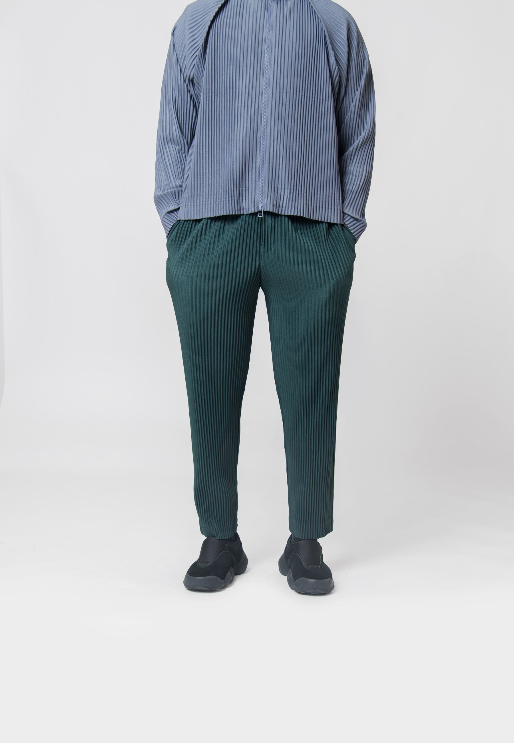 - Homme Plisse full-length colour pleated trousers in Deep Green