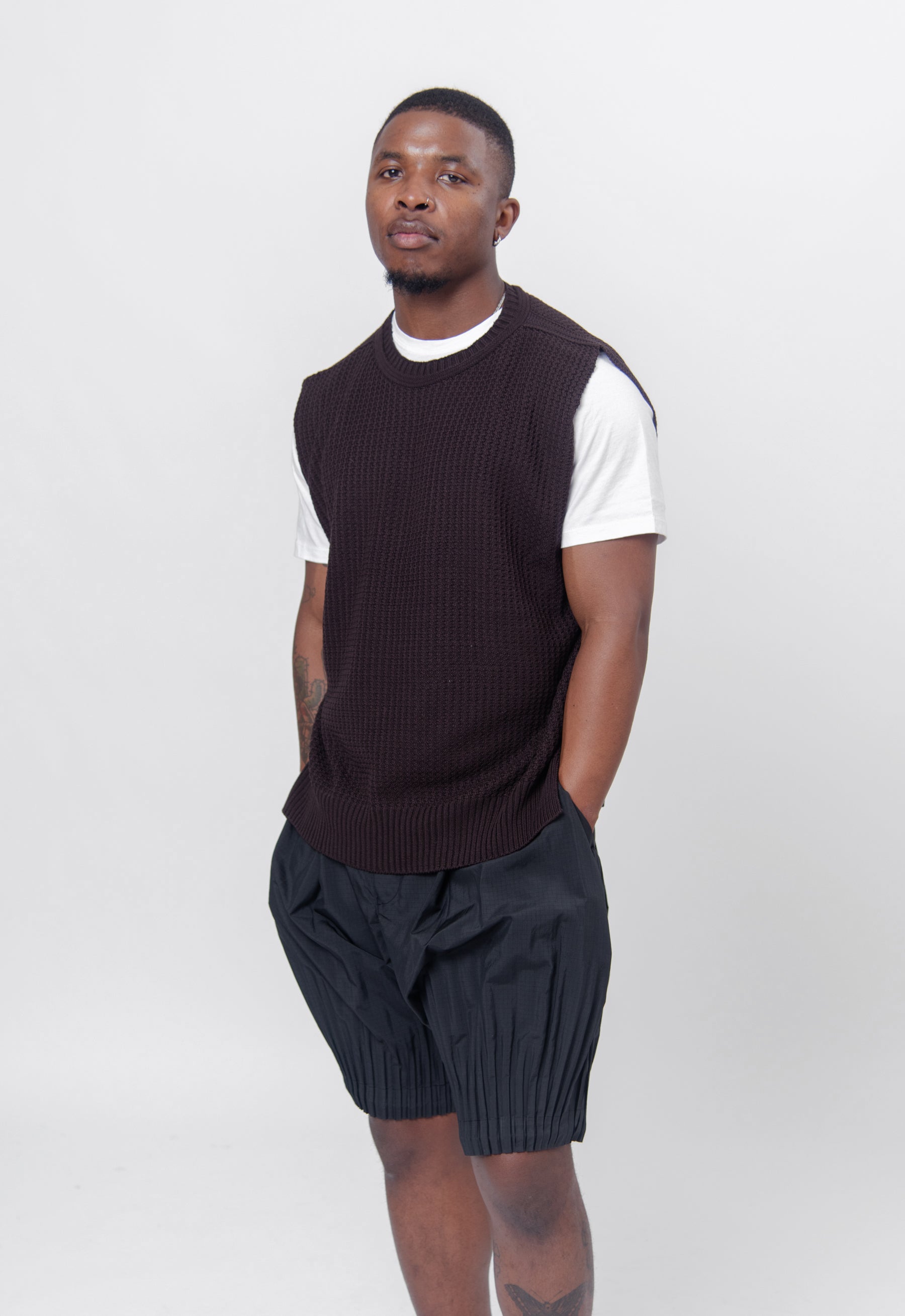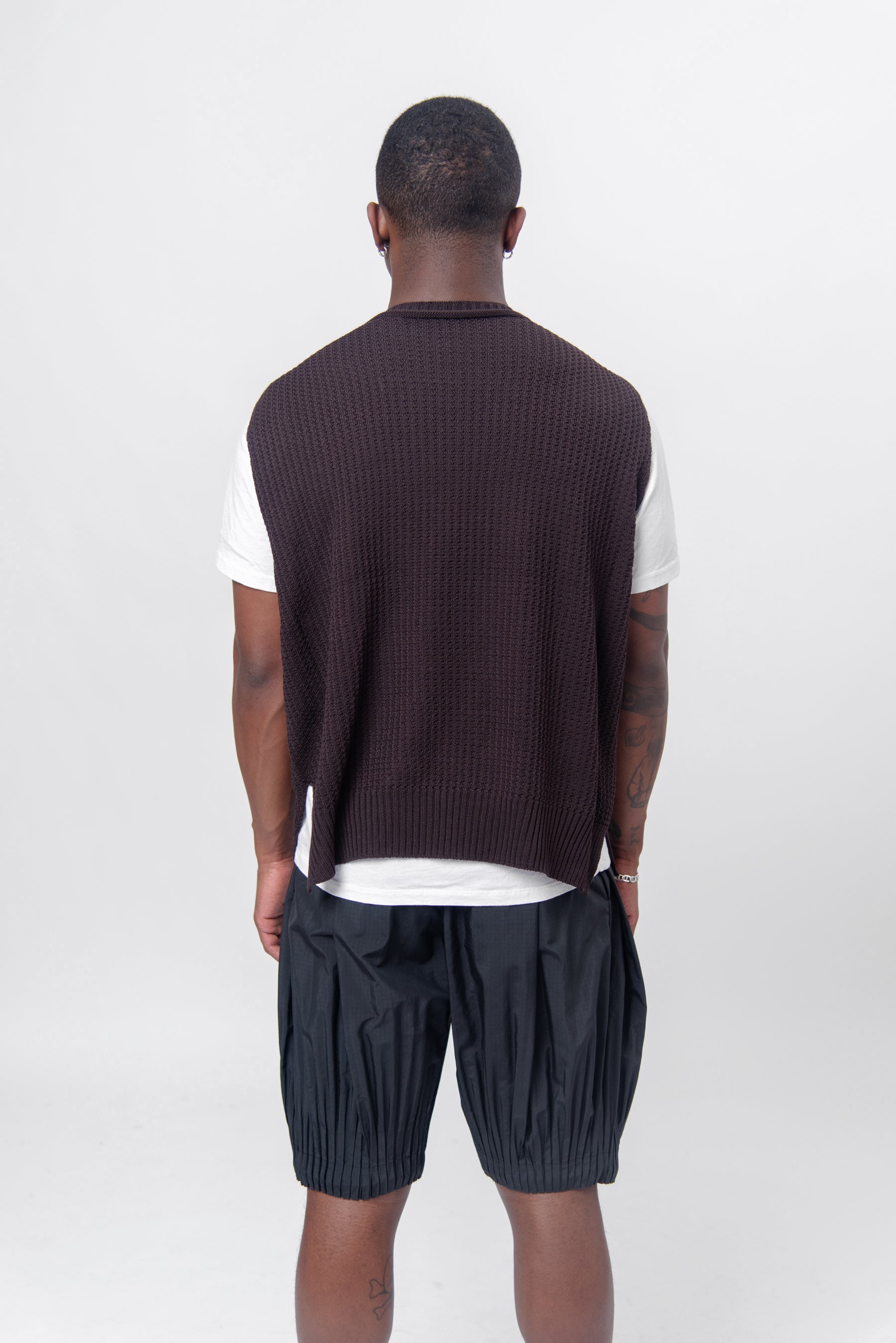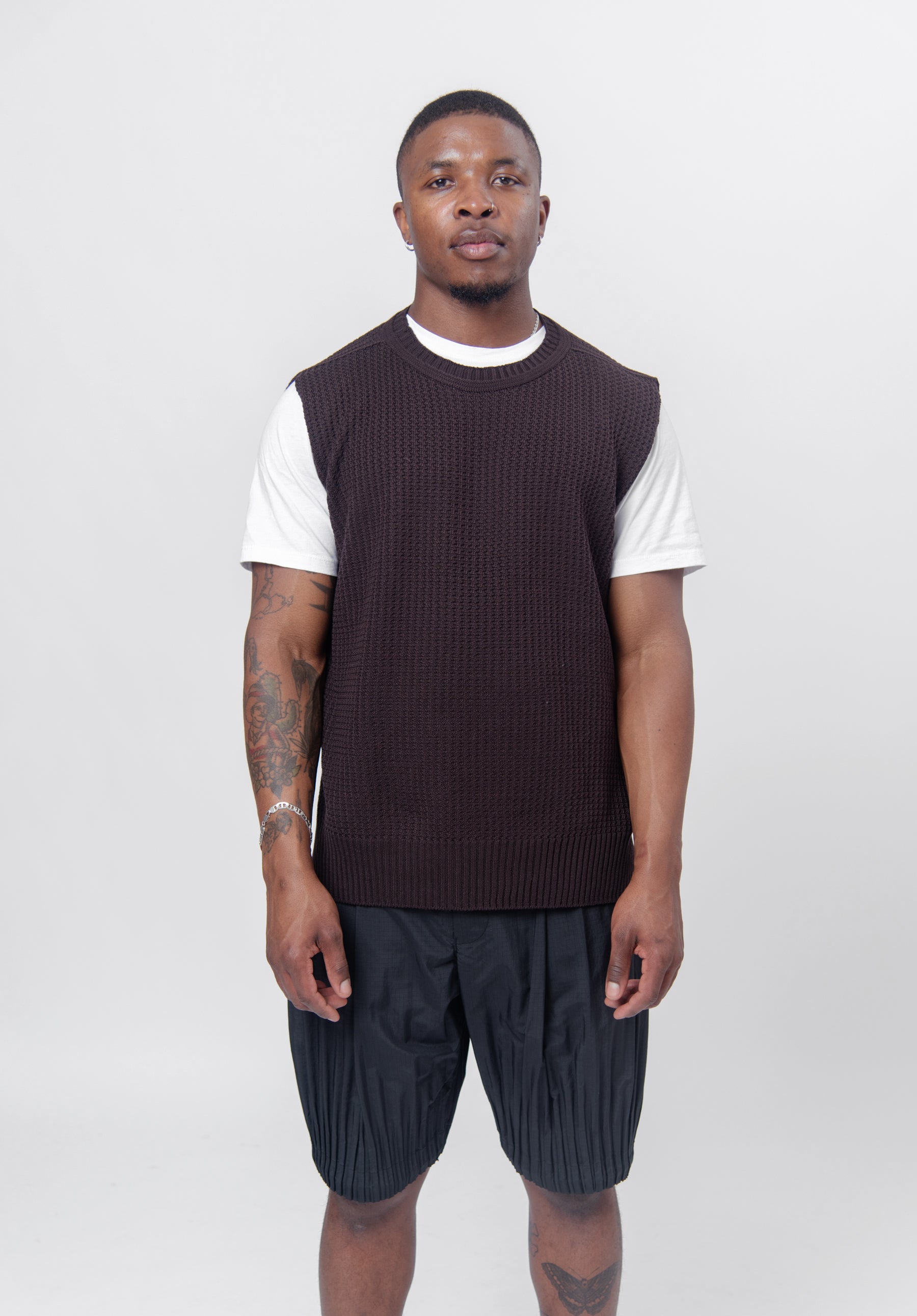 - Homme Plissé Issey Miyake sleeveless reversible common knit vest in Brown