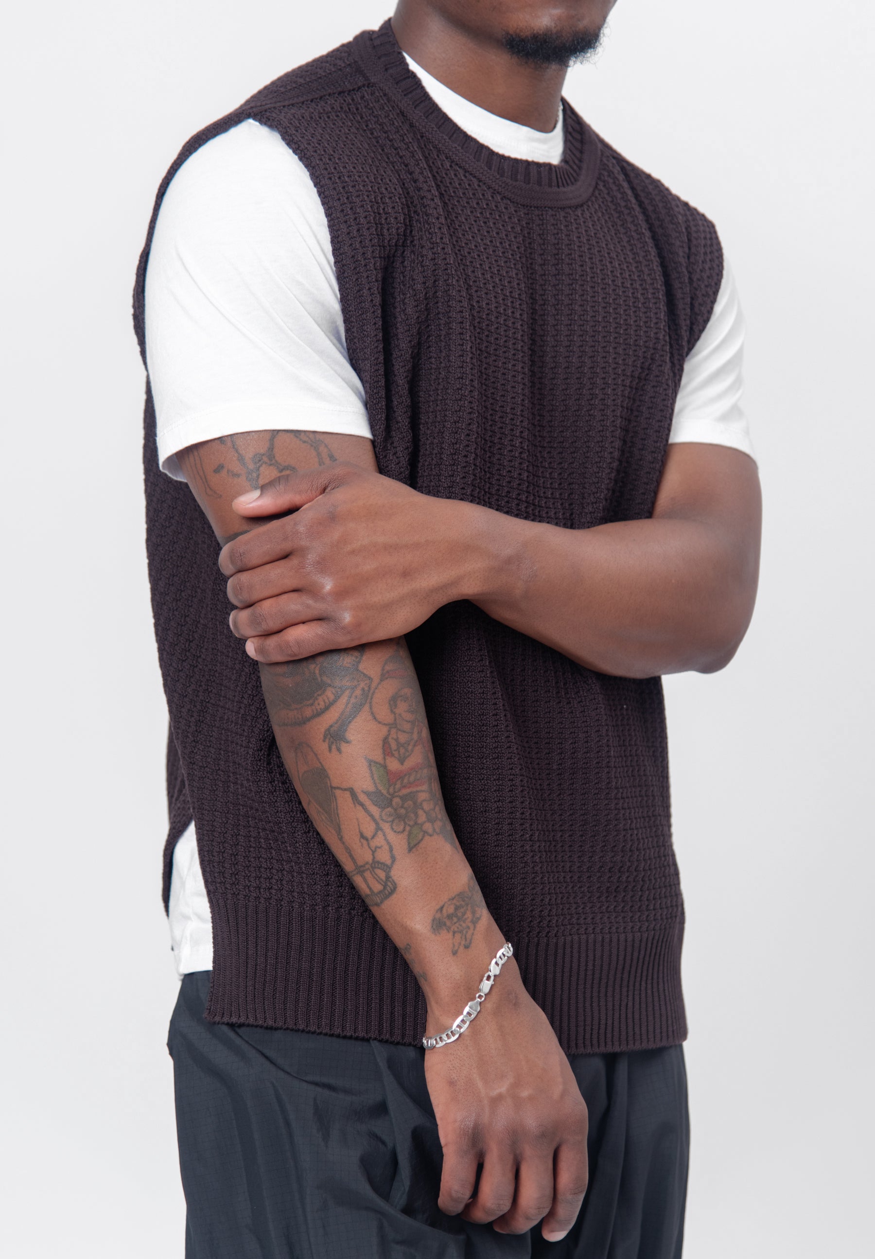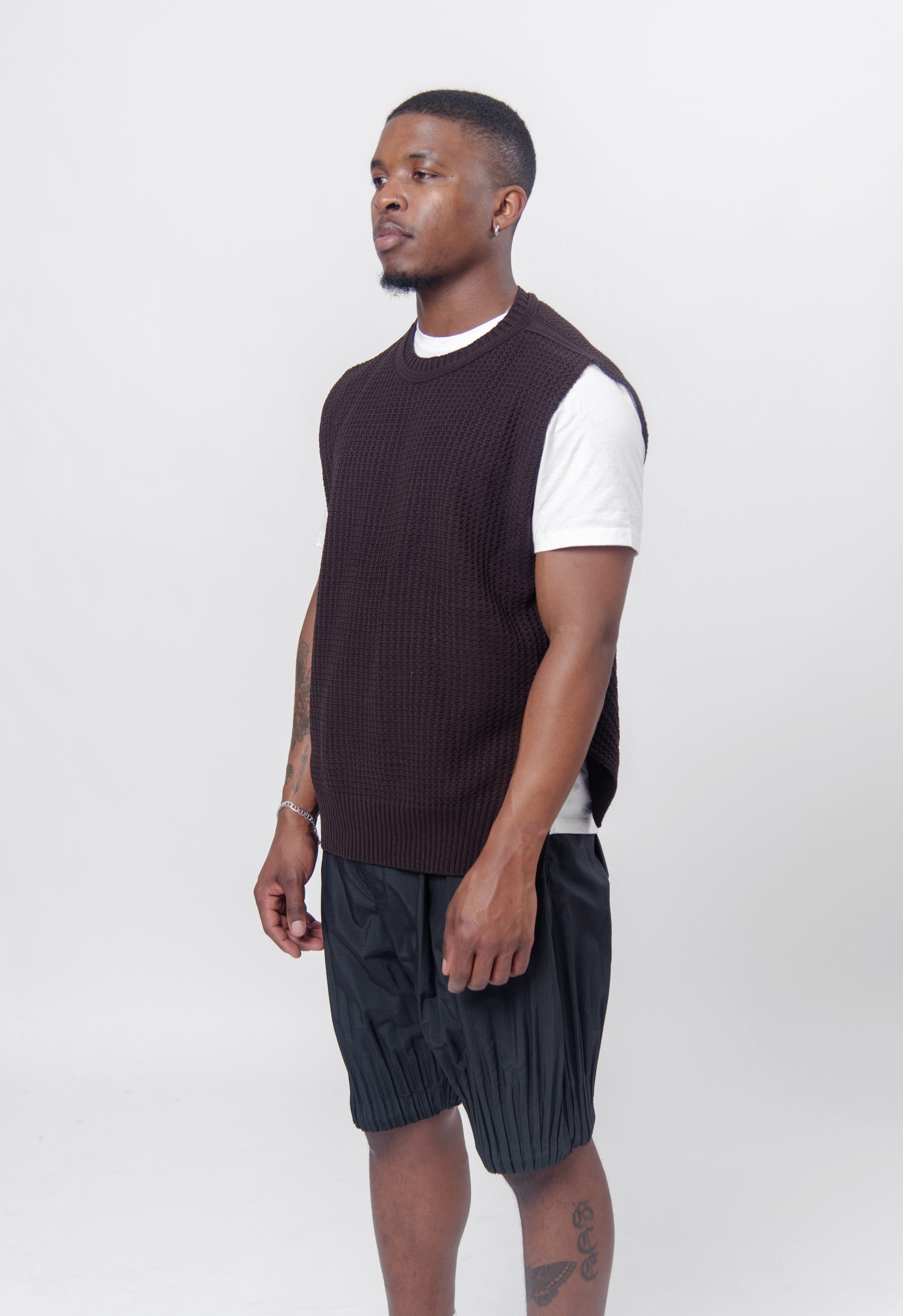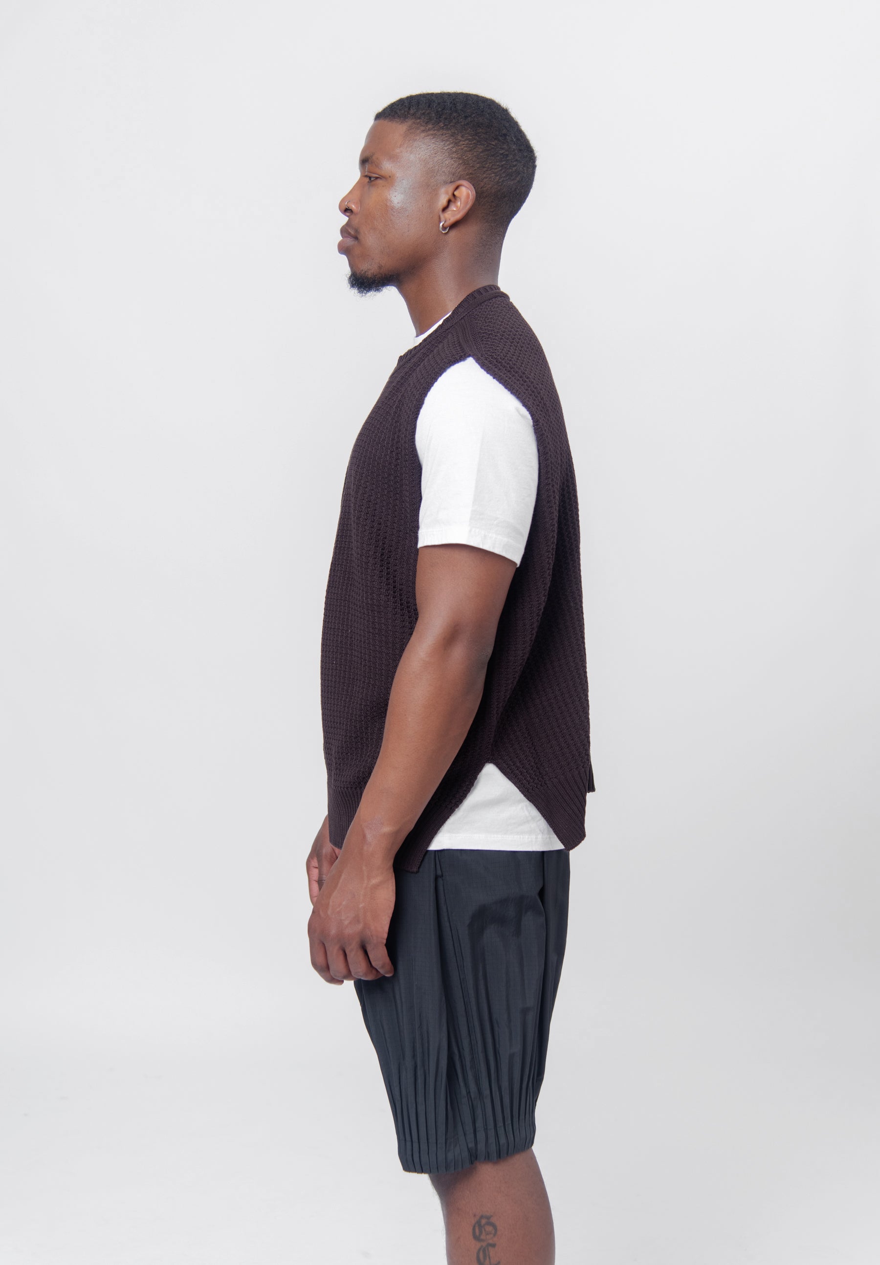 - Homme Plissé Issey Miyake sleeveless reversible common knit vest in Brown
