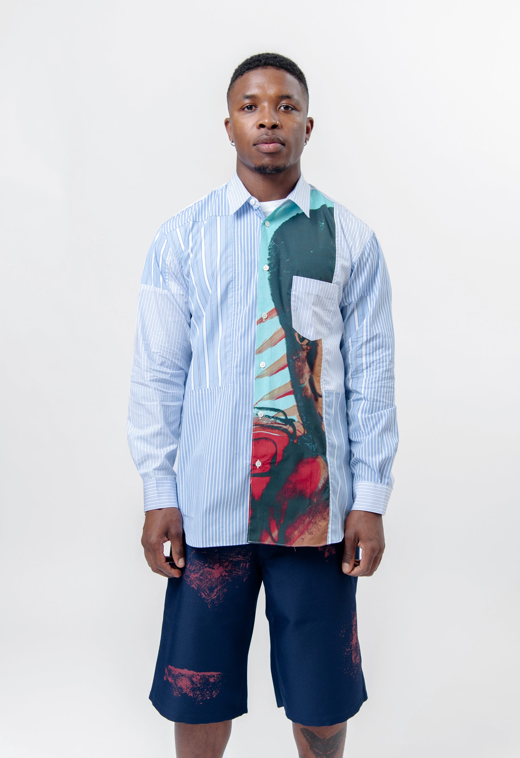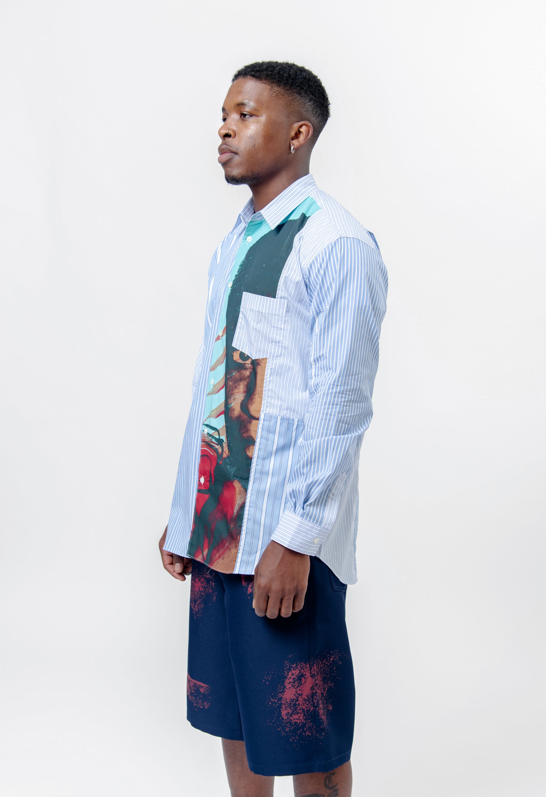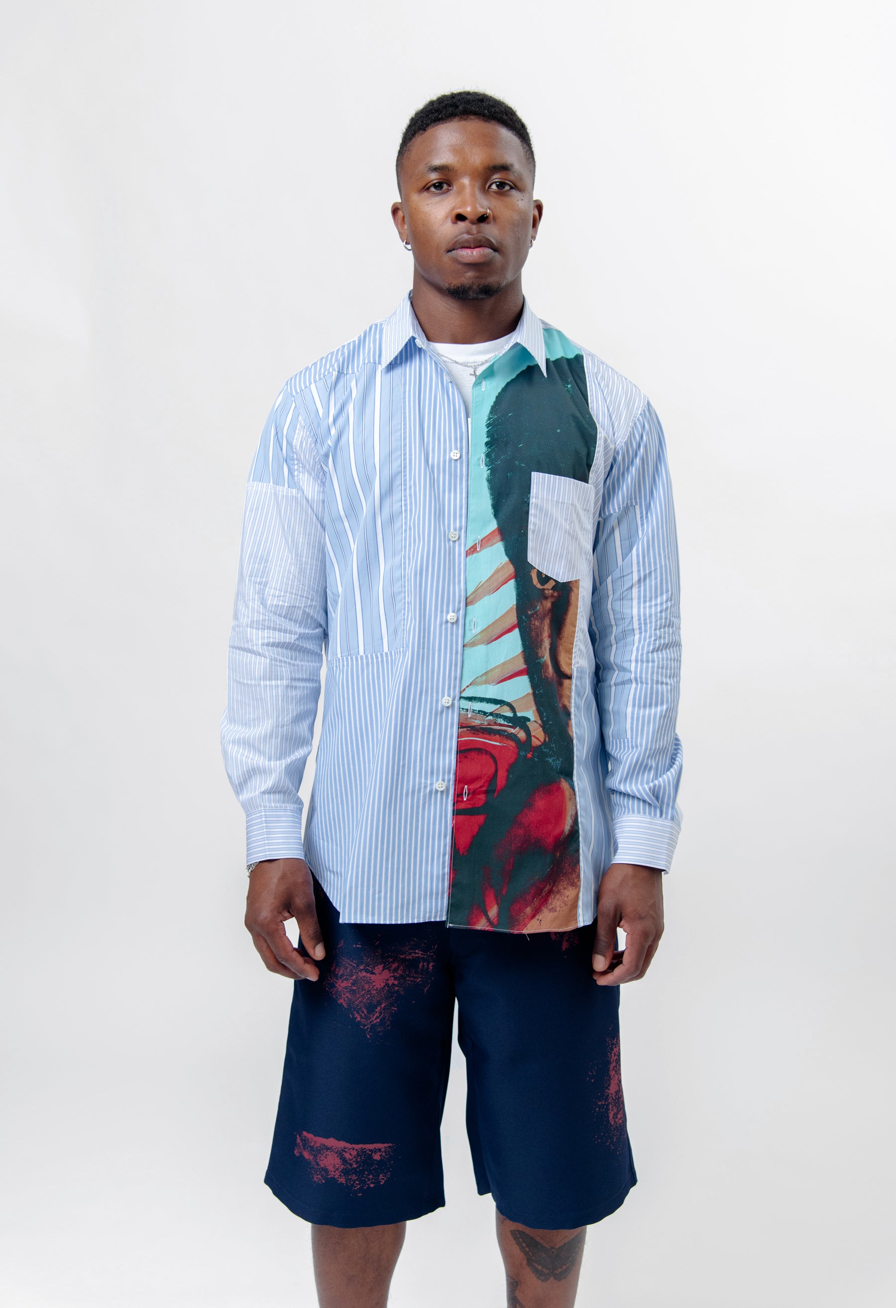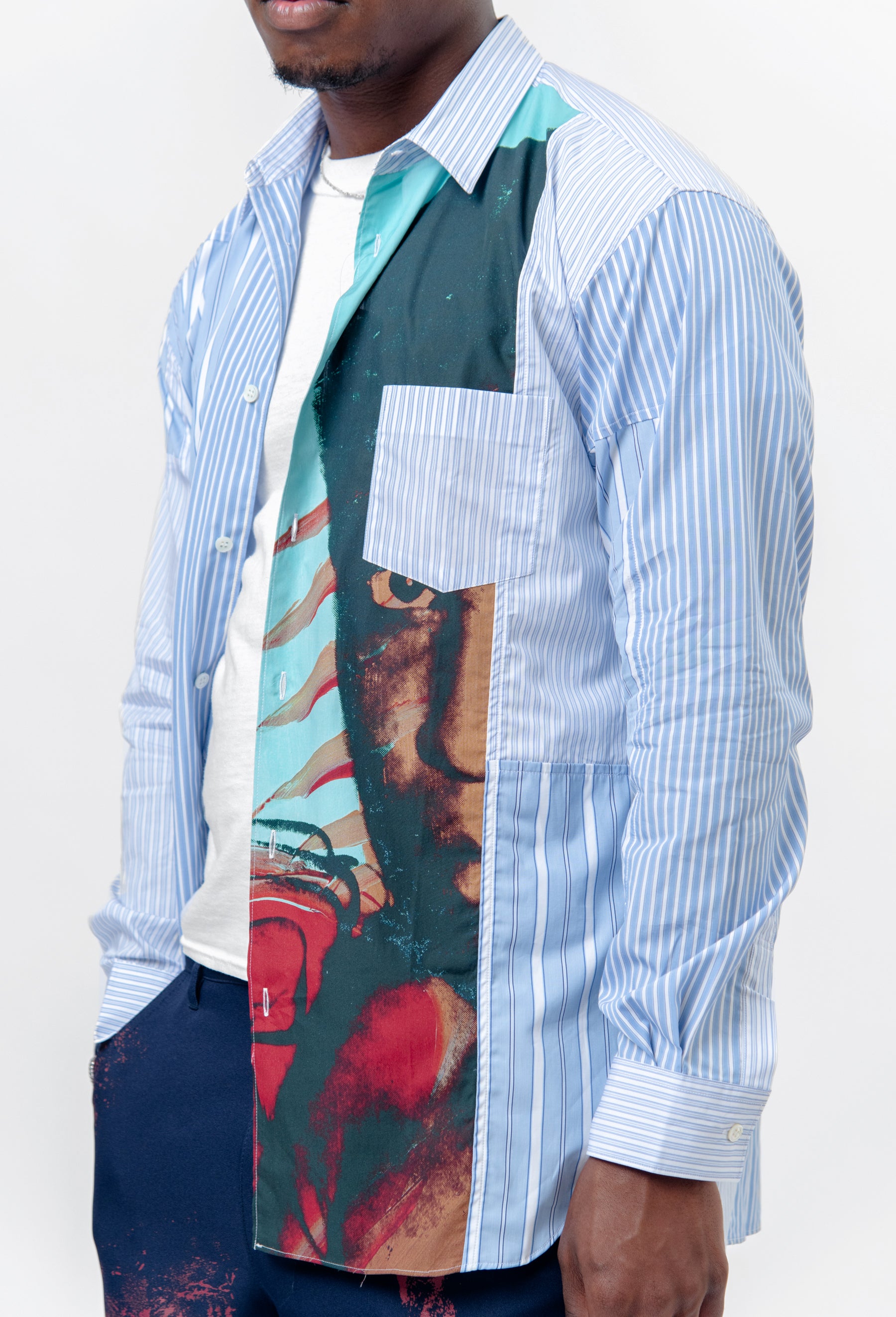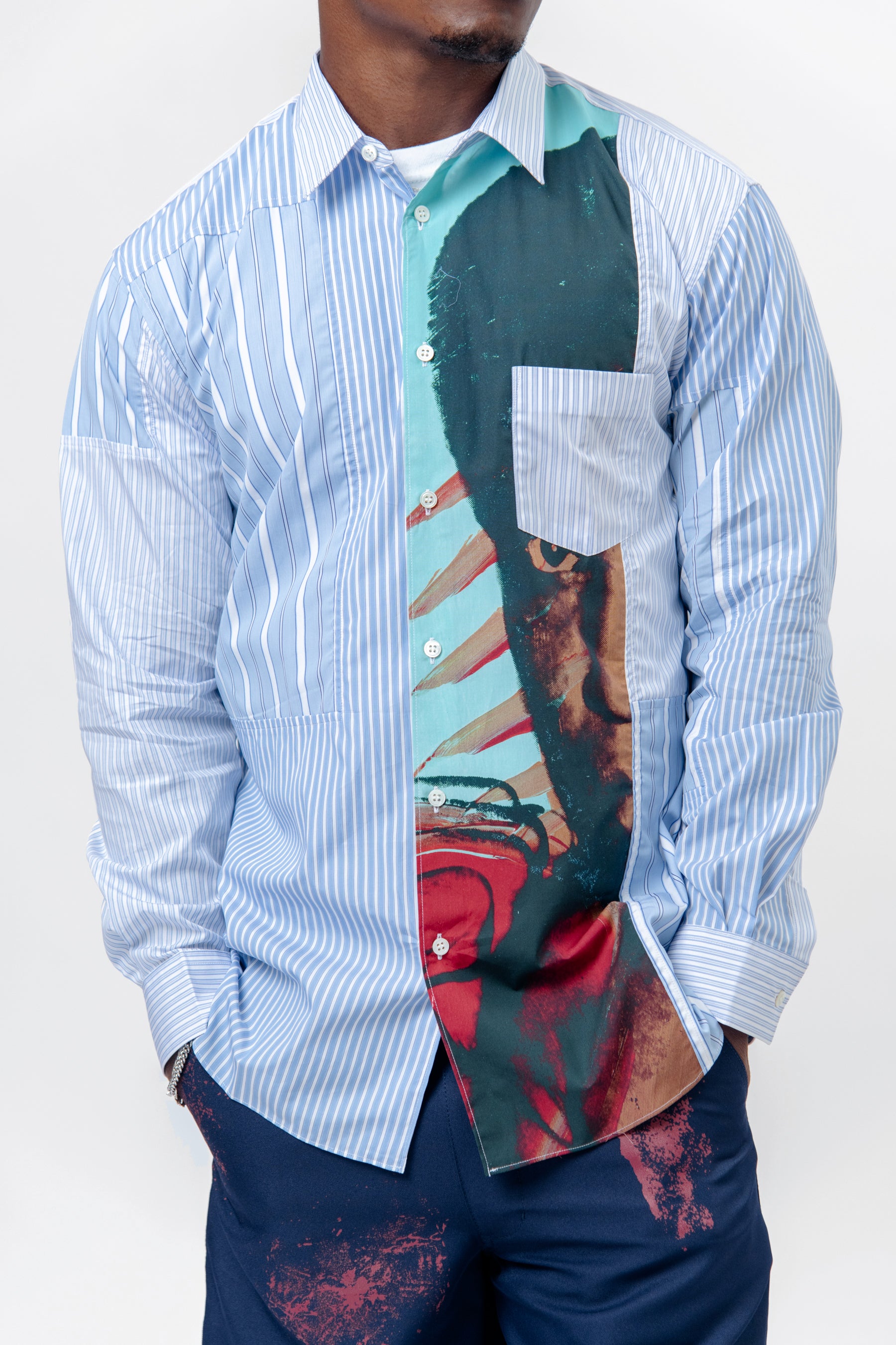 Stripe Poplin Print Andy Warhol 1 Long Sleeve Button-Up Shirt FM-B017-S24-1