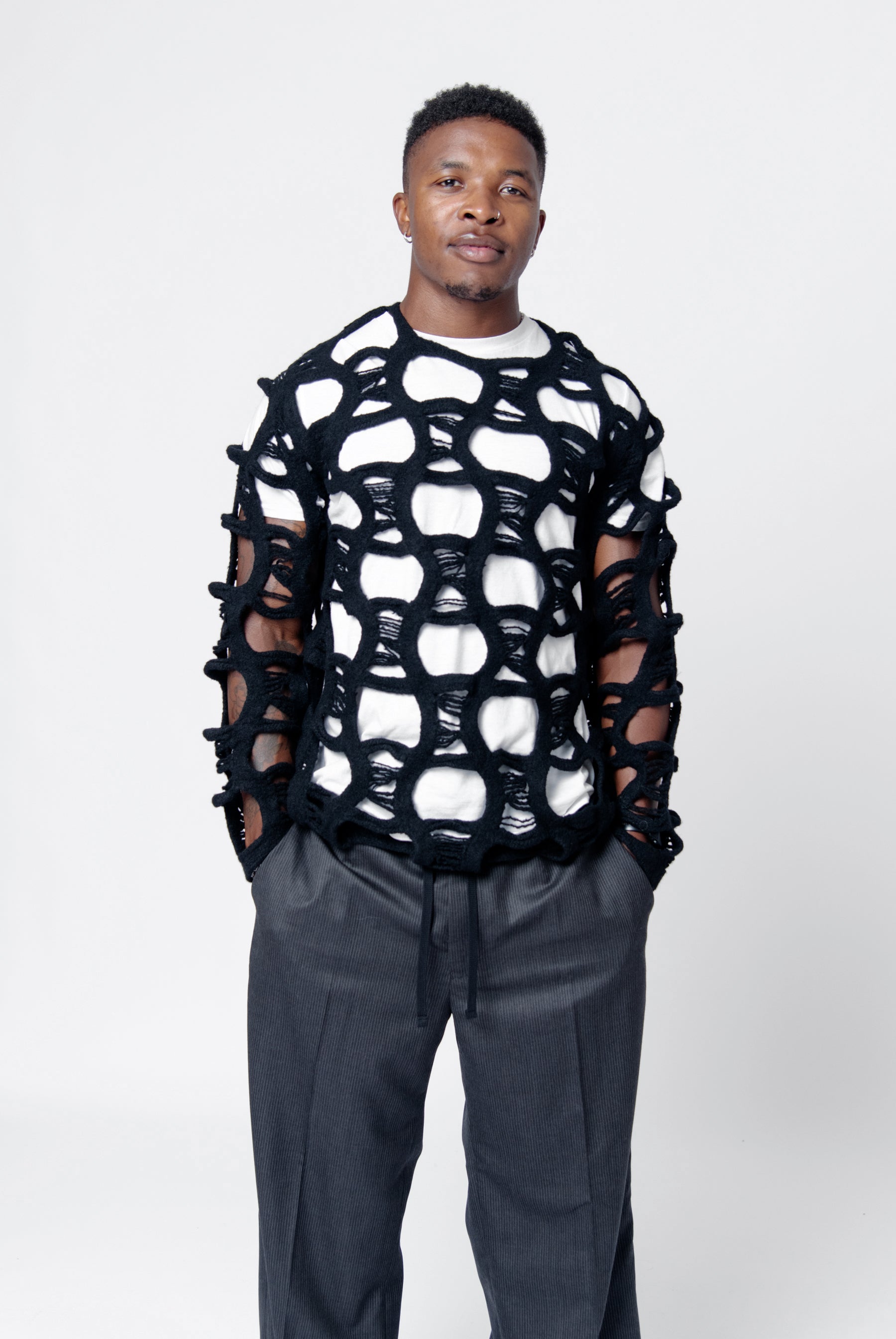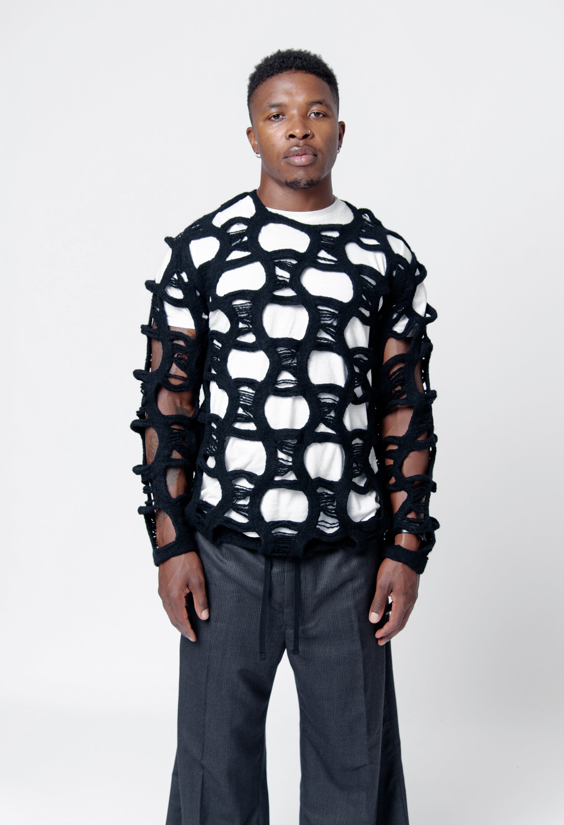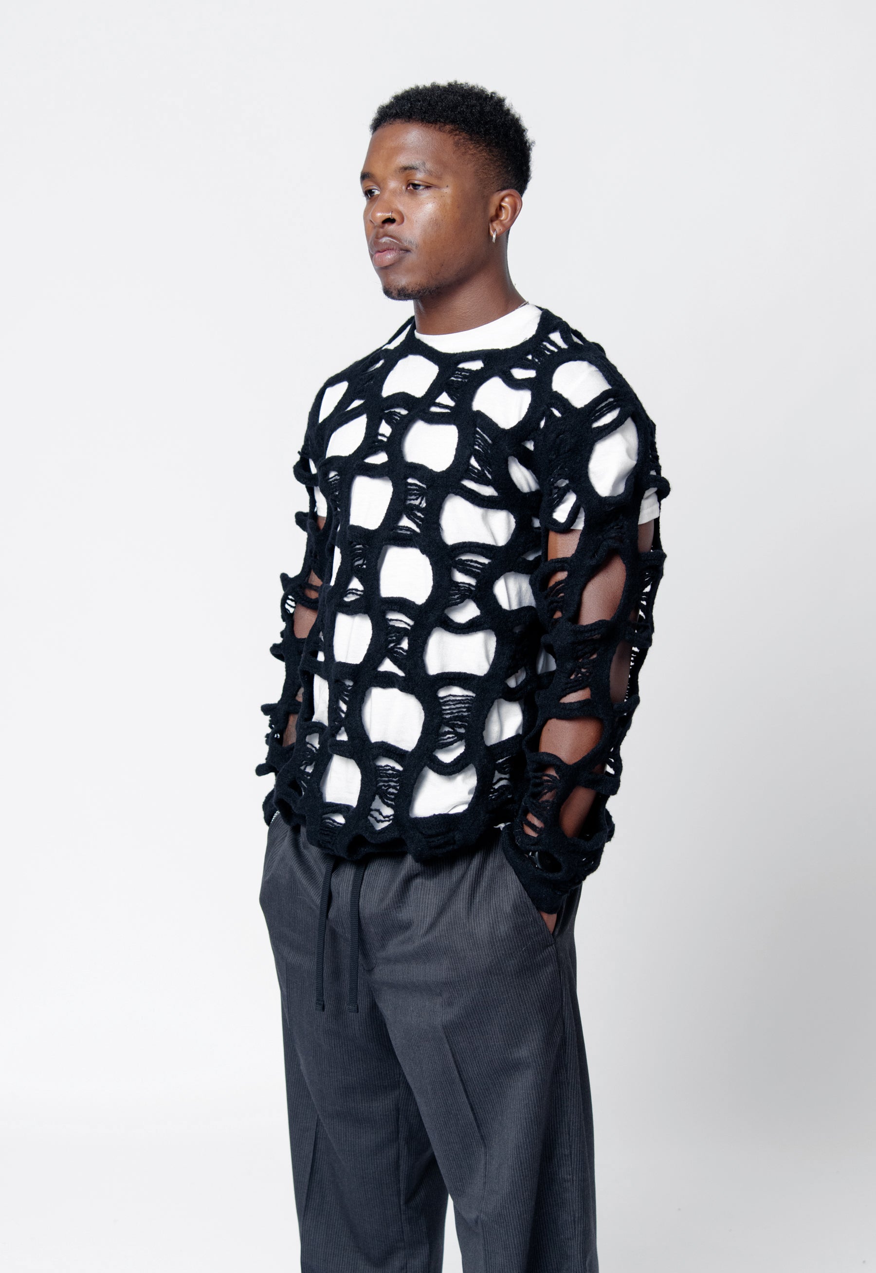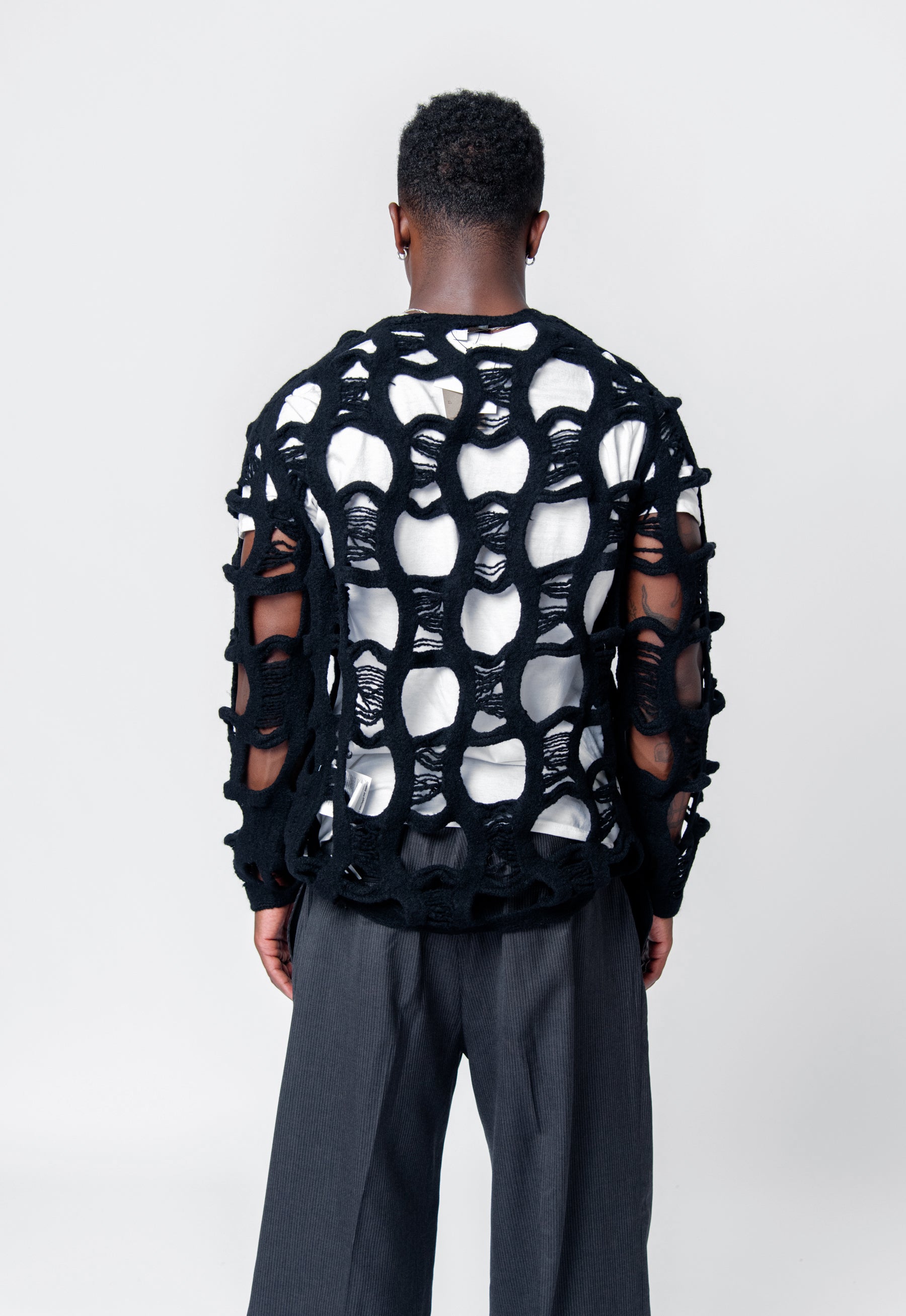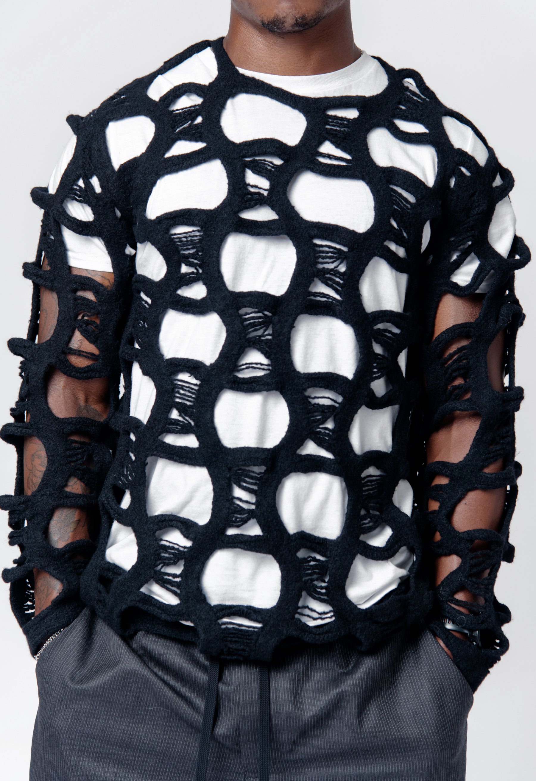 Distressed Knit Wool Sweater Black PN-N010-051