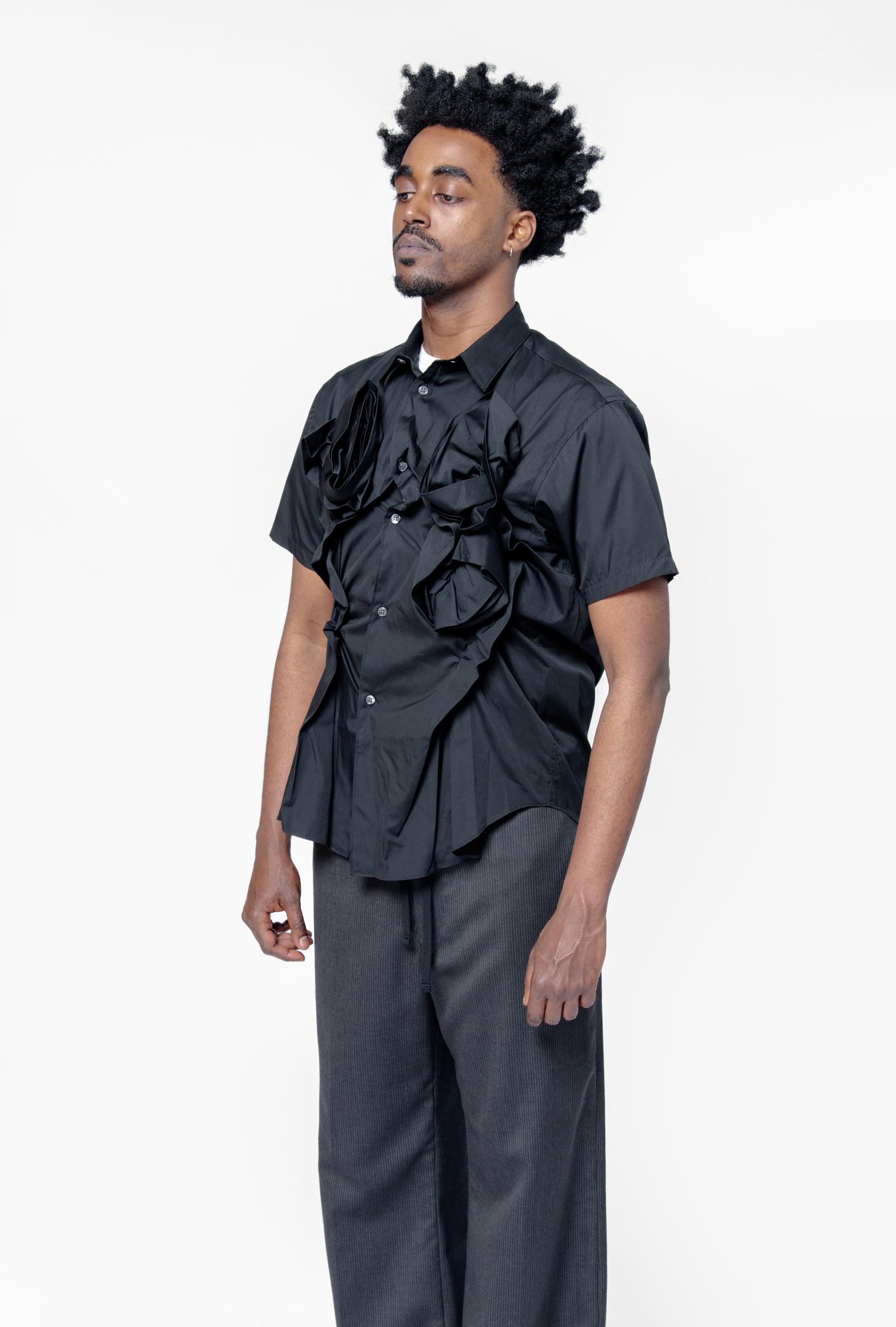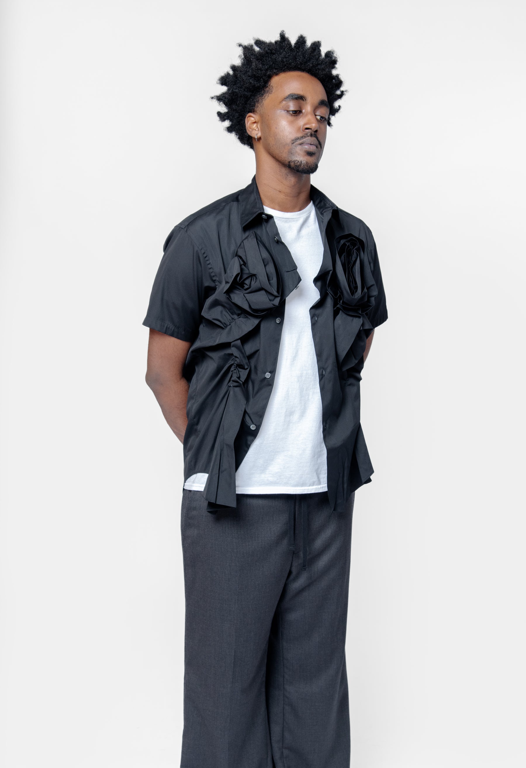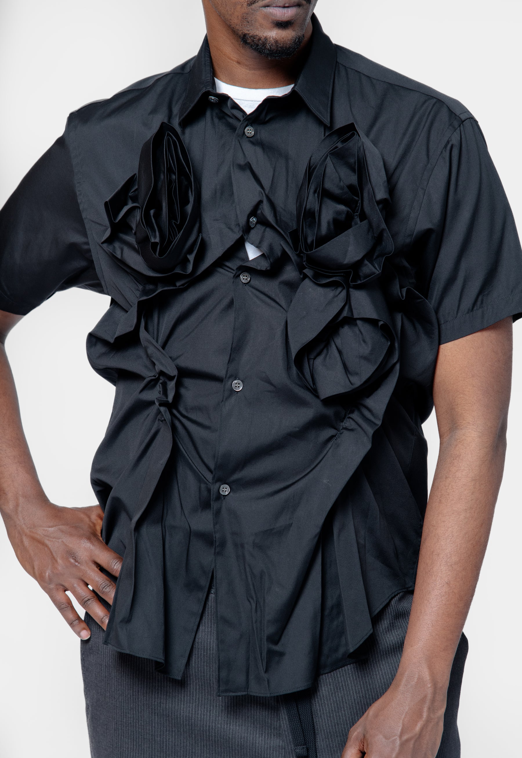 Double Rose Applique' Long Sleeve Button-Up Shirt Black FO-B047-S25