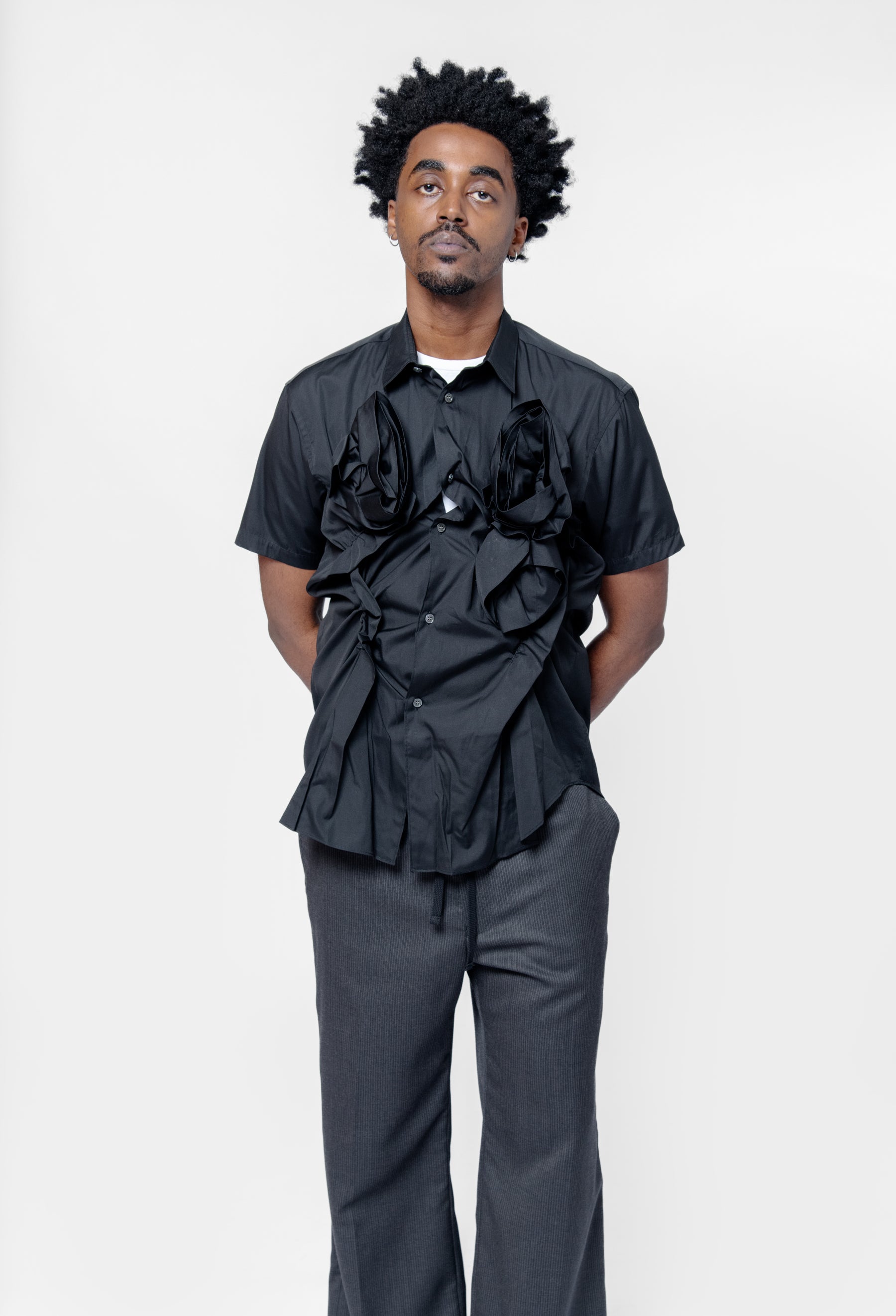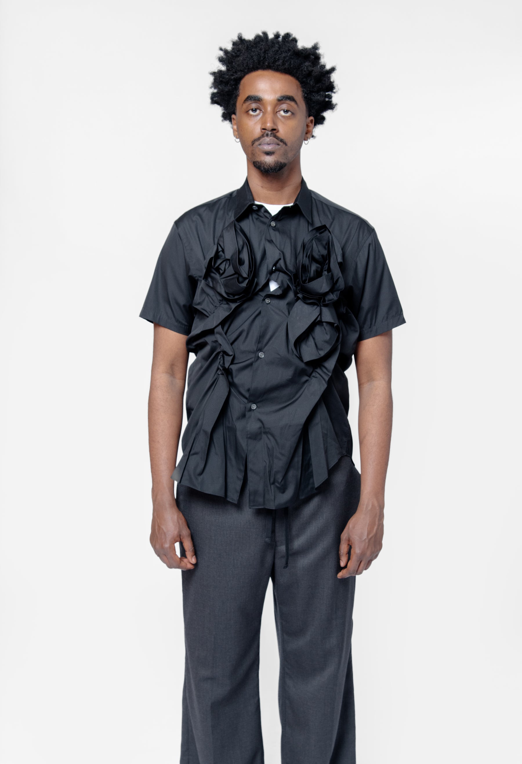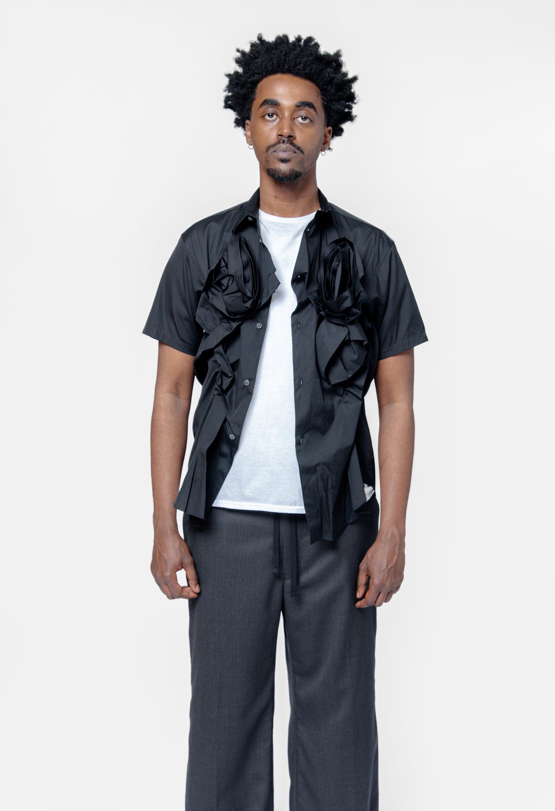 Double Rose Applique' Long Sleeve Button-Up Shirt Black FO-B047-S25