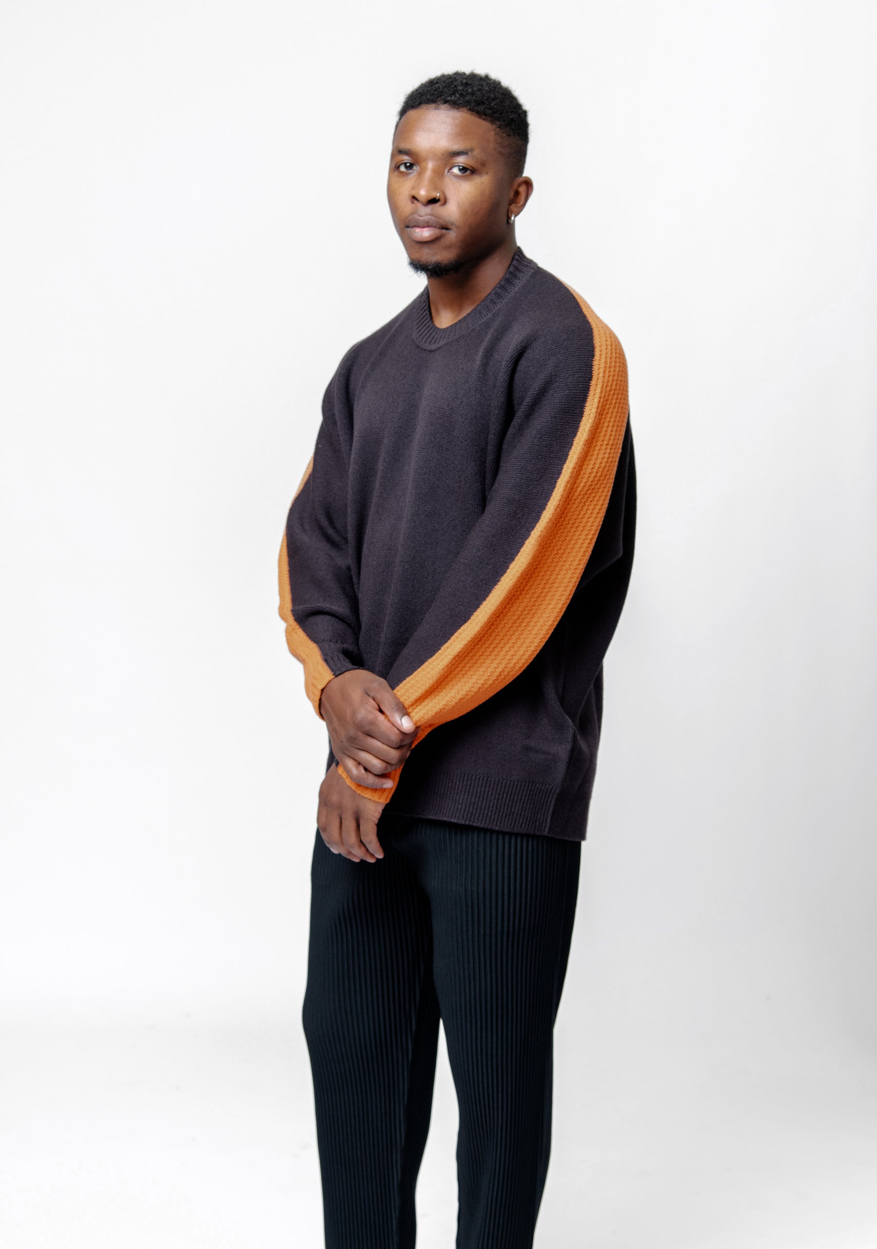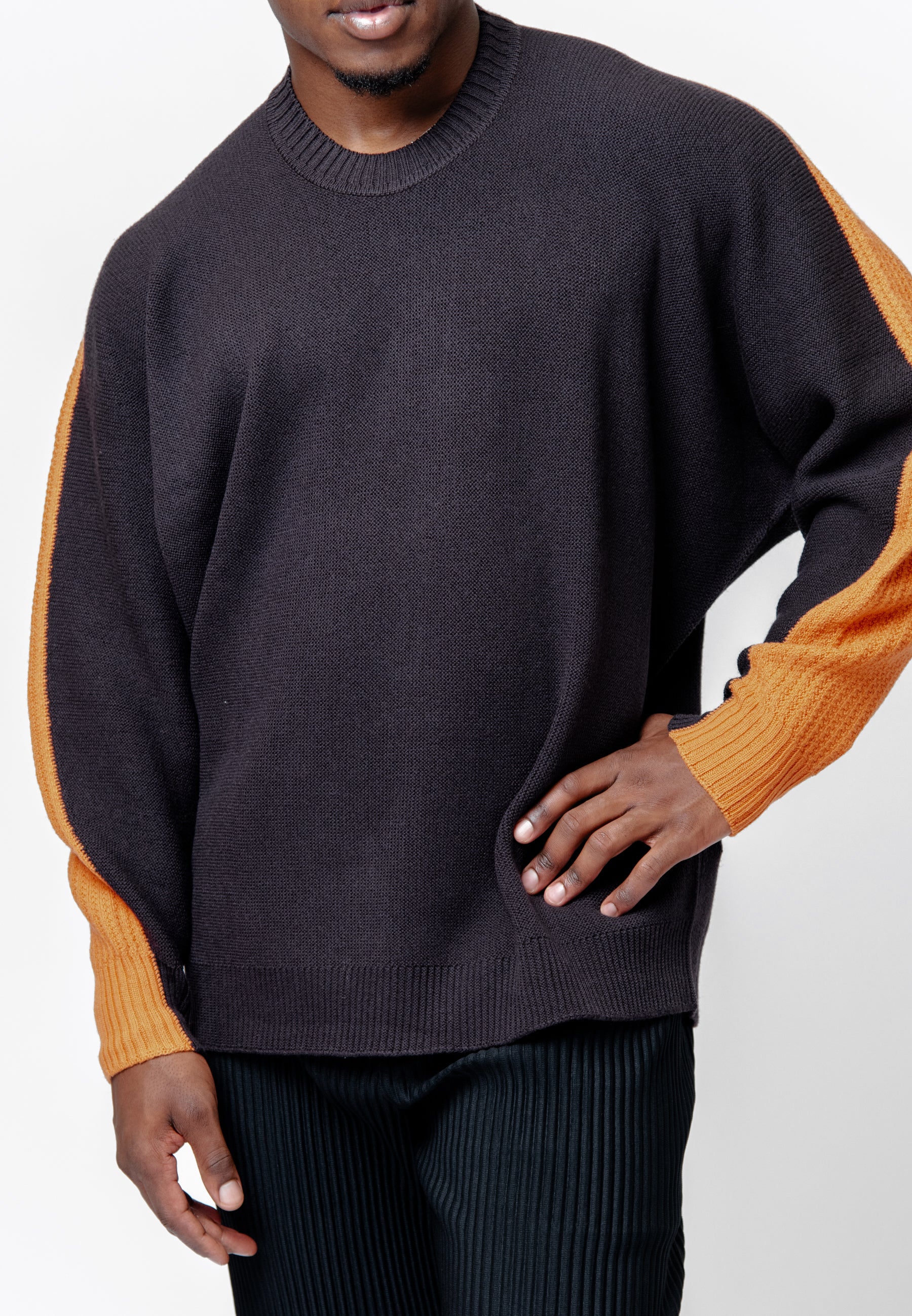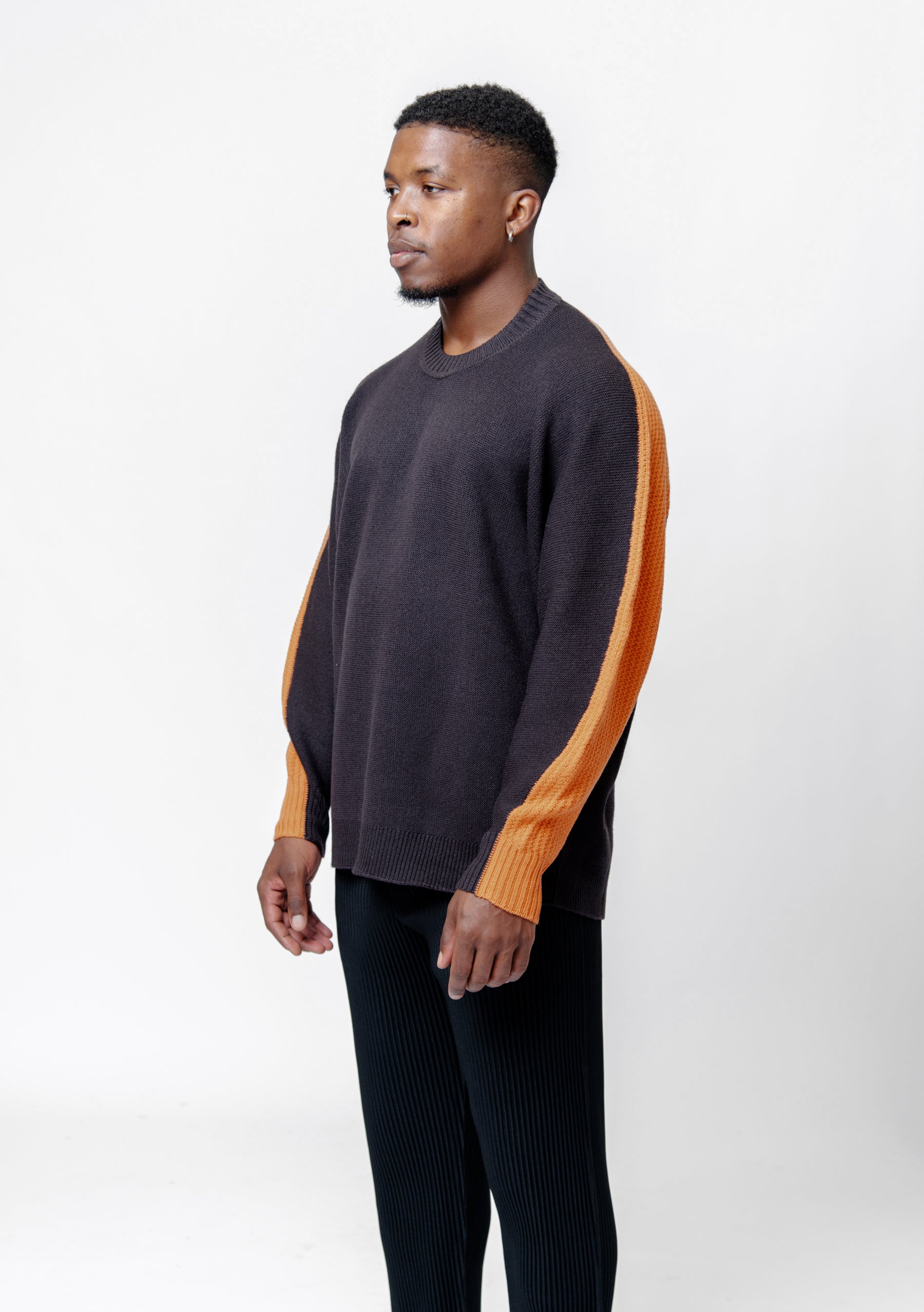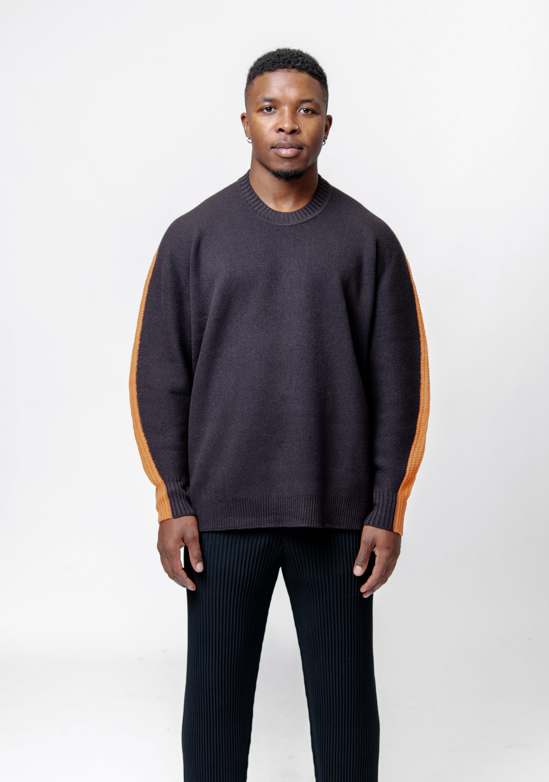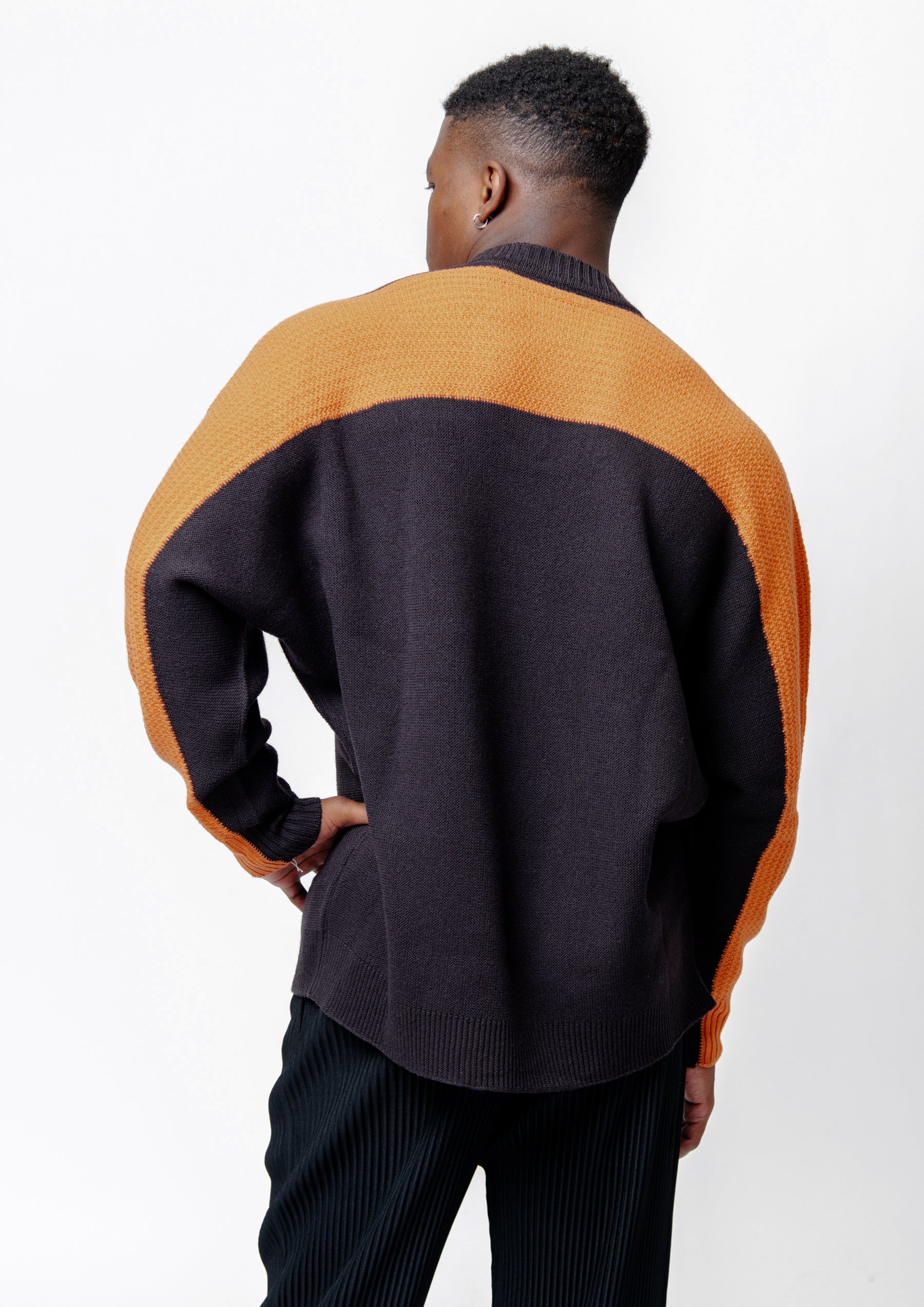 - Contrasting strip detailing at sleeves and back