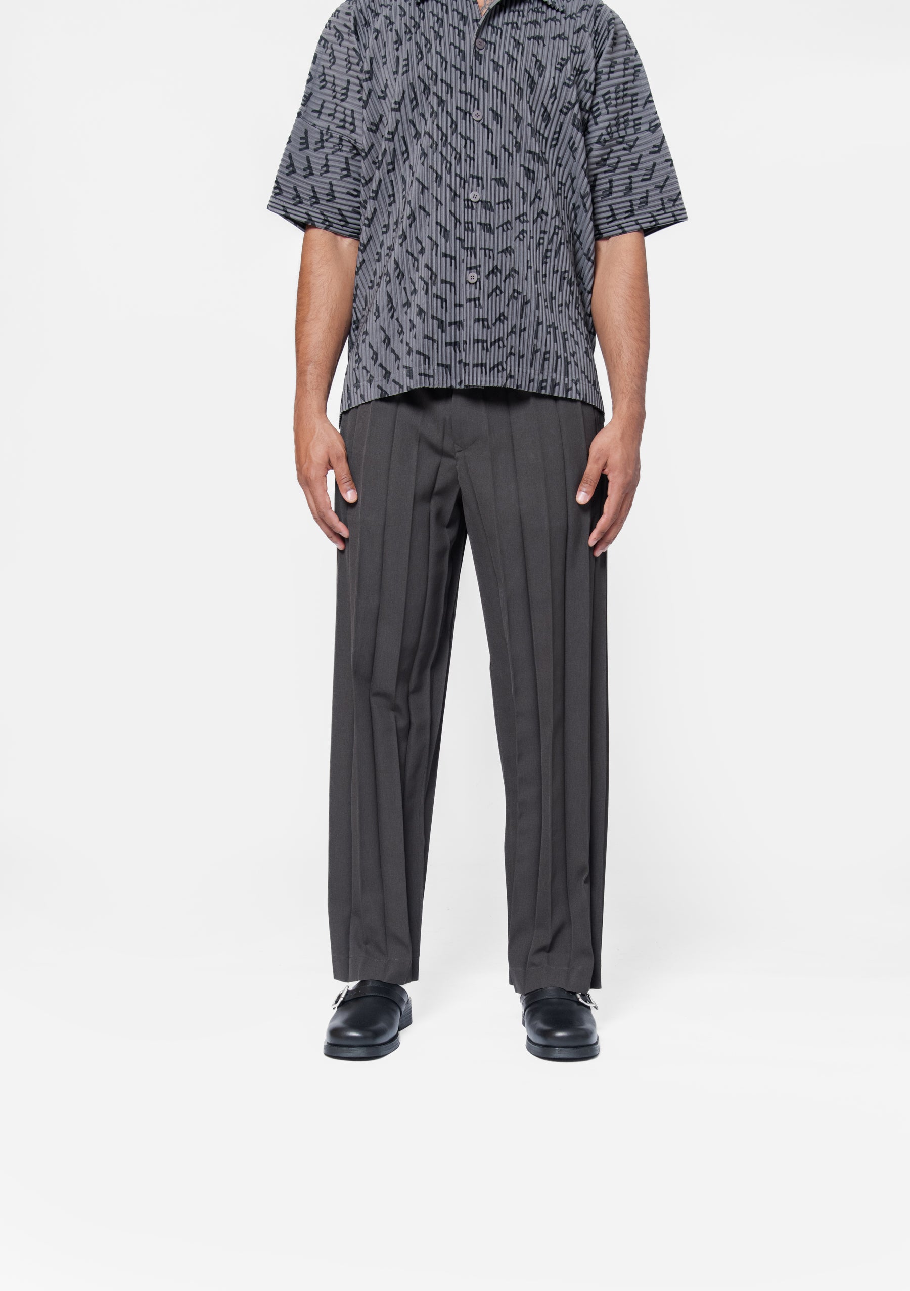 - Full length Homme Plisse, Issey Miyake pleated pant in Dark Brown