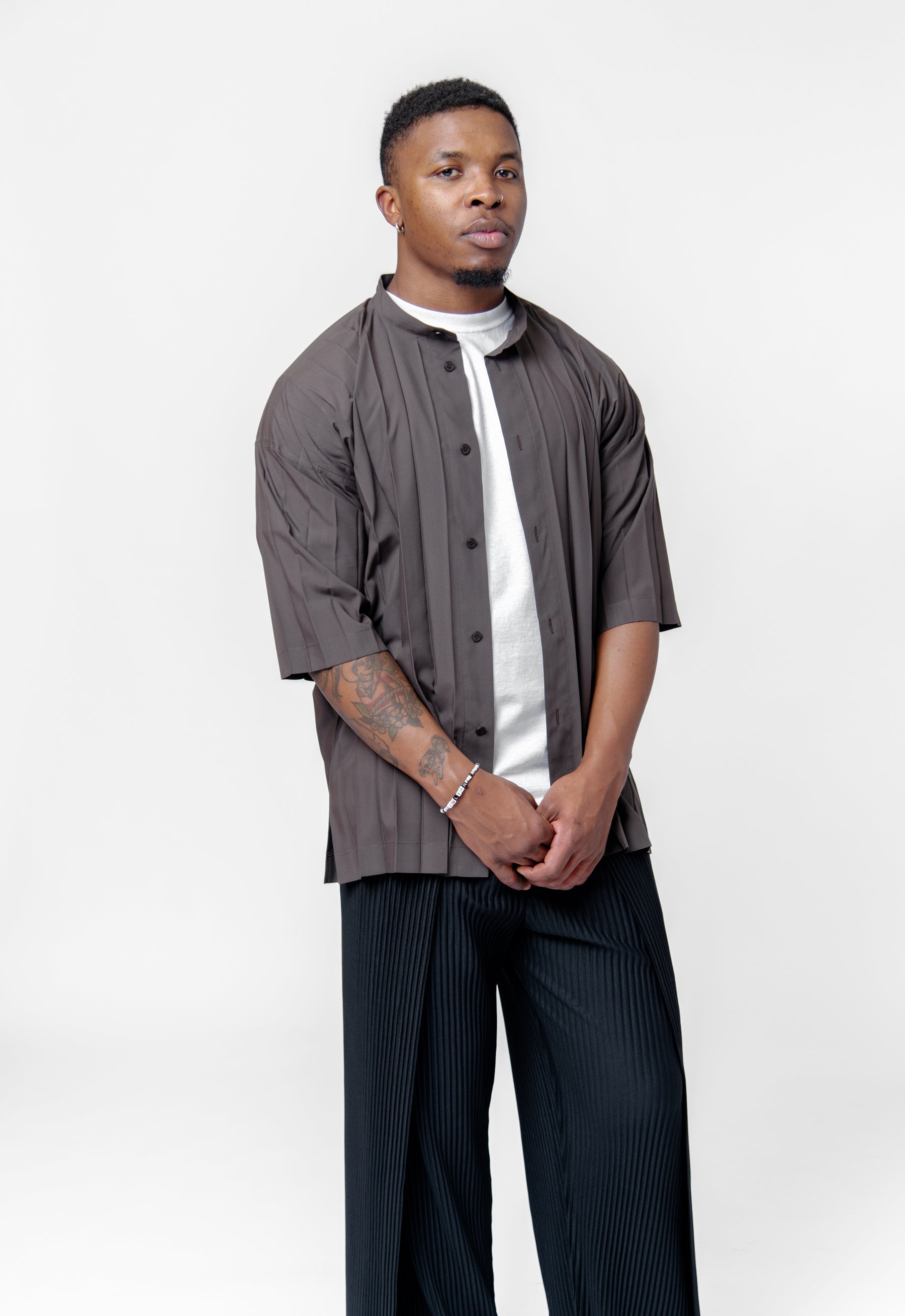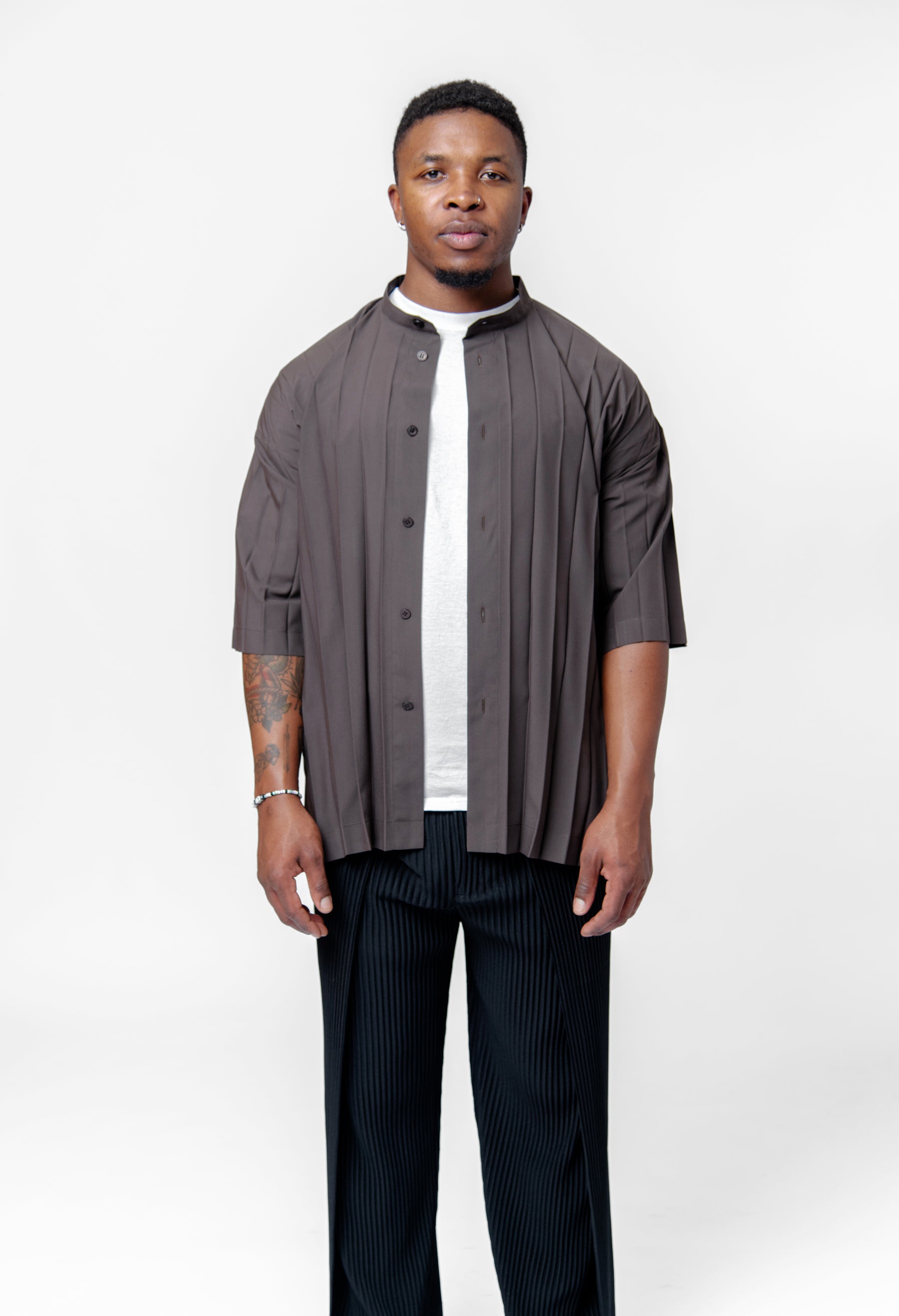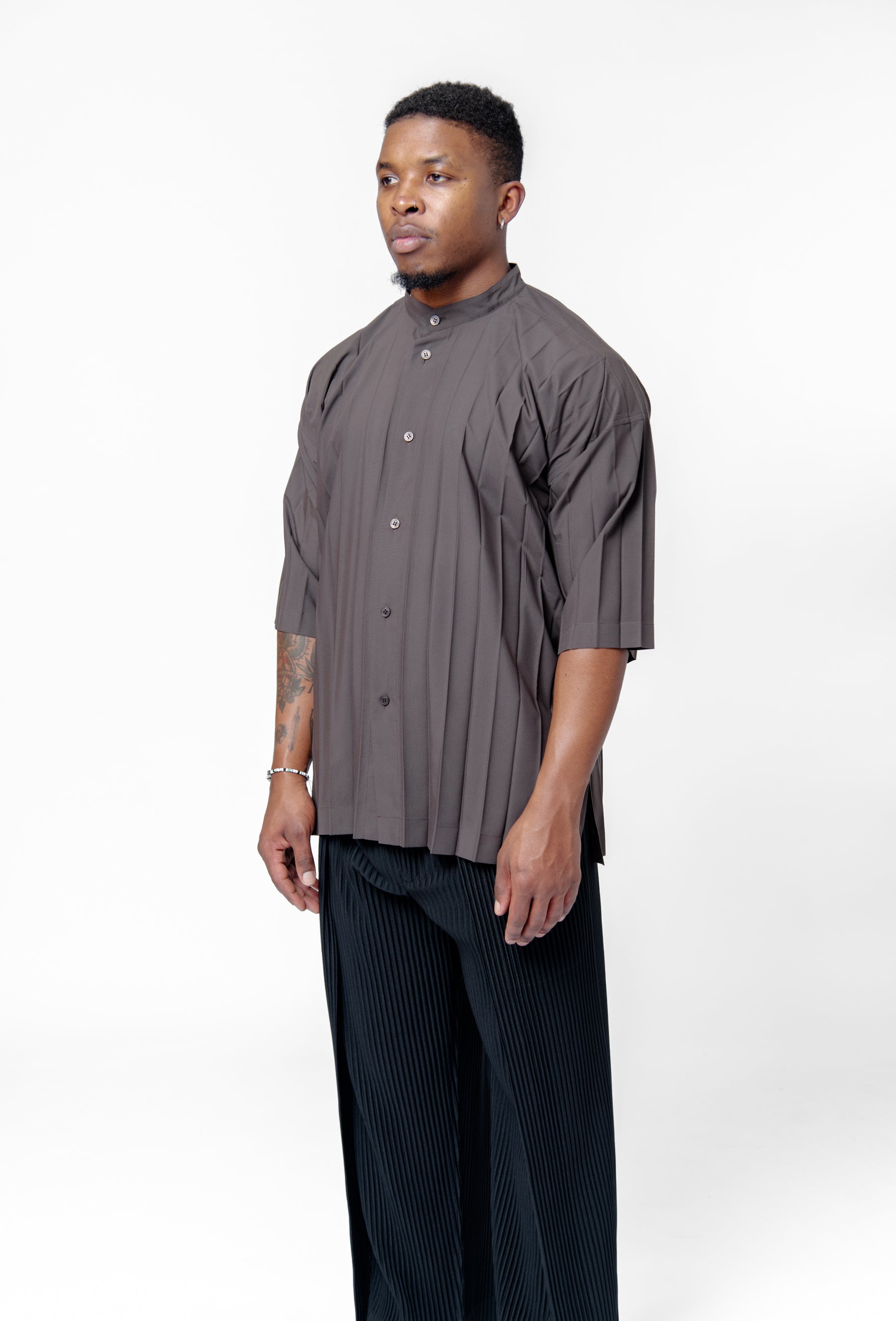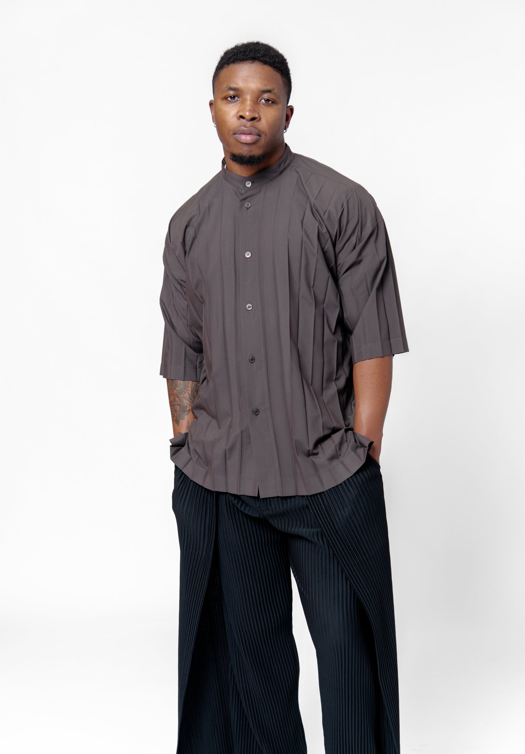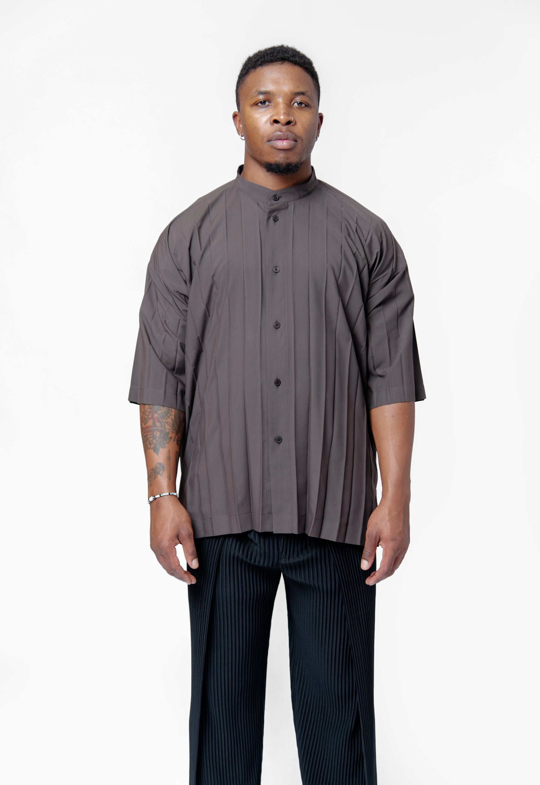 - Half length Homme Plissé Issey Miyake garment-pleated shirt in Charcoal