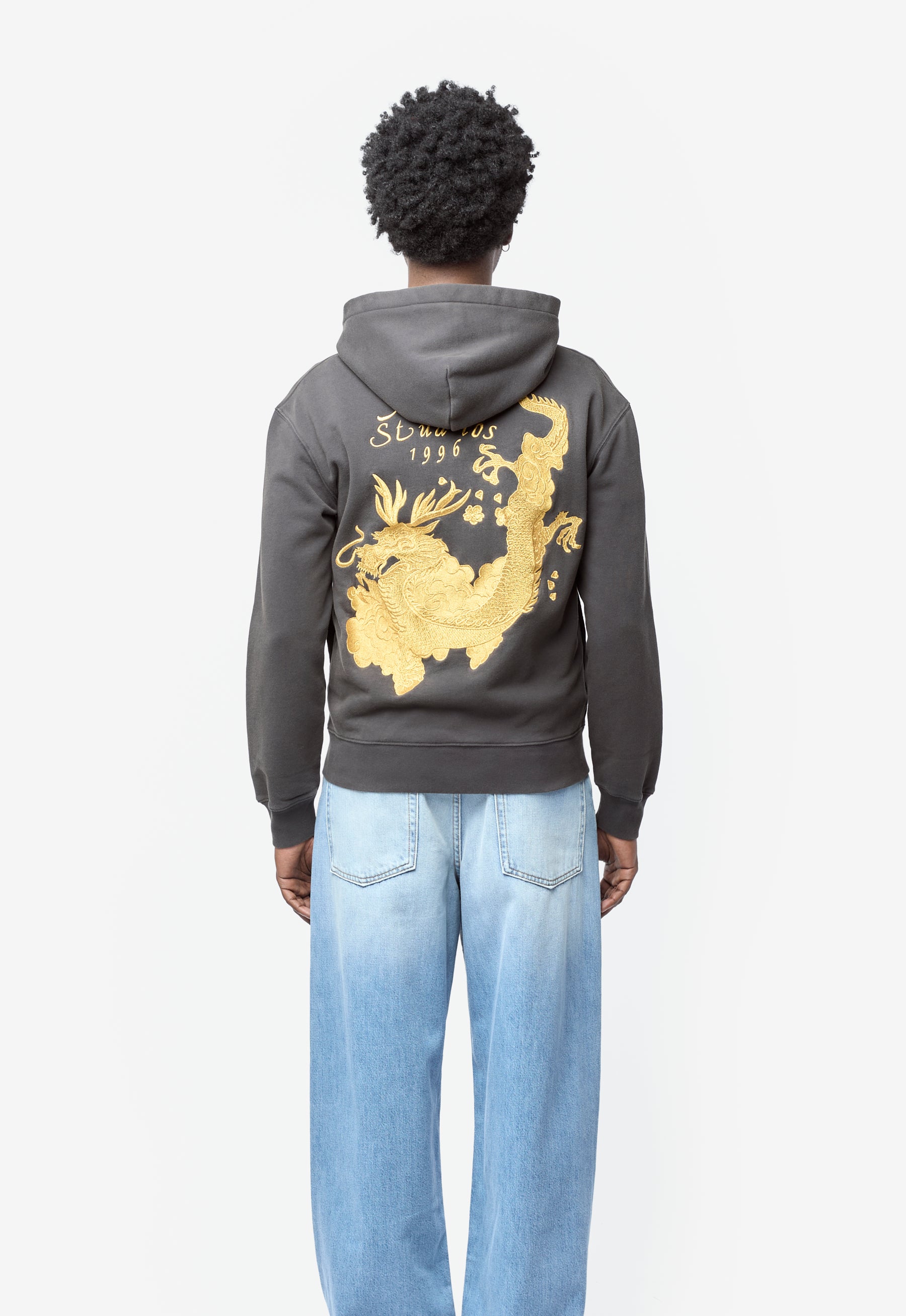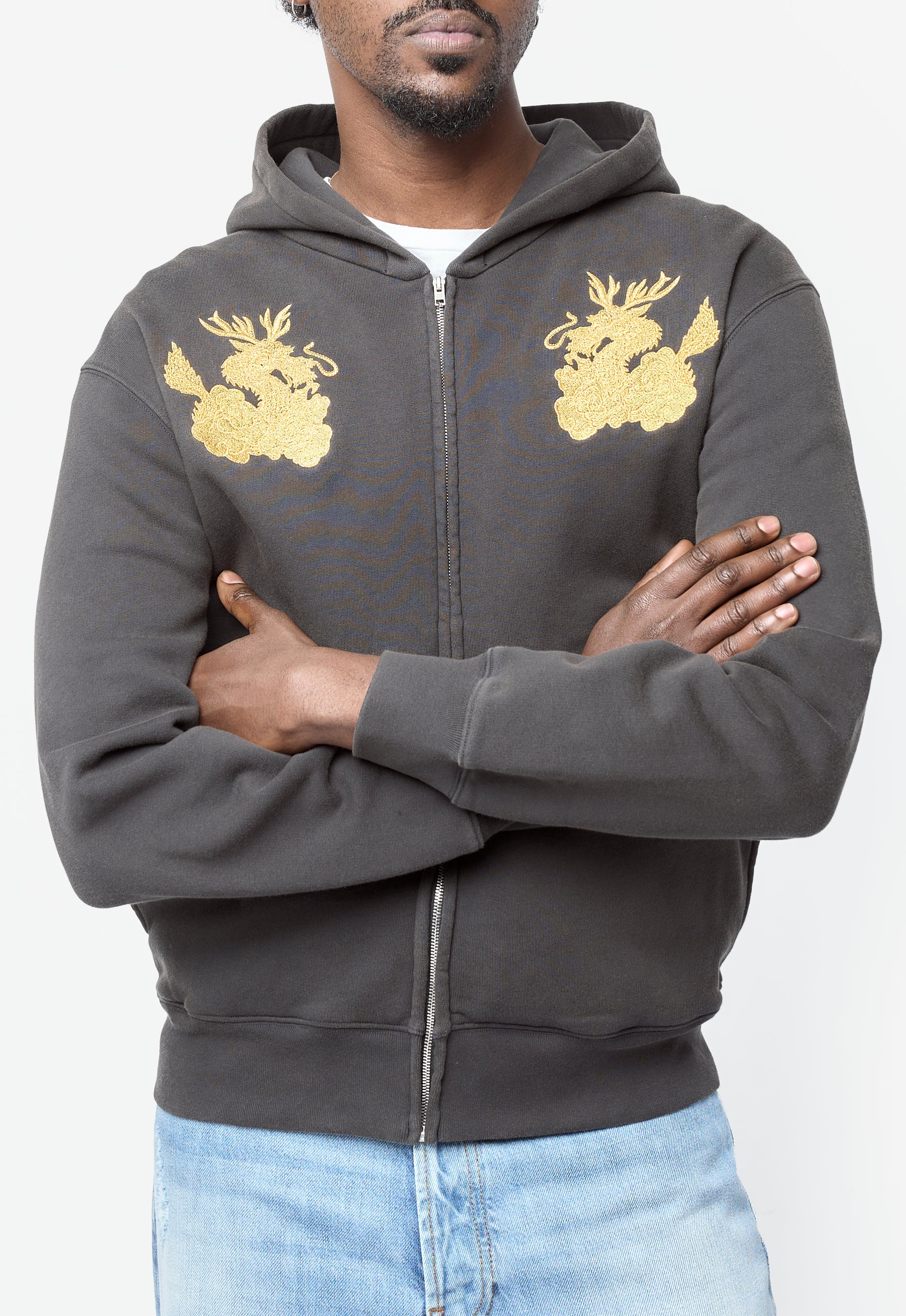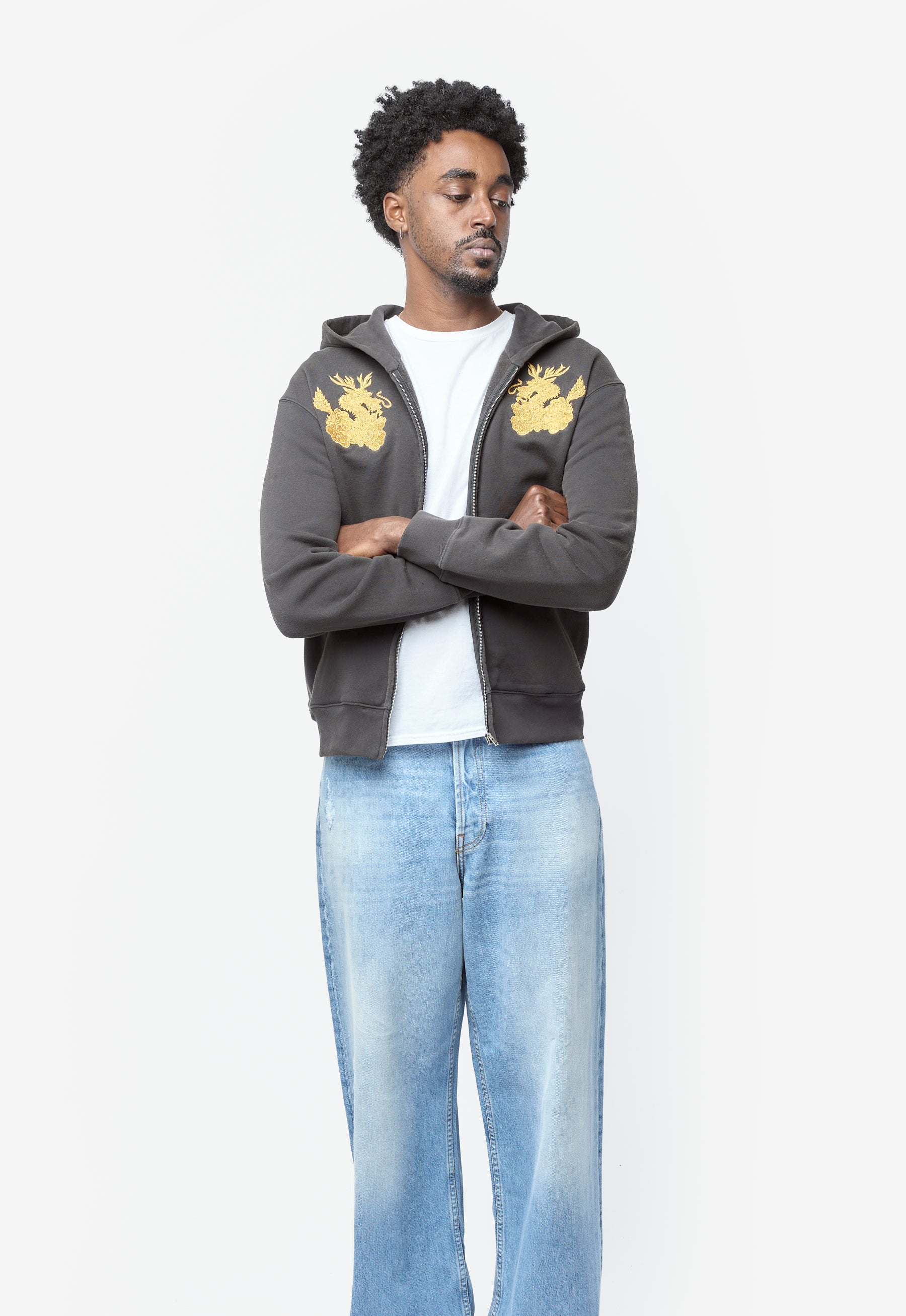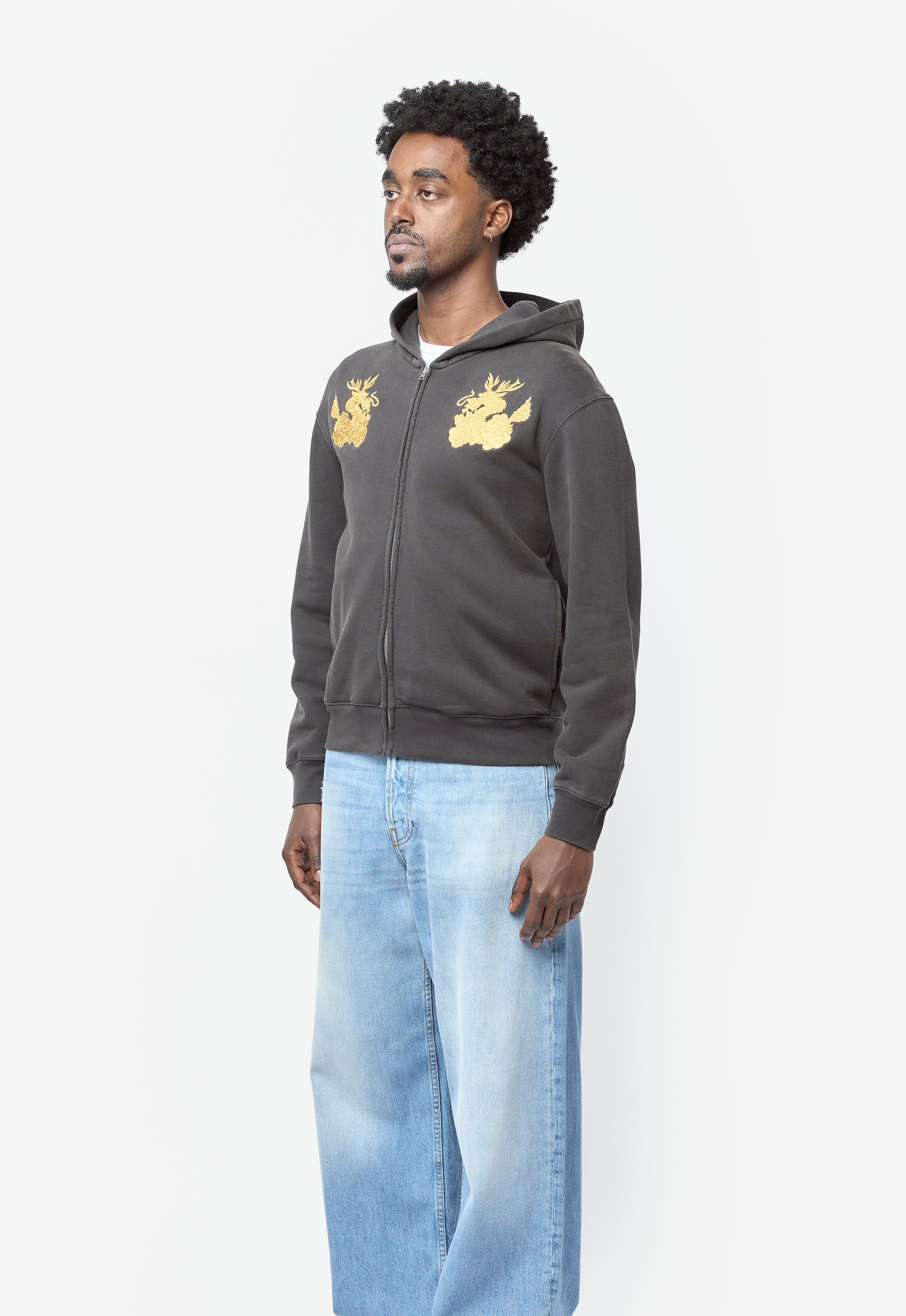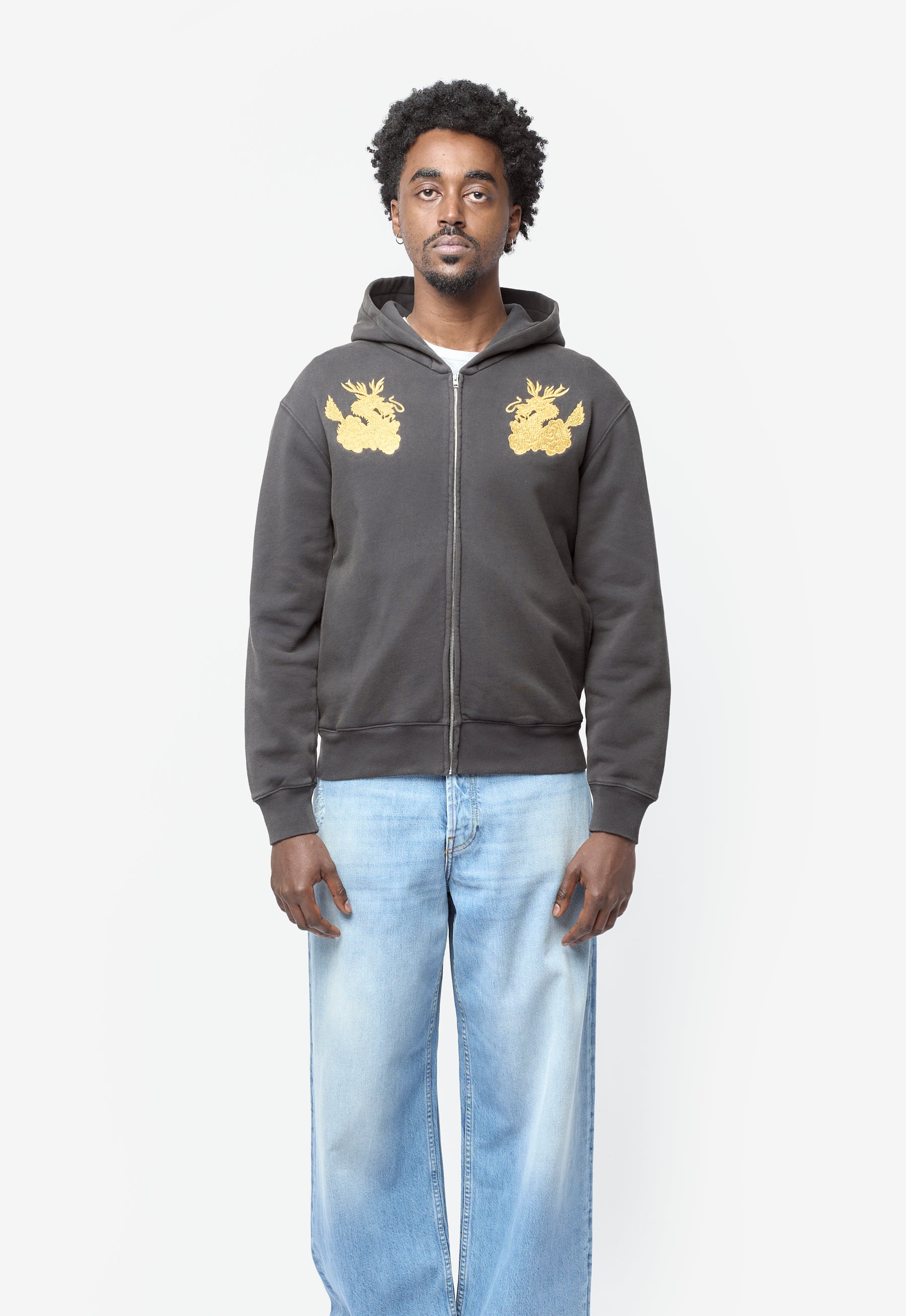 Embroidered Hooded Zip Sweater Faded Black FN-MN-SWEA000403