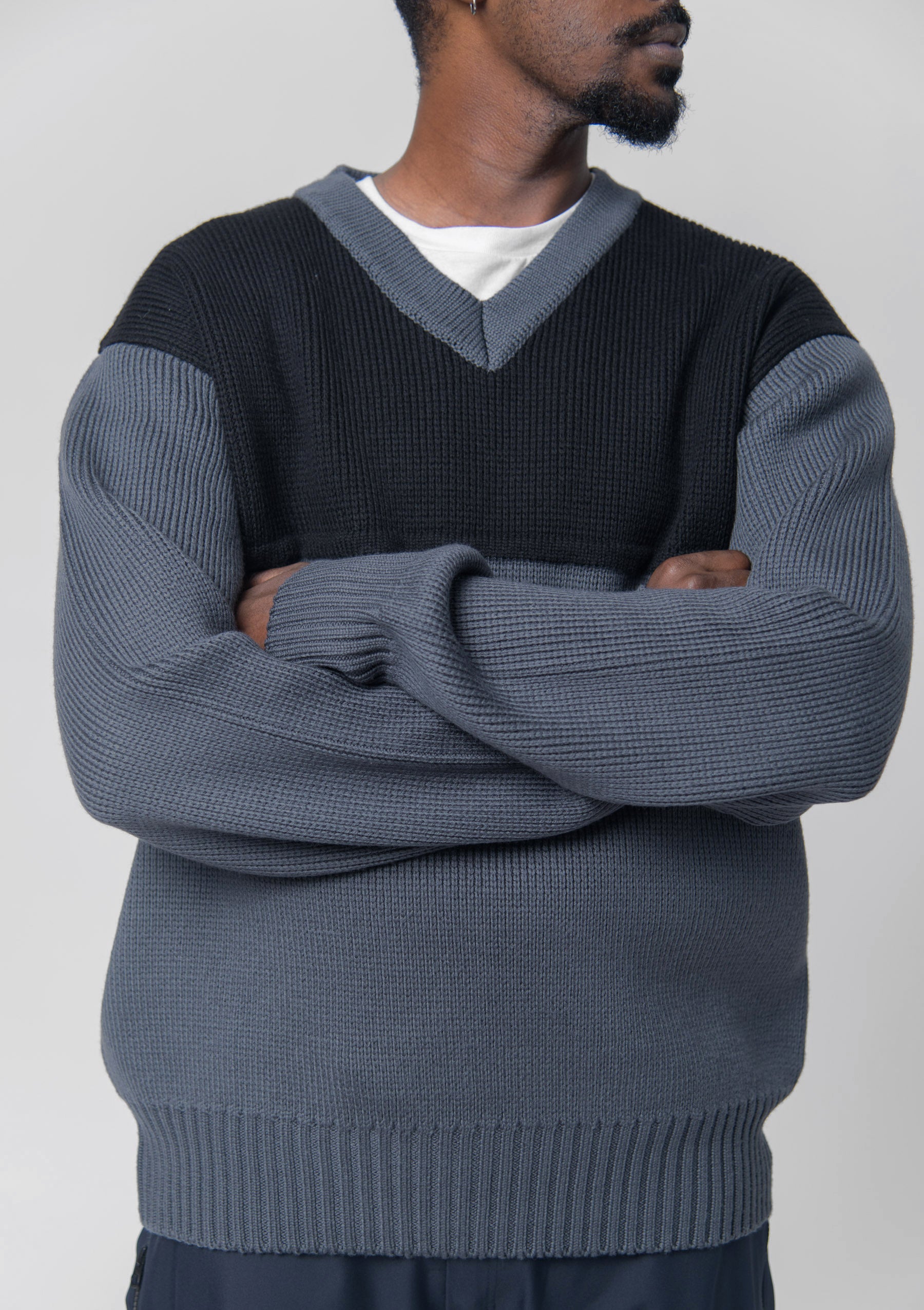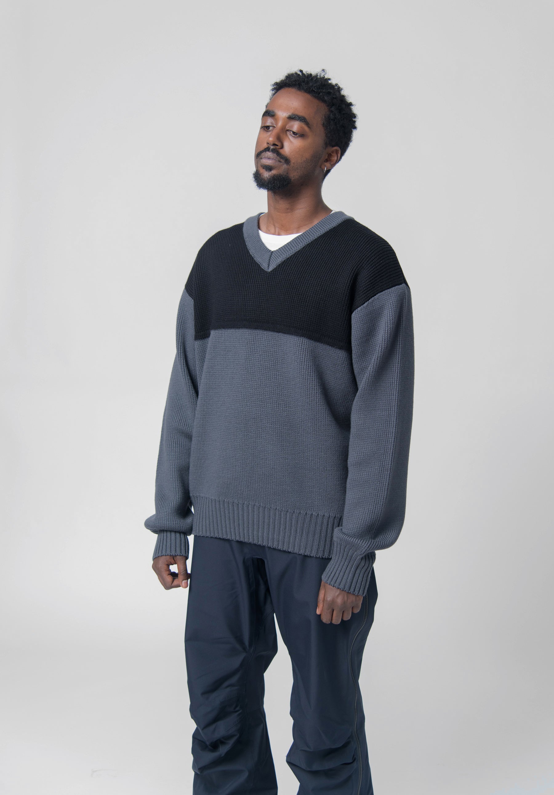 - Long sleeve GR10k cotton sweater in Coal Grey