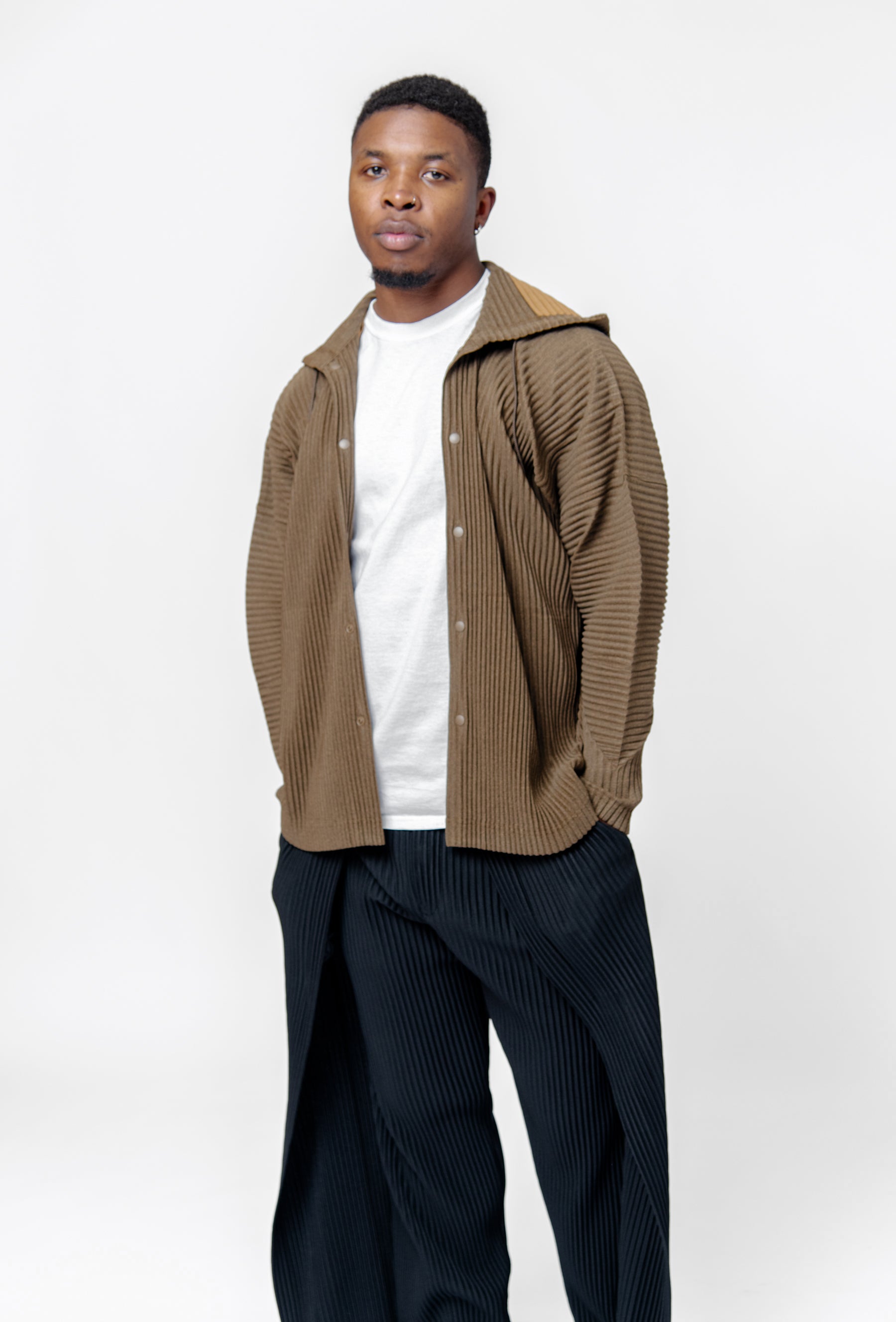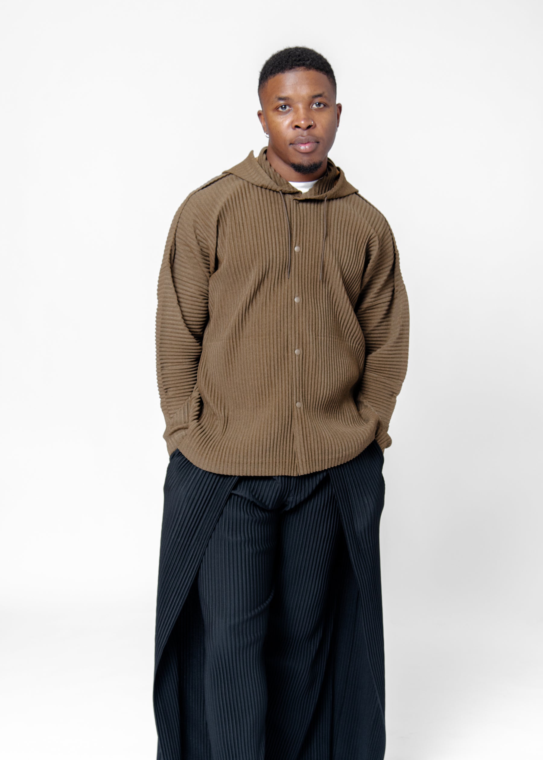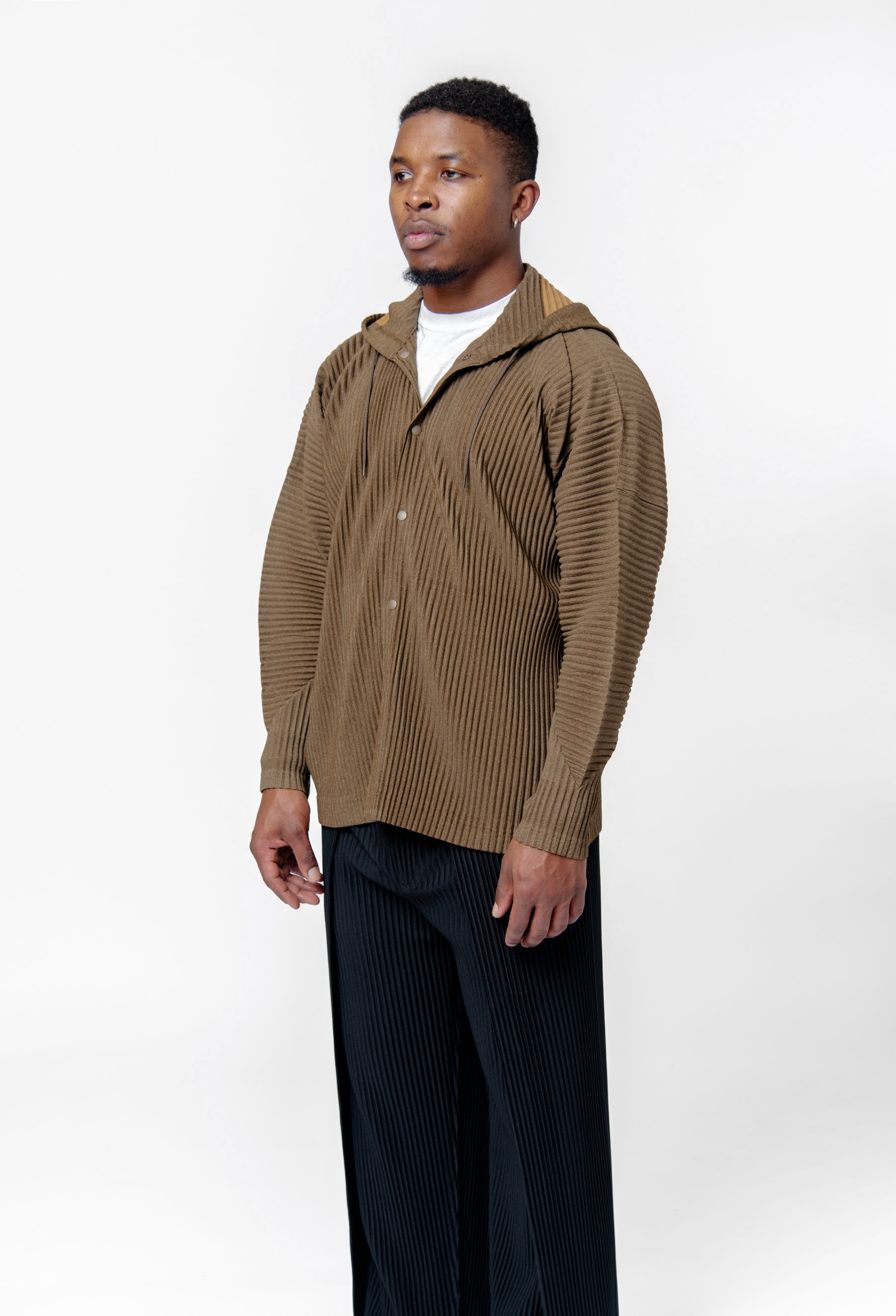 Heather Pleats Button Hoodie Brown HP56-JC170-44
