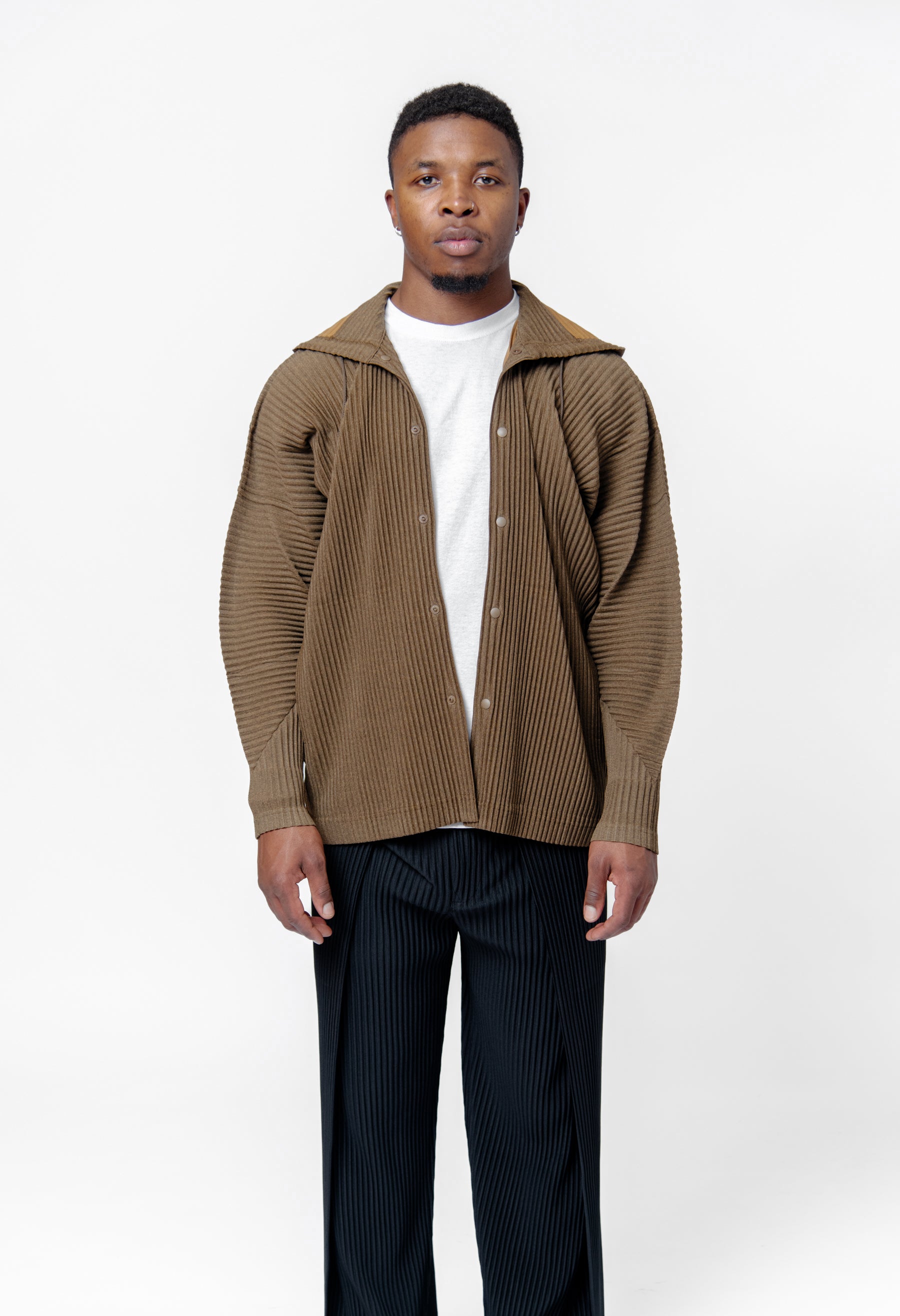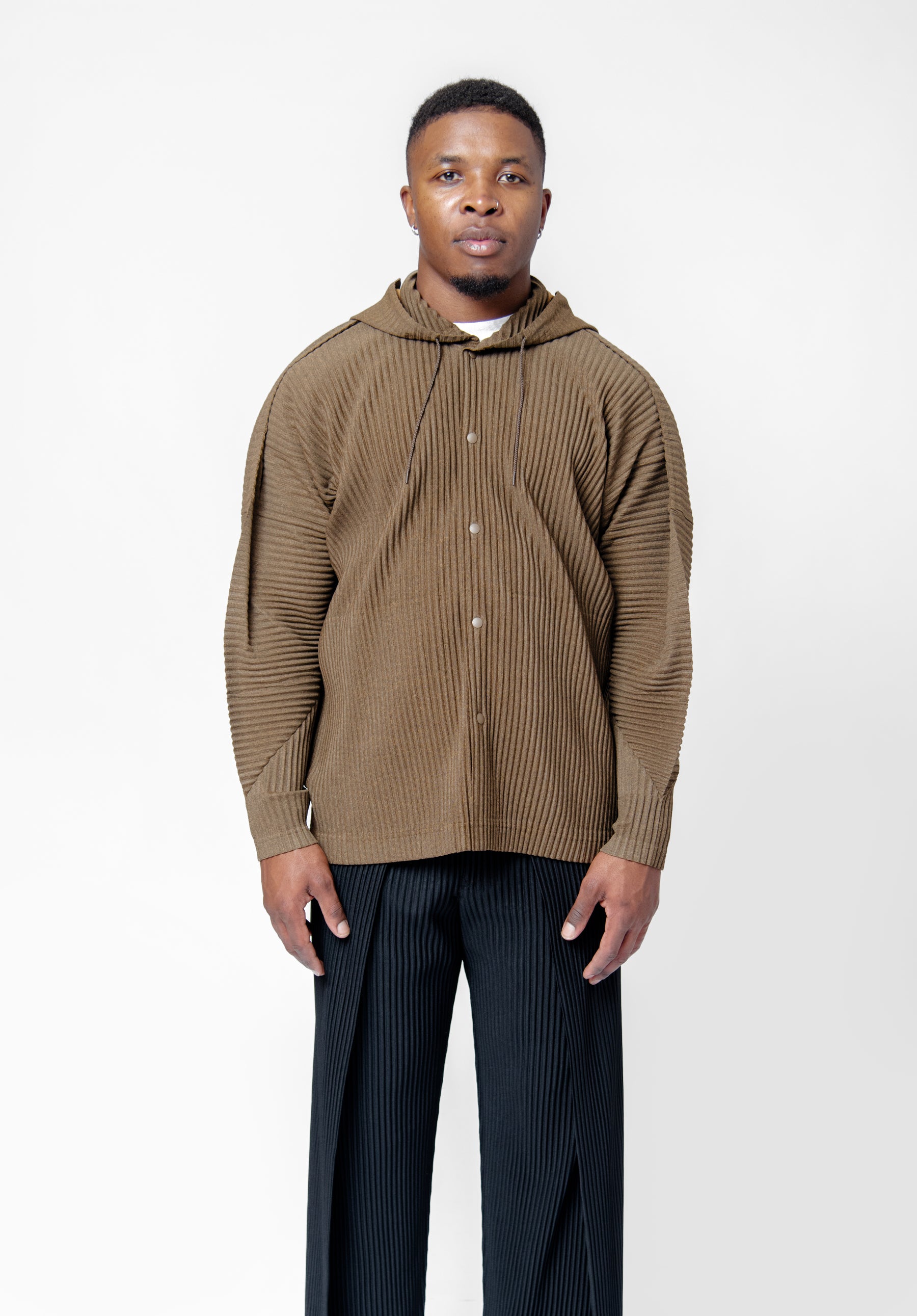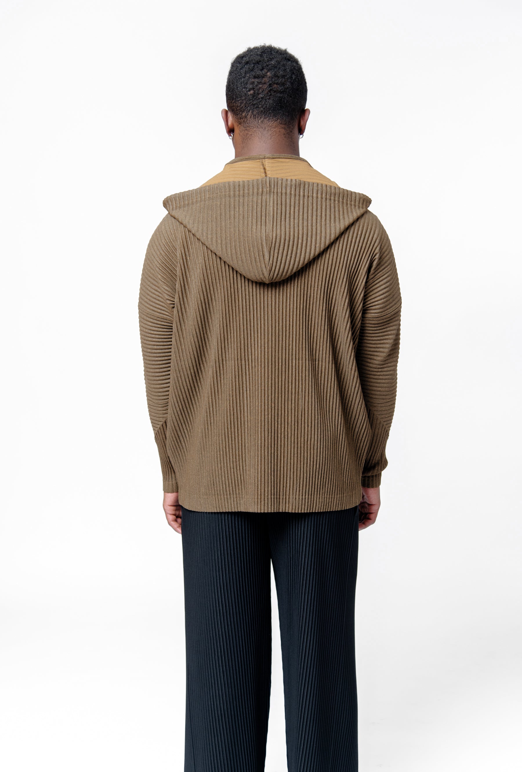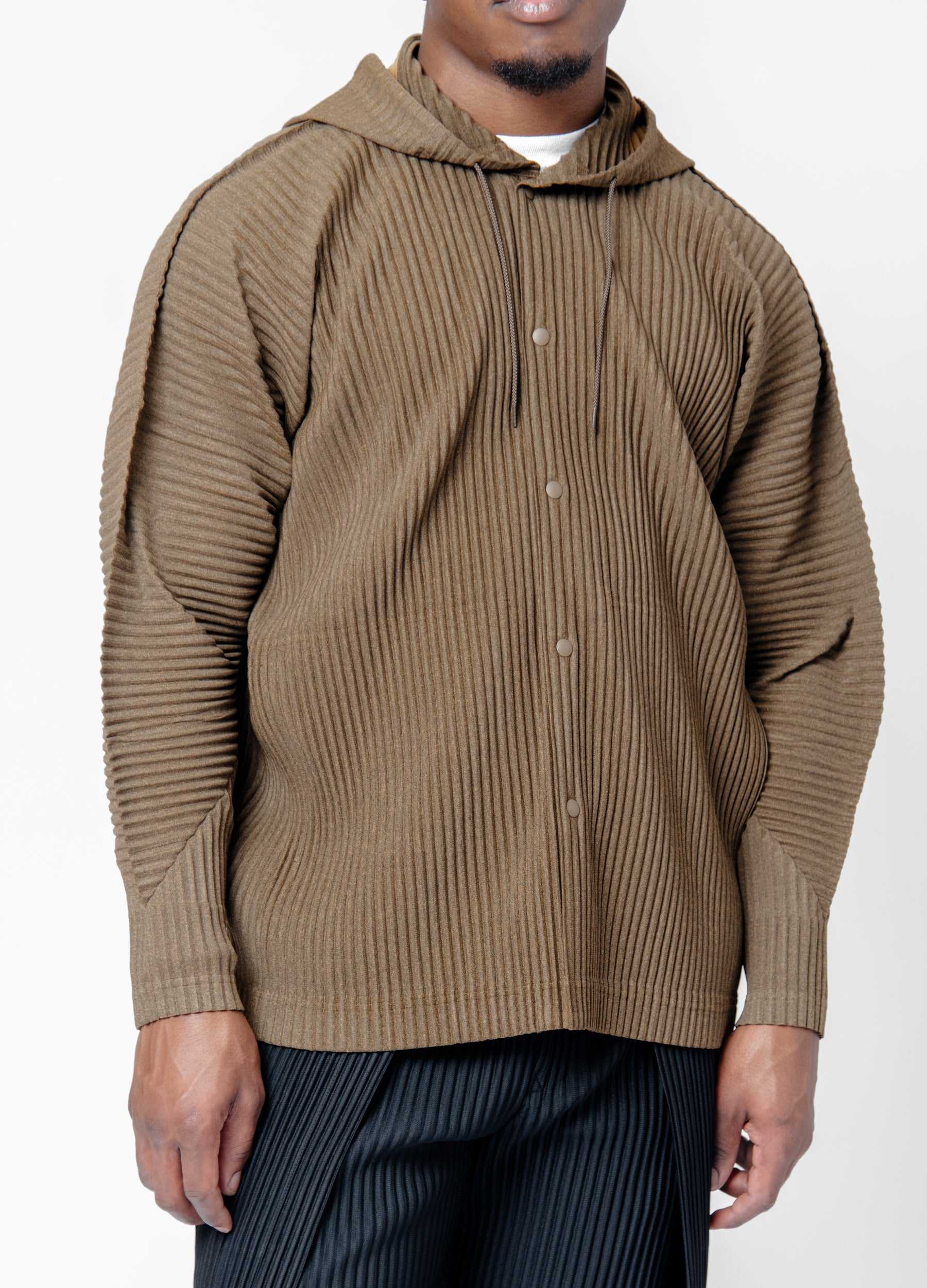 - Long Sleeve Homme Plissé Issey Miyake pleated hoodie in Brown