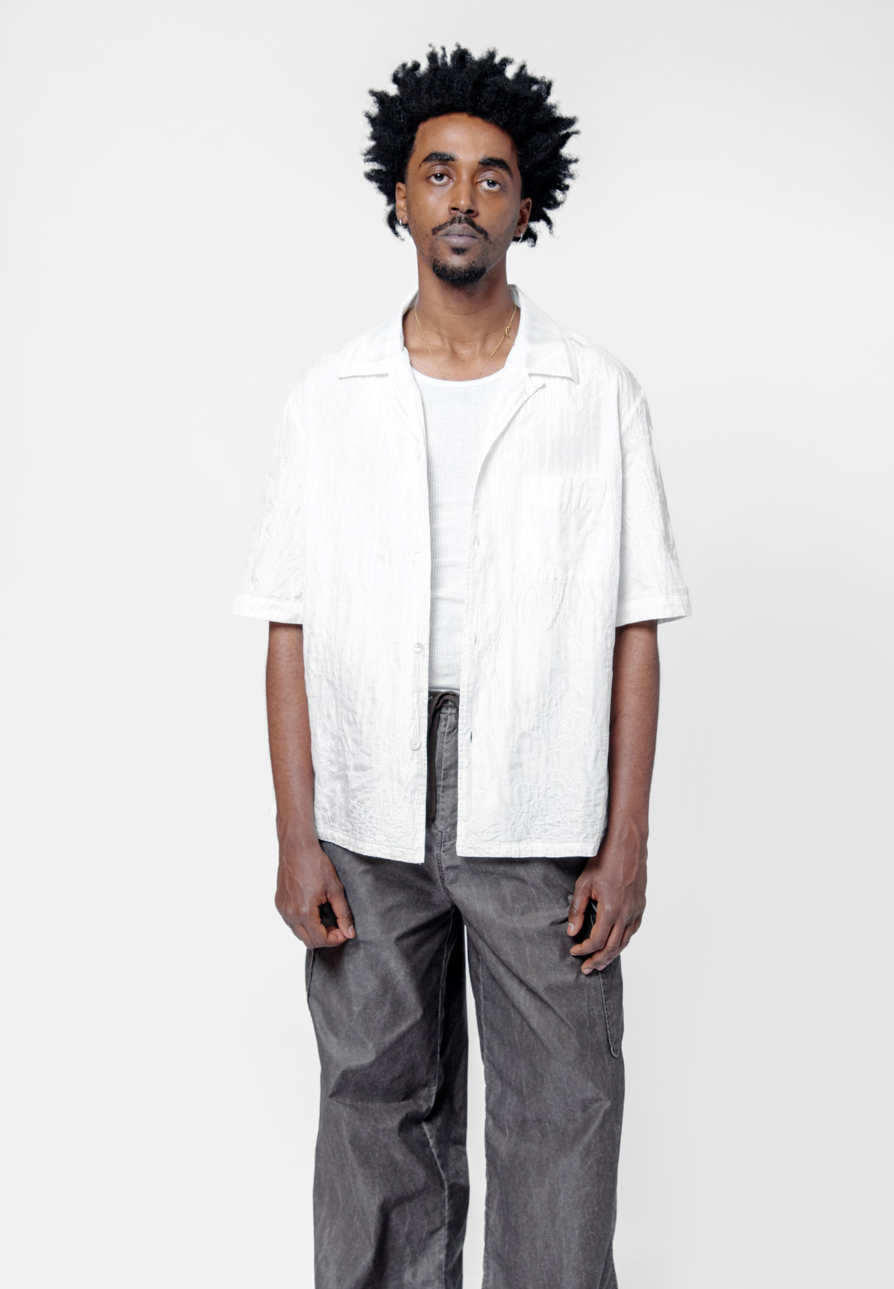 - Short sleeve Our Legacy shirt in White Flower Embroidery