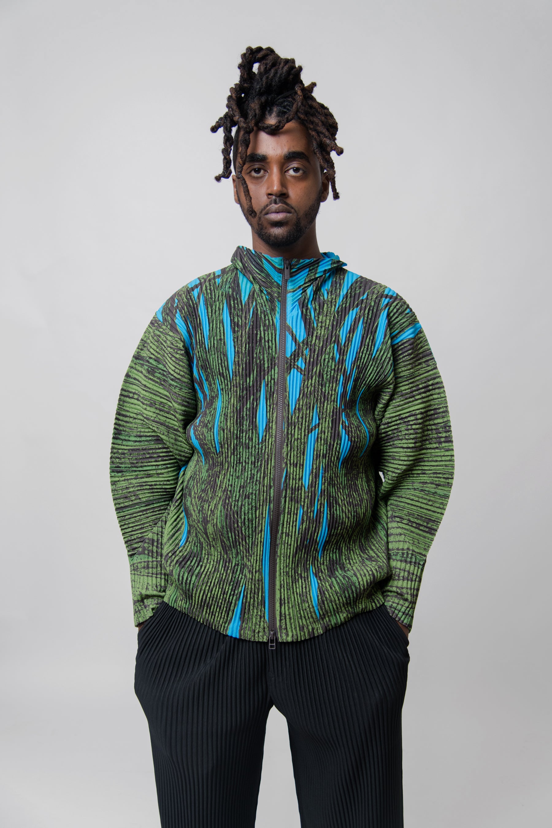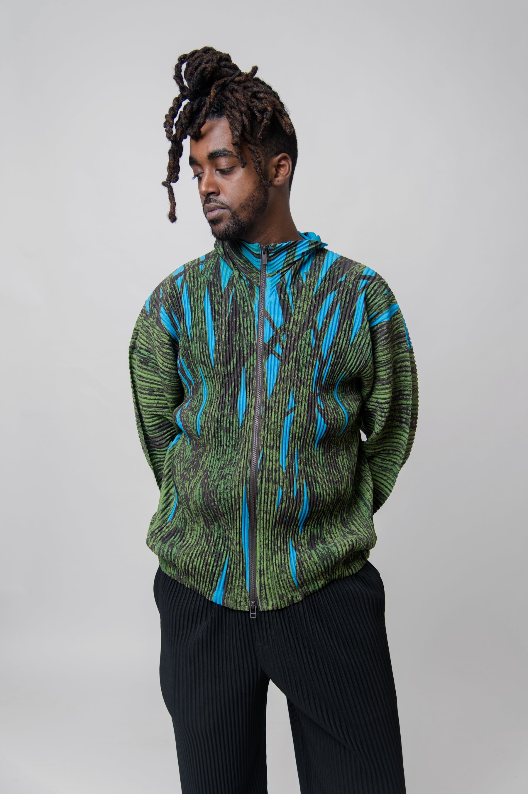 Grass Field Pleated Zip Jacket Green JL165-62