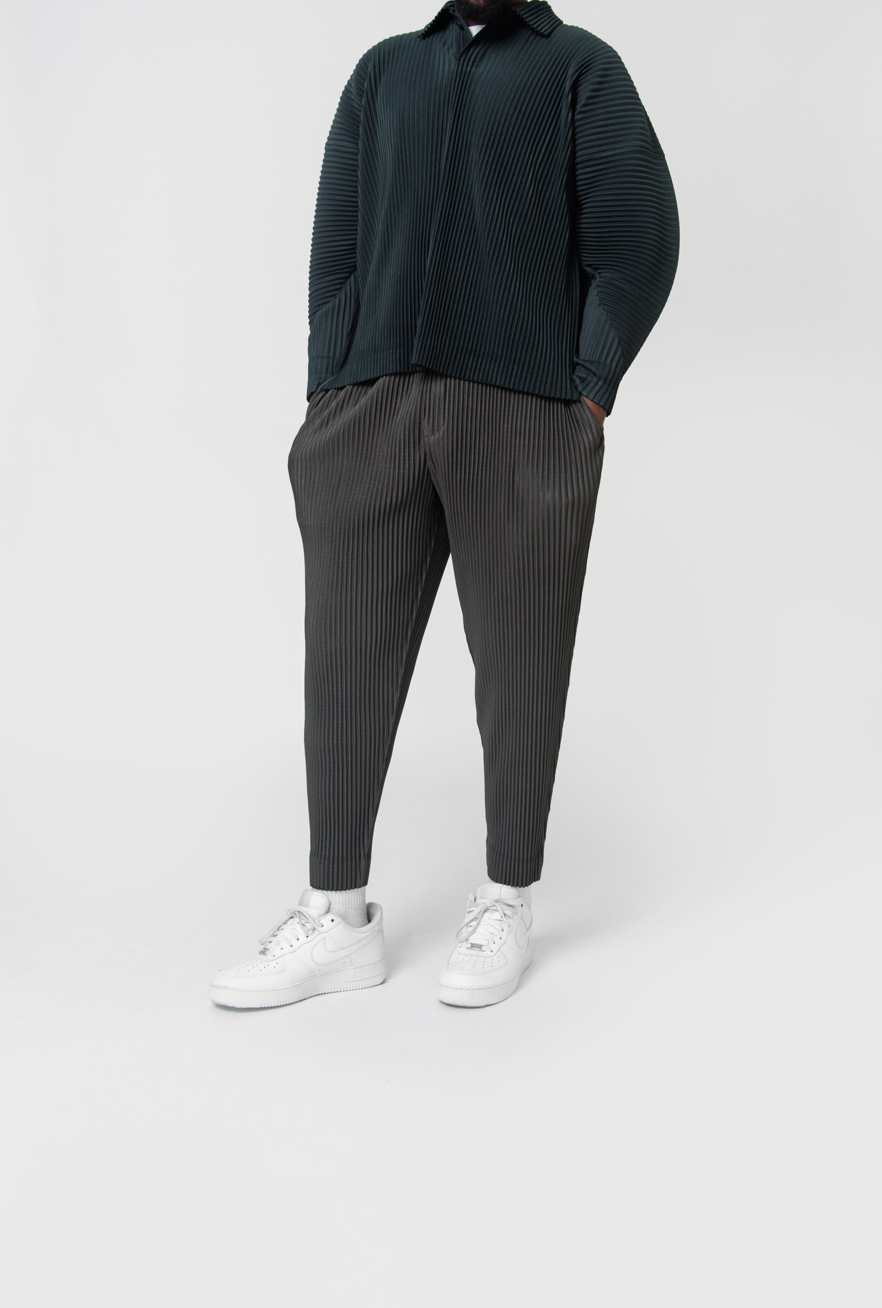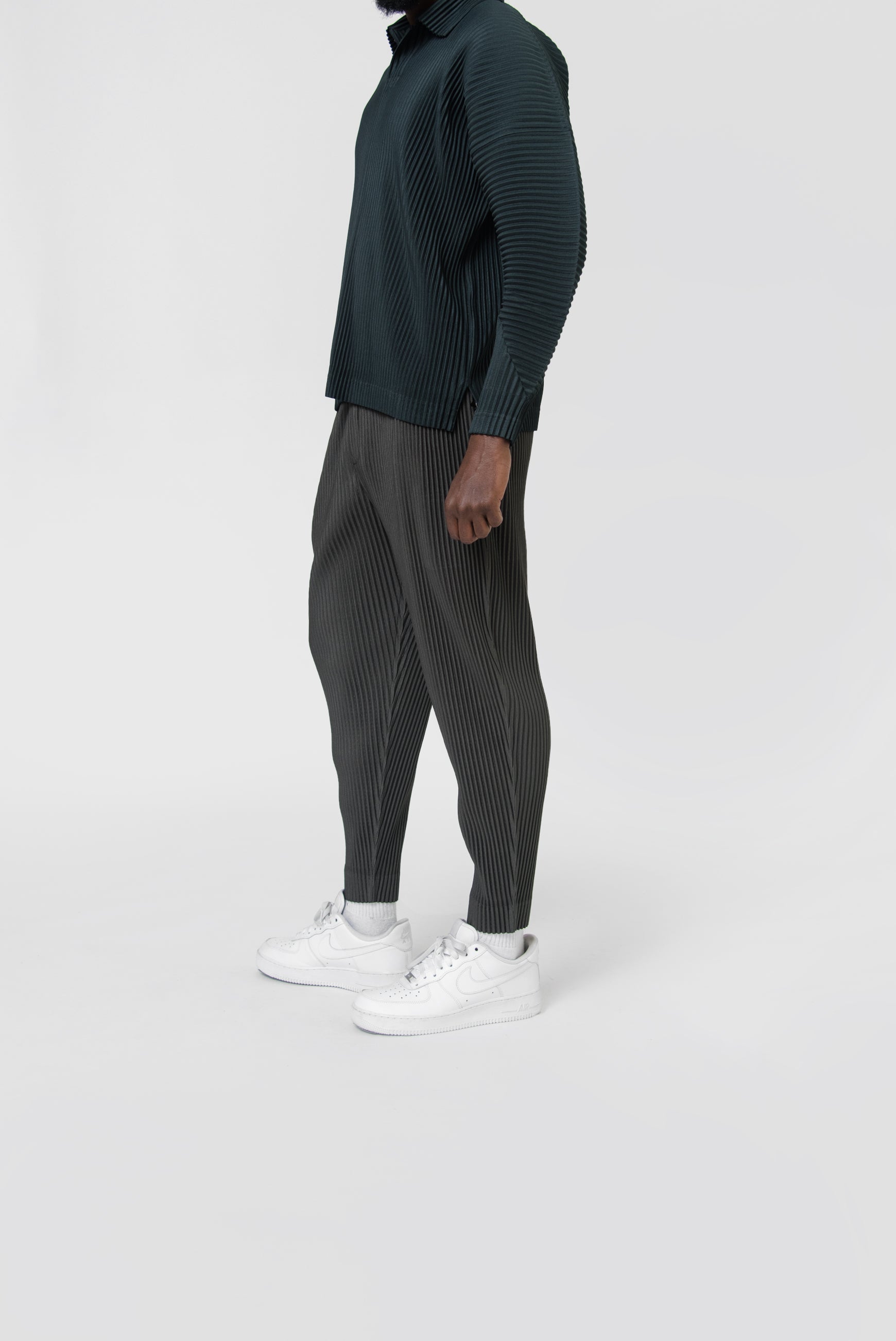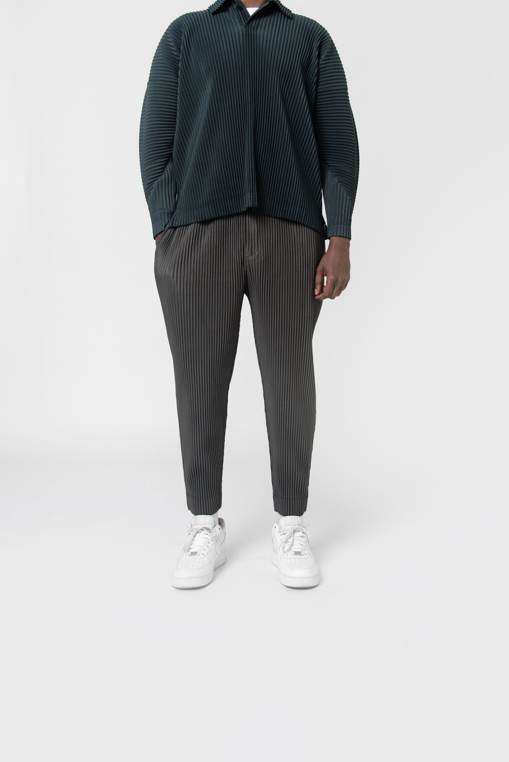 - Full-length pleated trousers in Ebony Khaki