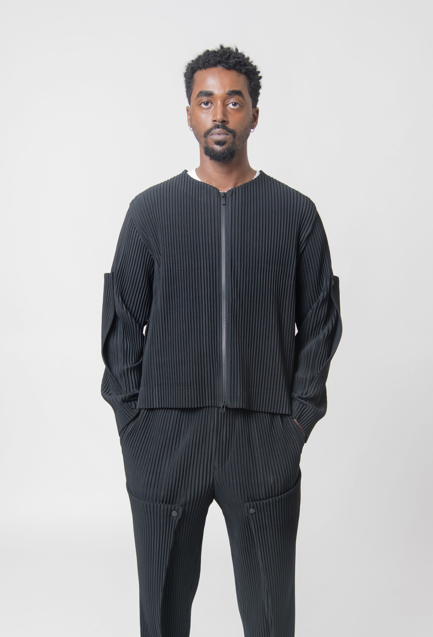 - Garment-pleated blouson in Black