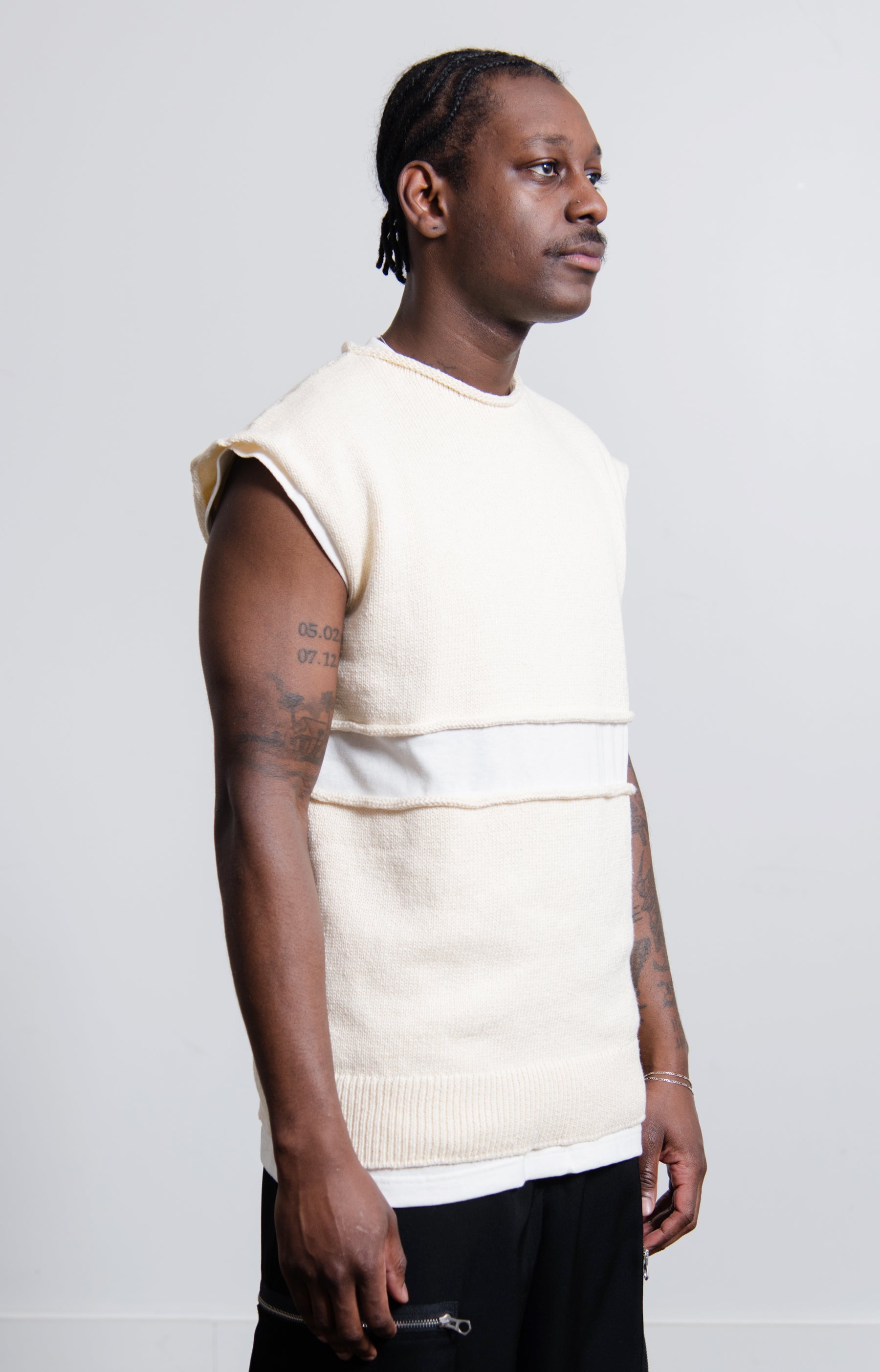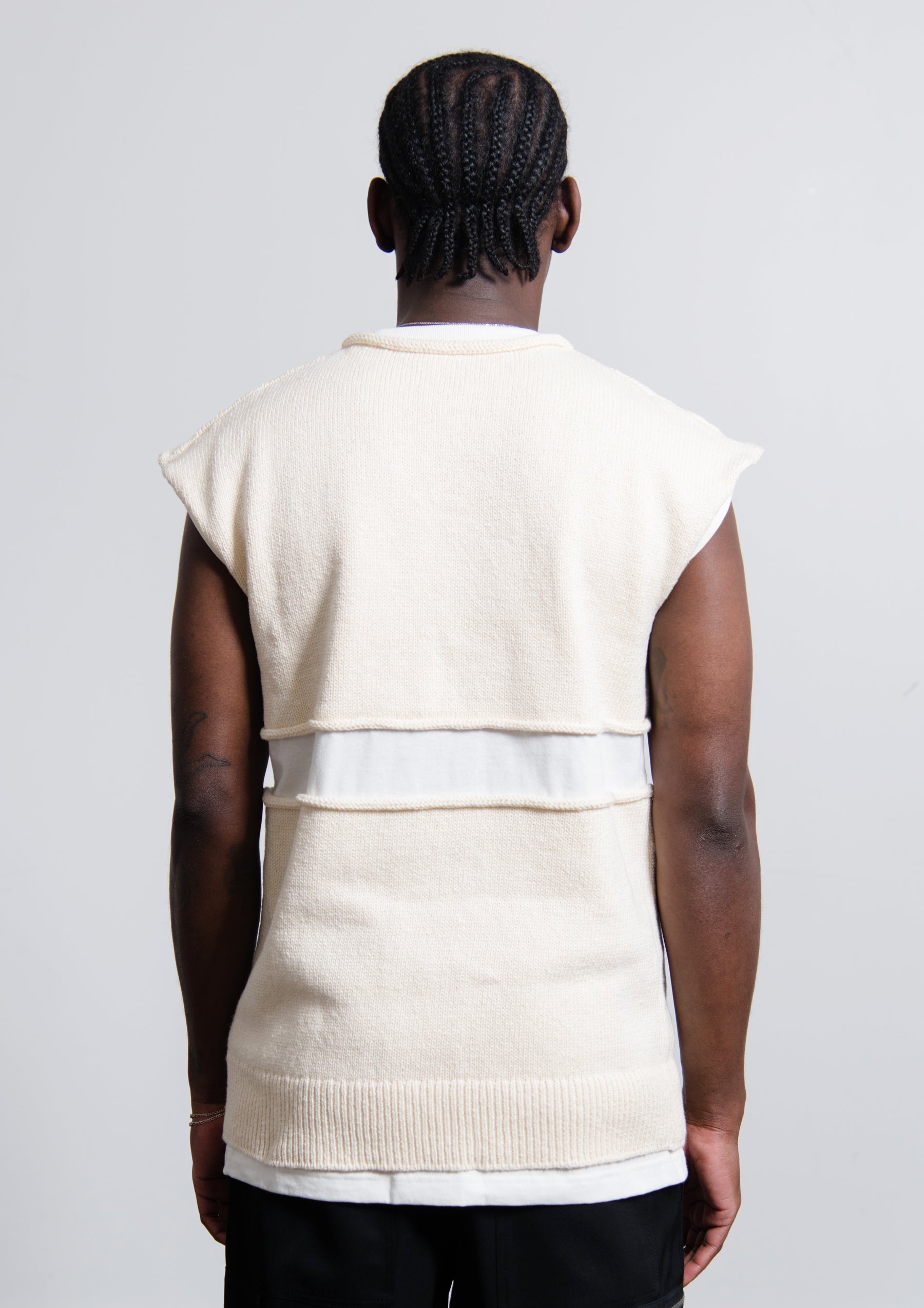 - Cotton layered knit vest in Natural