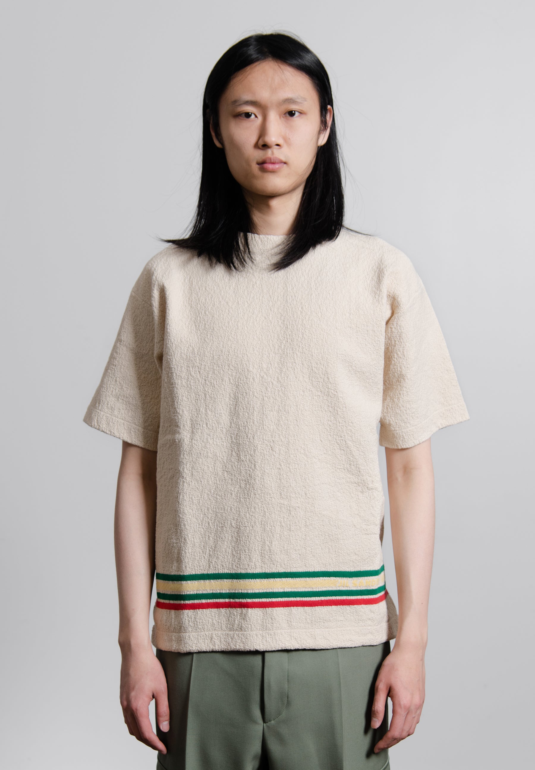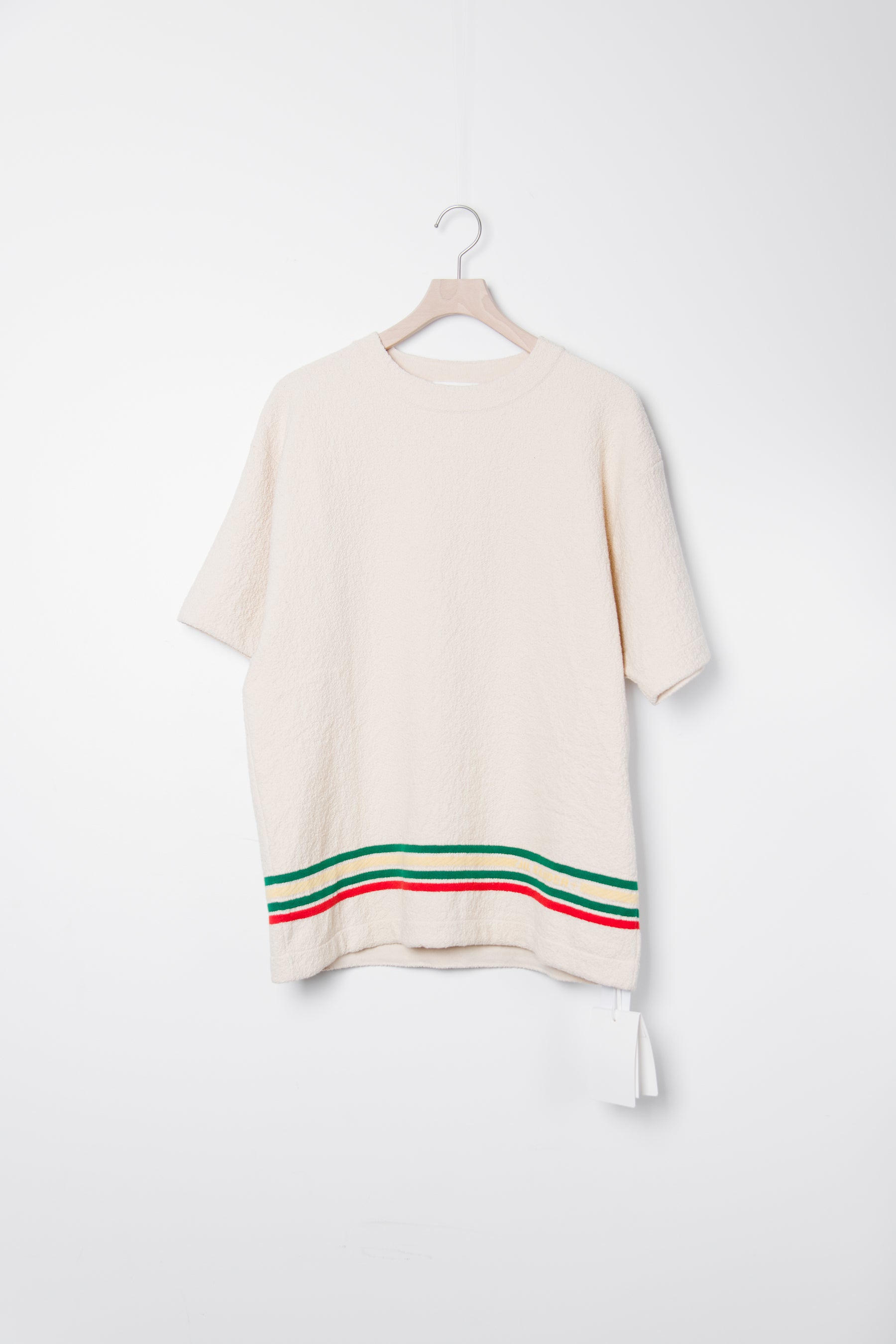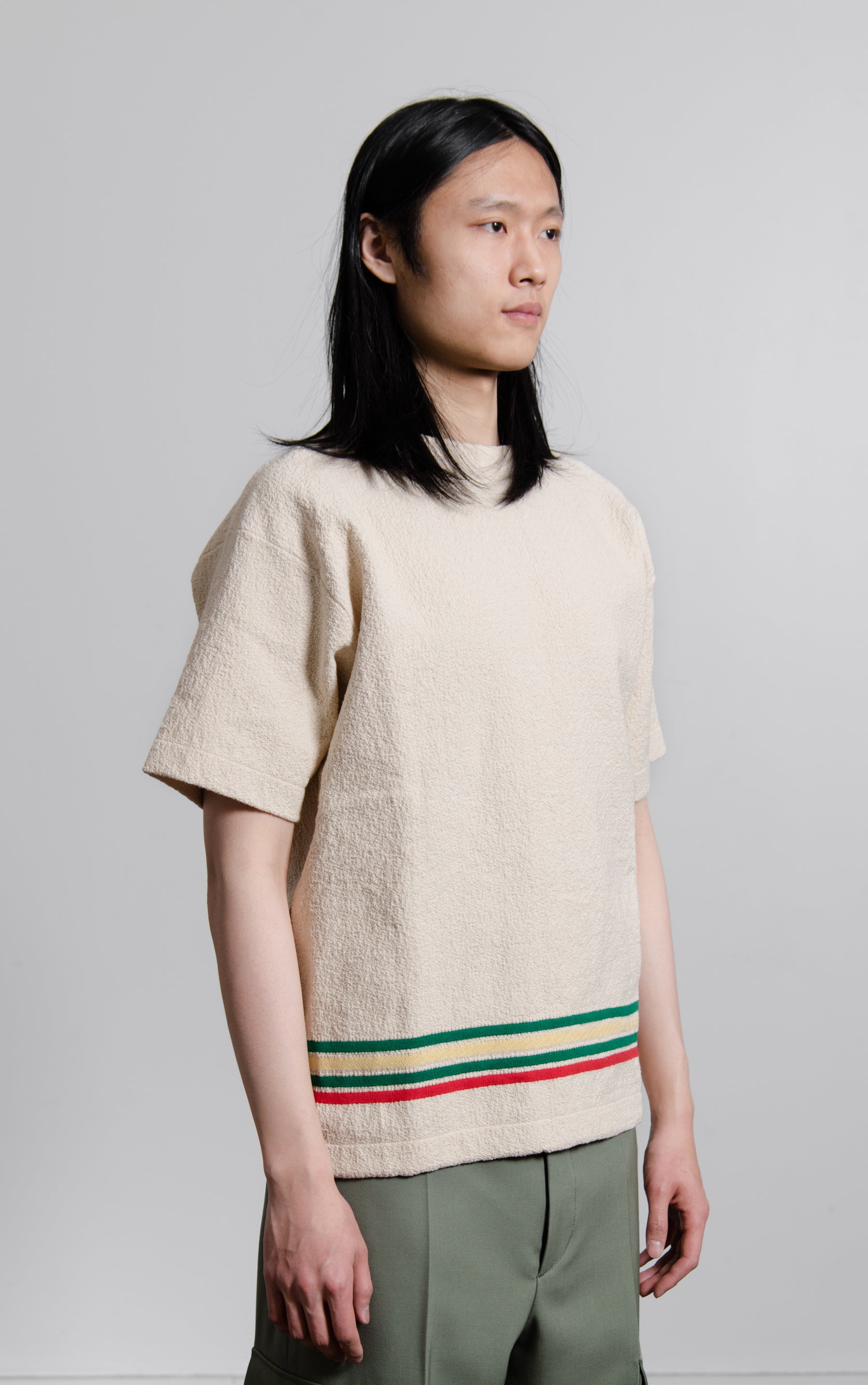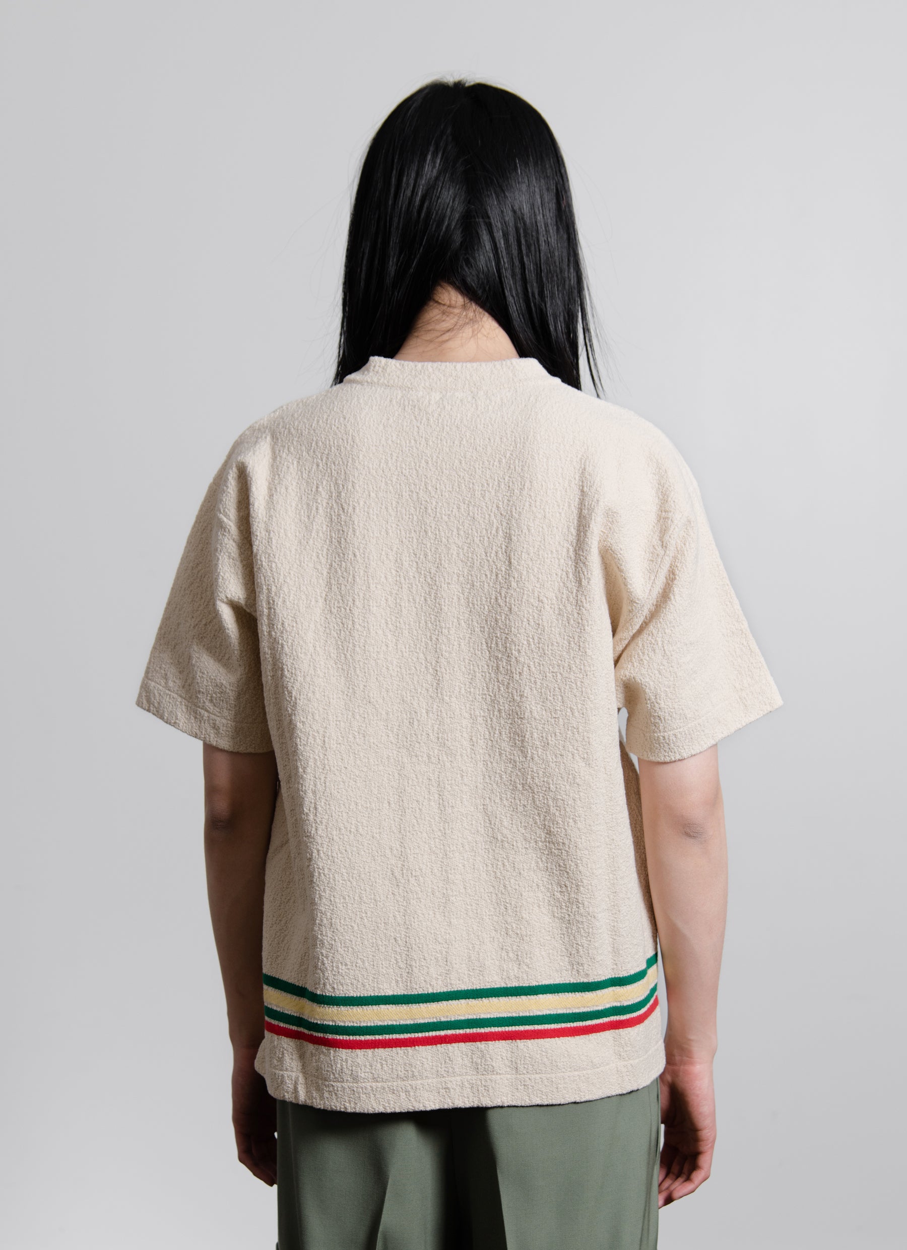 - Short sleeve stretch cotton-blend bouclé t-shirt in Natural