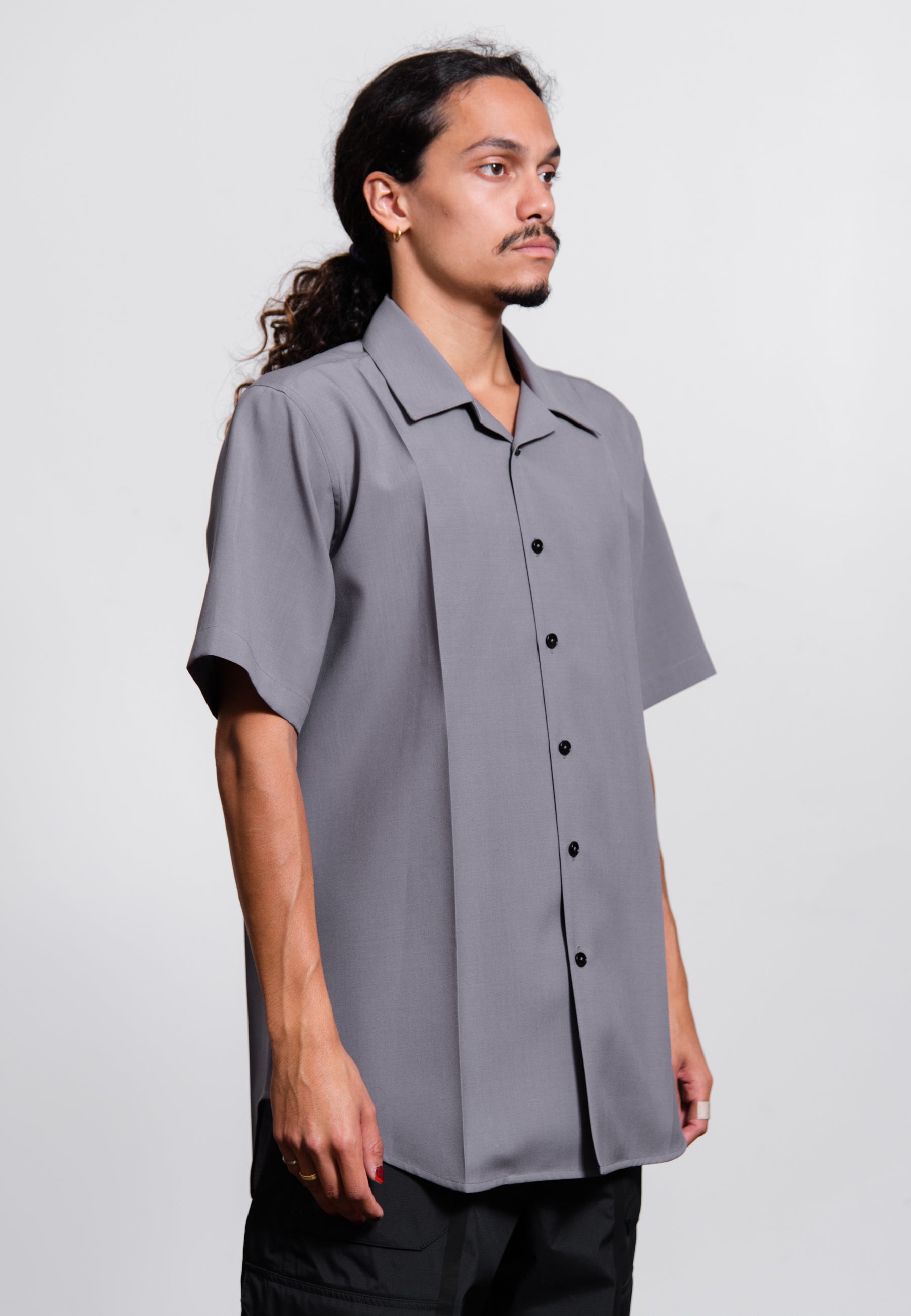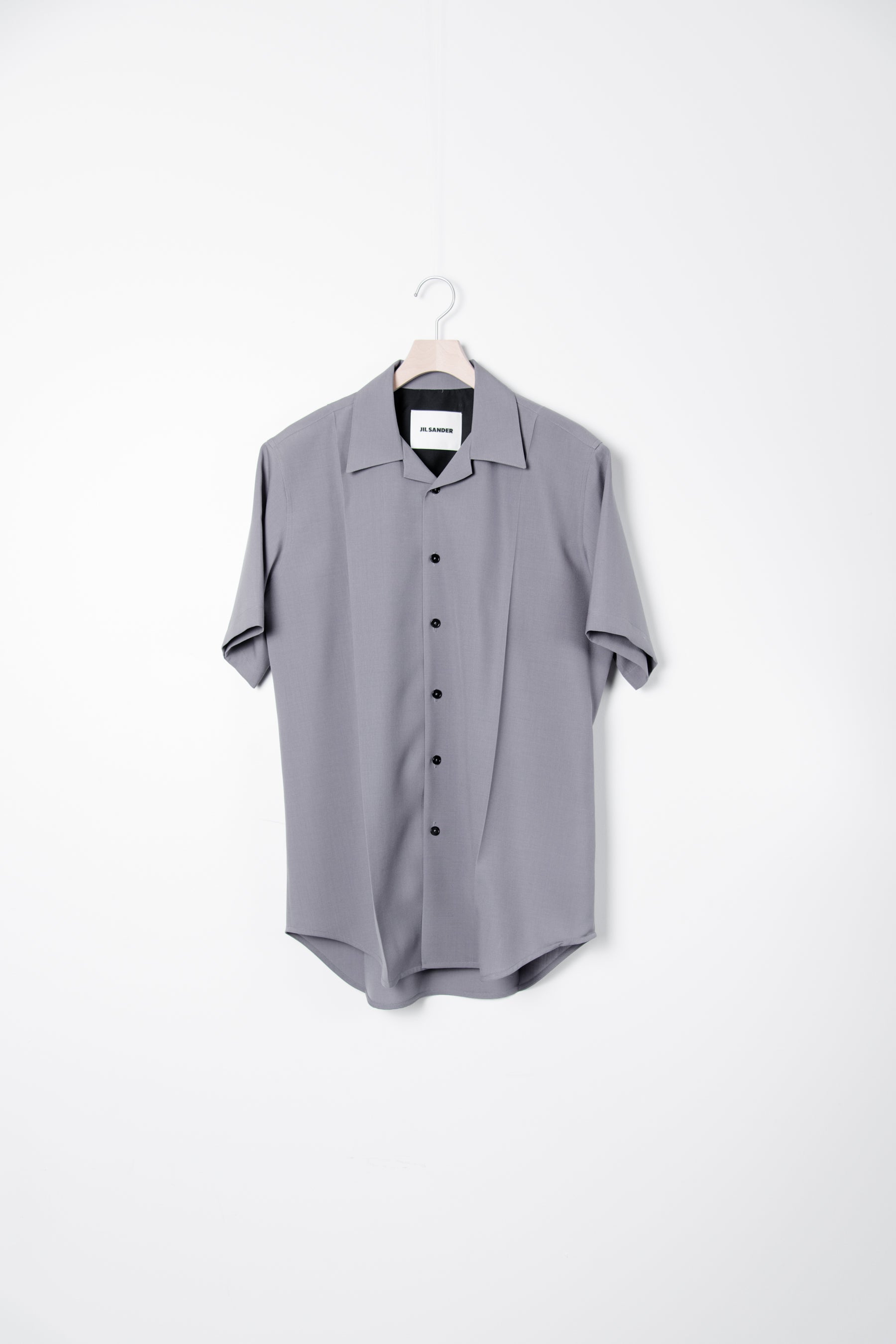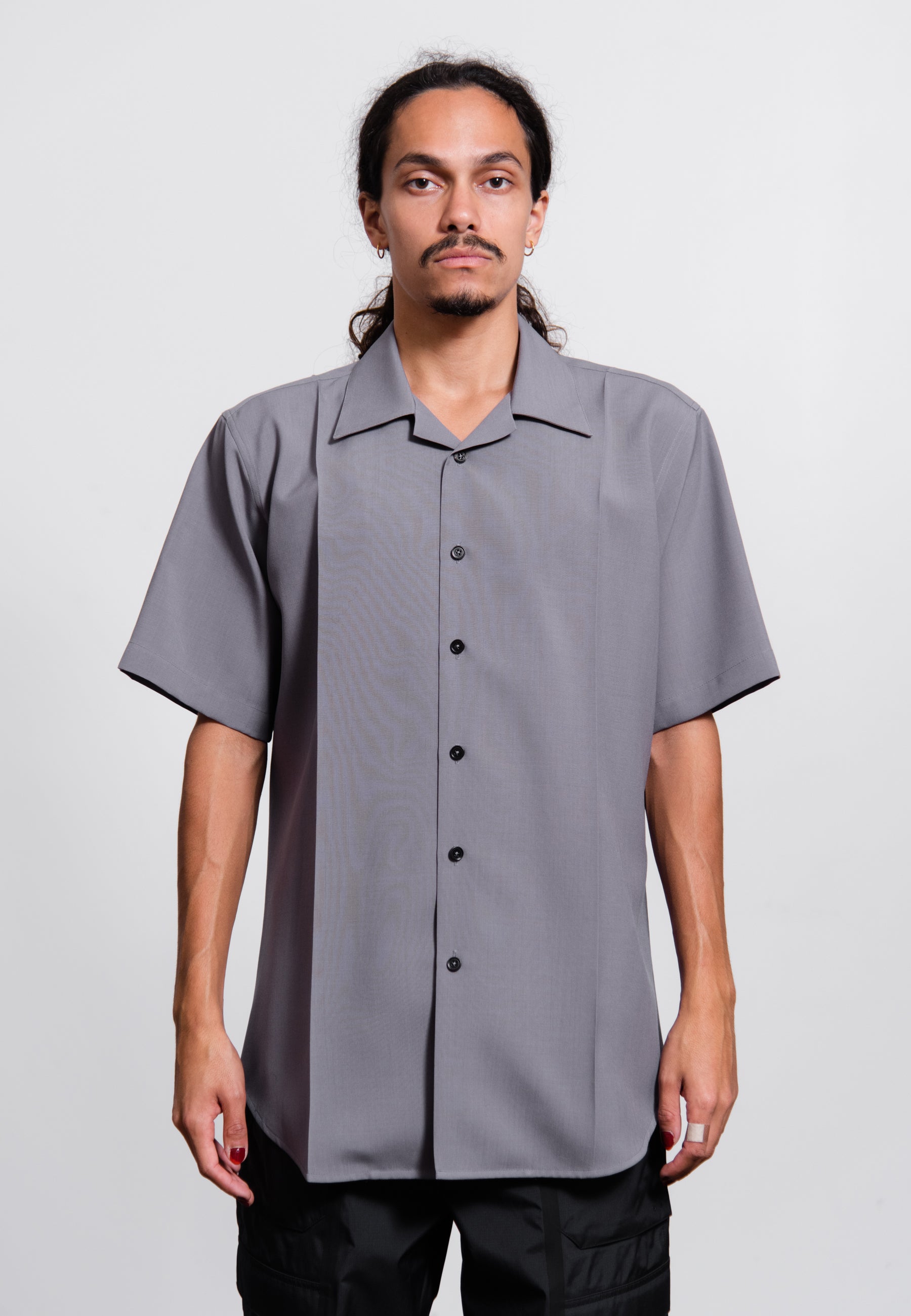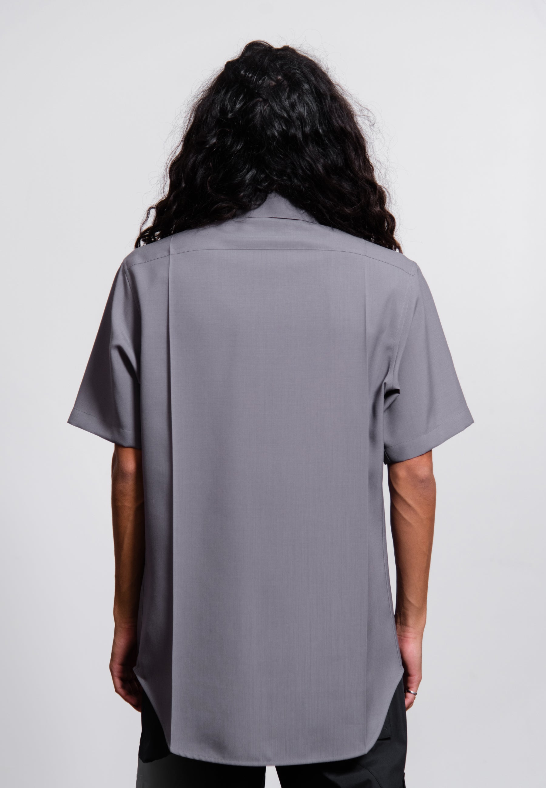 - Short sleeve fine wool canvas shirt in Lilac Grey